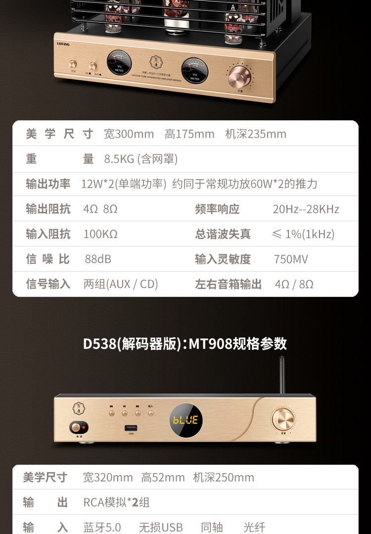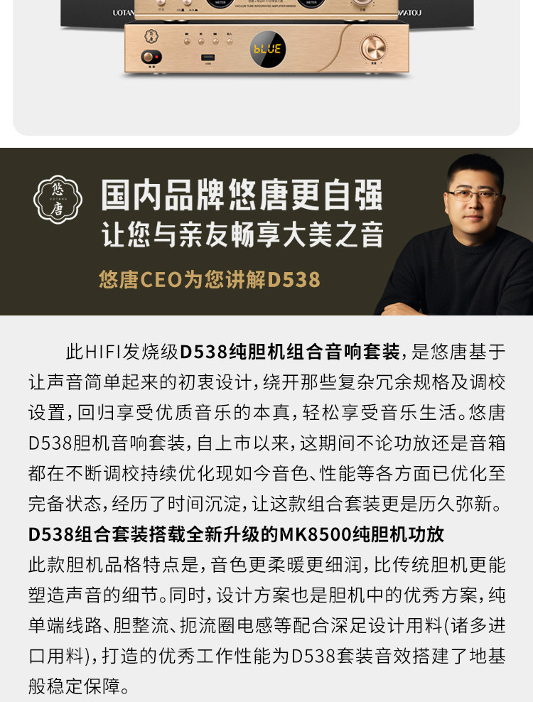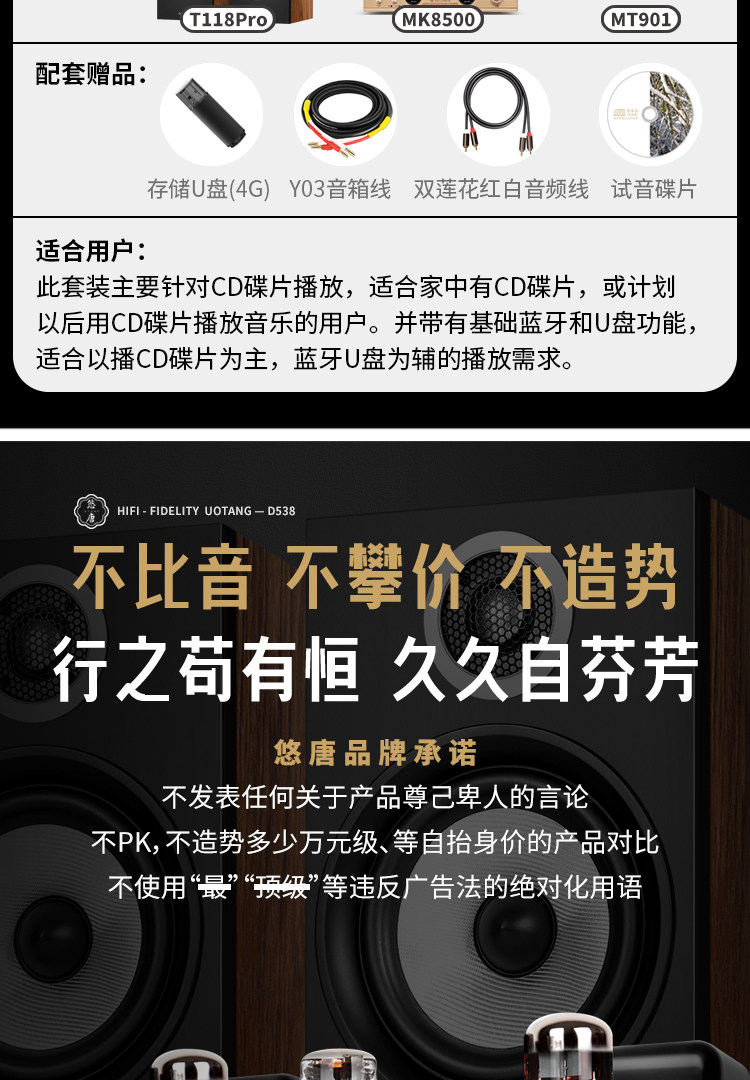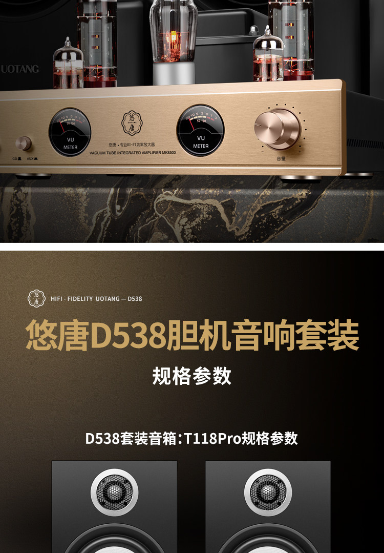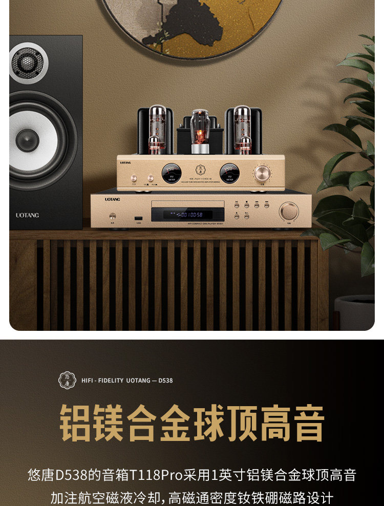 Youtang D538 Tube Amplifier Hifi Audiophile-Grade Cd Player Combination Audio Home Bluetooth Tube Speaker Set