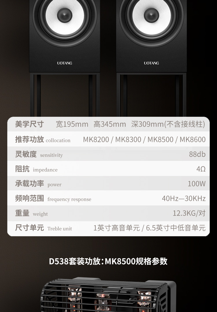 Overall Dimensions Power Amplifier 300*175*235mm, Speaker 195*345*309mm