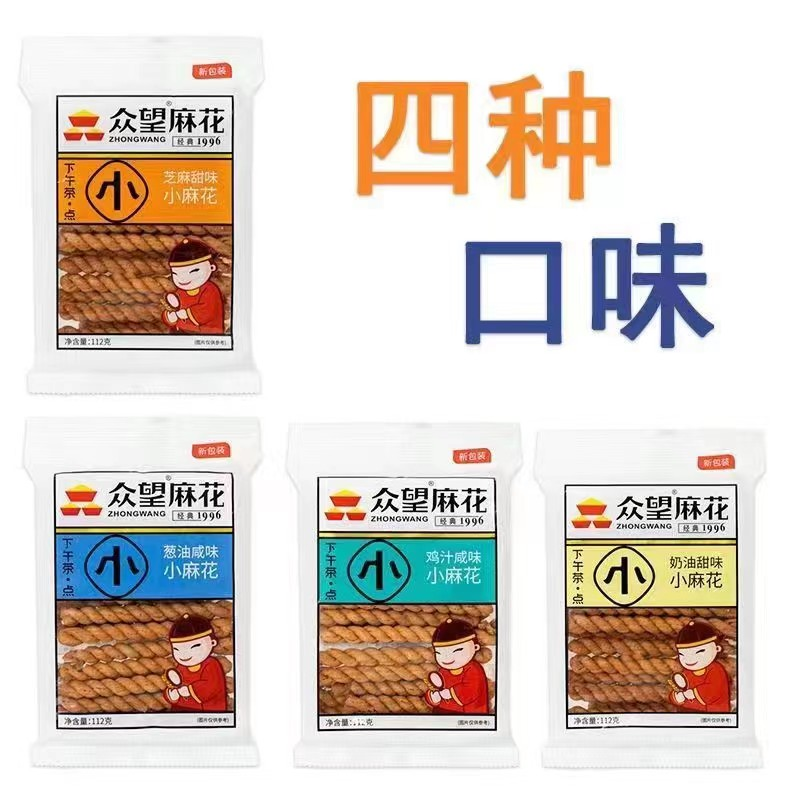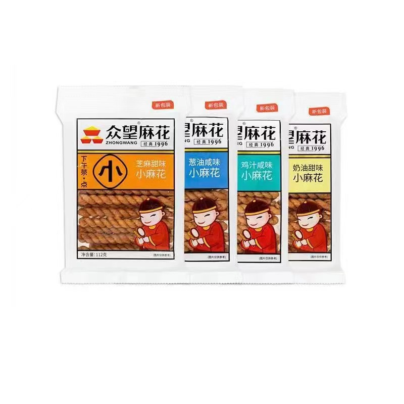 Full Box of 112g*30 Bags Hubei Zhongwang Small Long Twist Sesame Cream Sweet Scallion Oil Seaweed Salty Bag