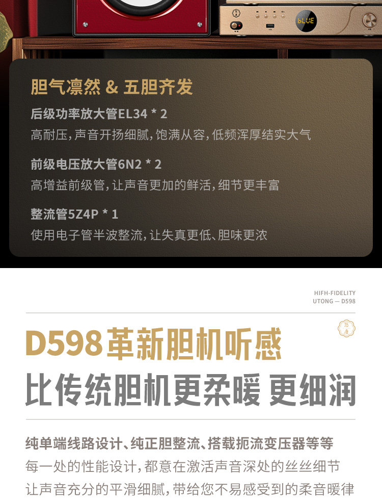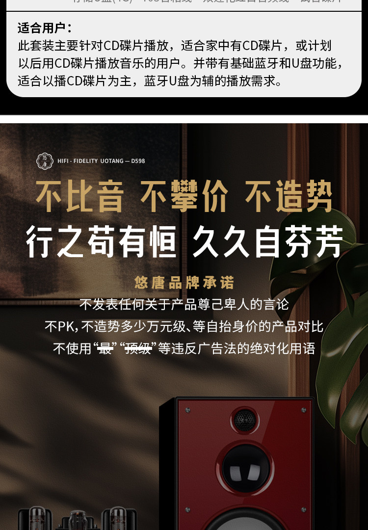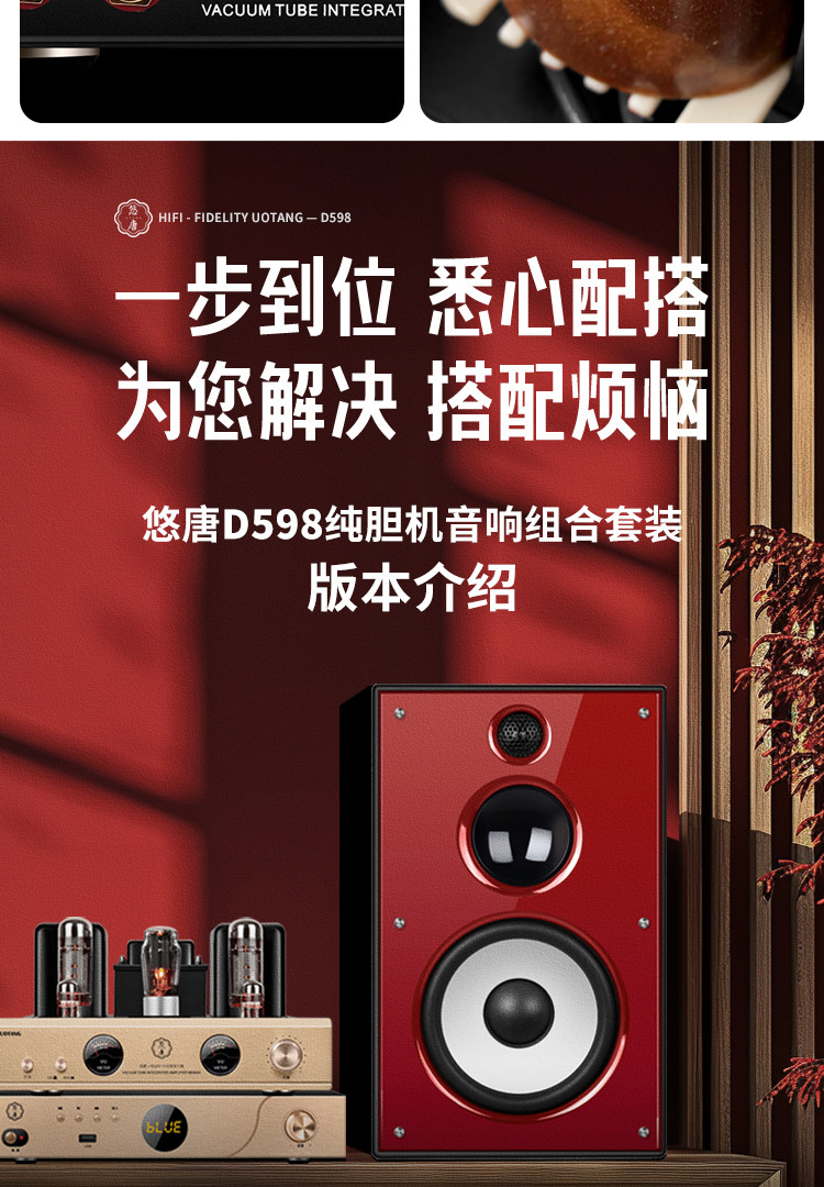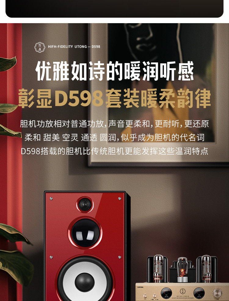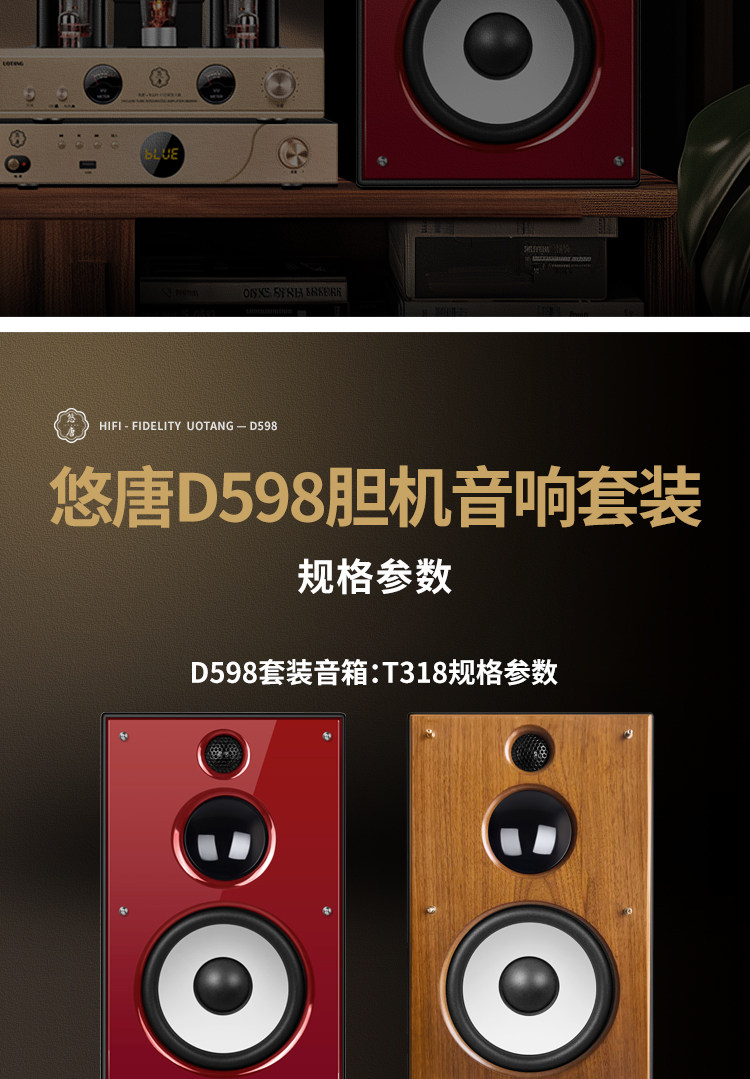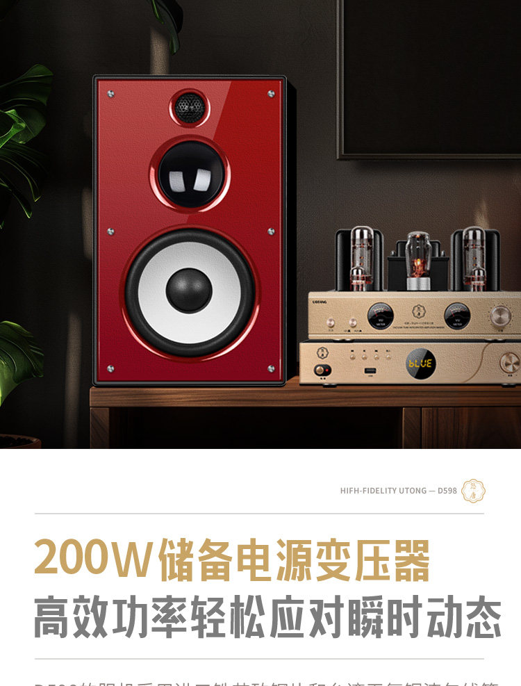 U-Tang D598 Verstärker-Kombination, Audio-HiFi-Audiophile-Heim-Bluetooth-CD-Player, Röhrenverstärker-Lautsprecherset