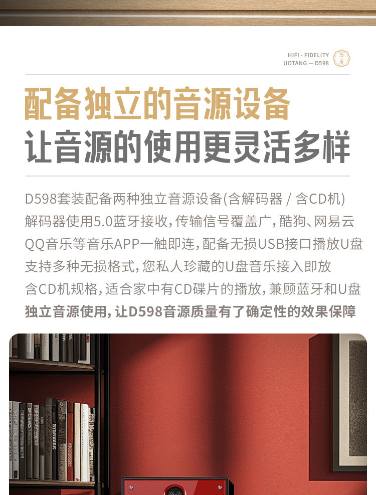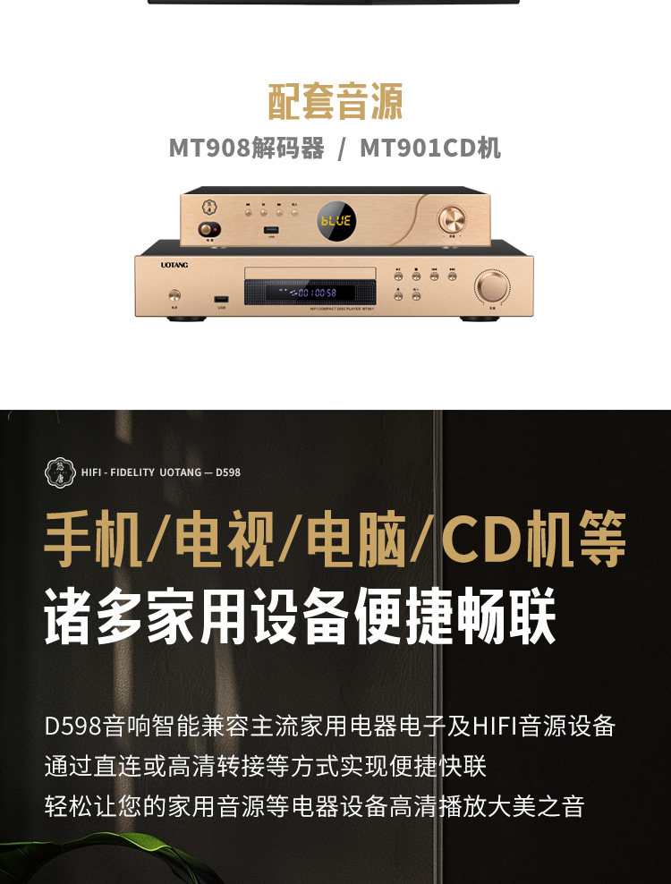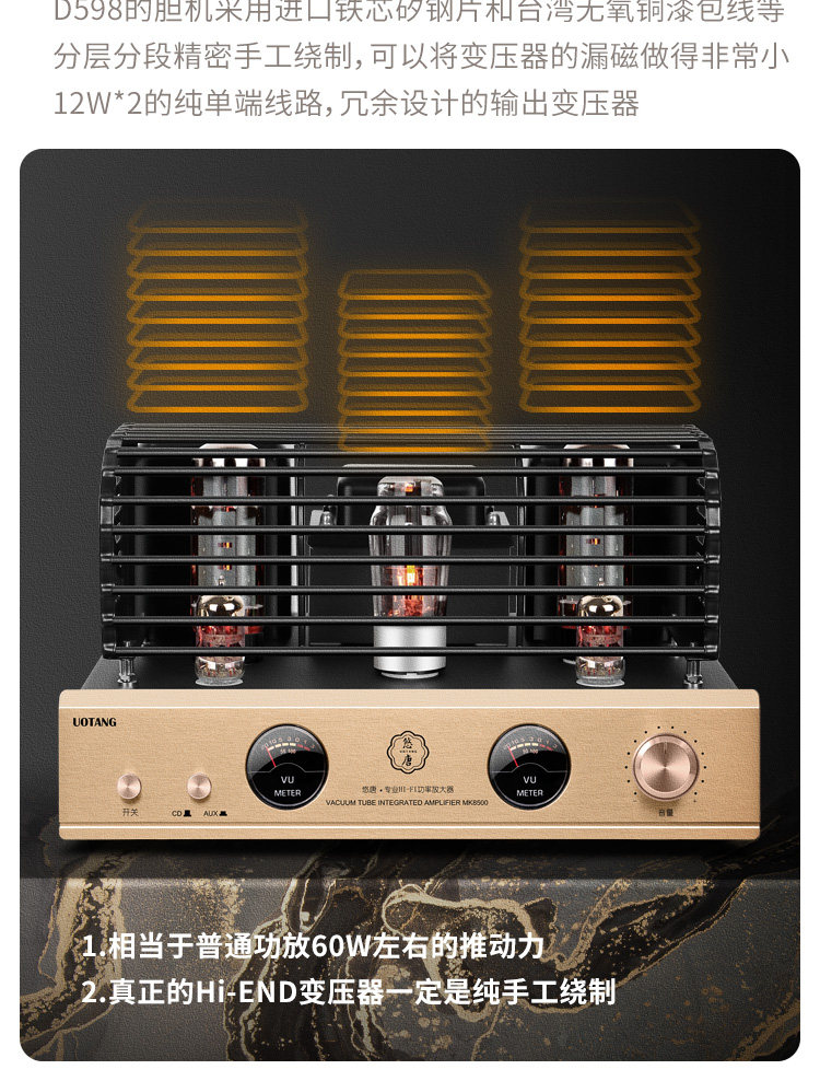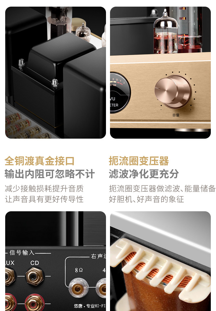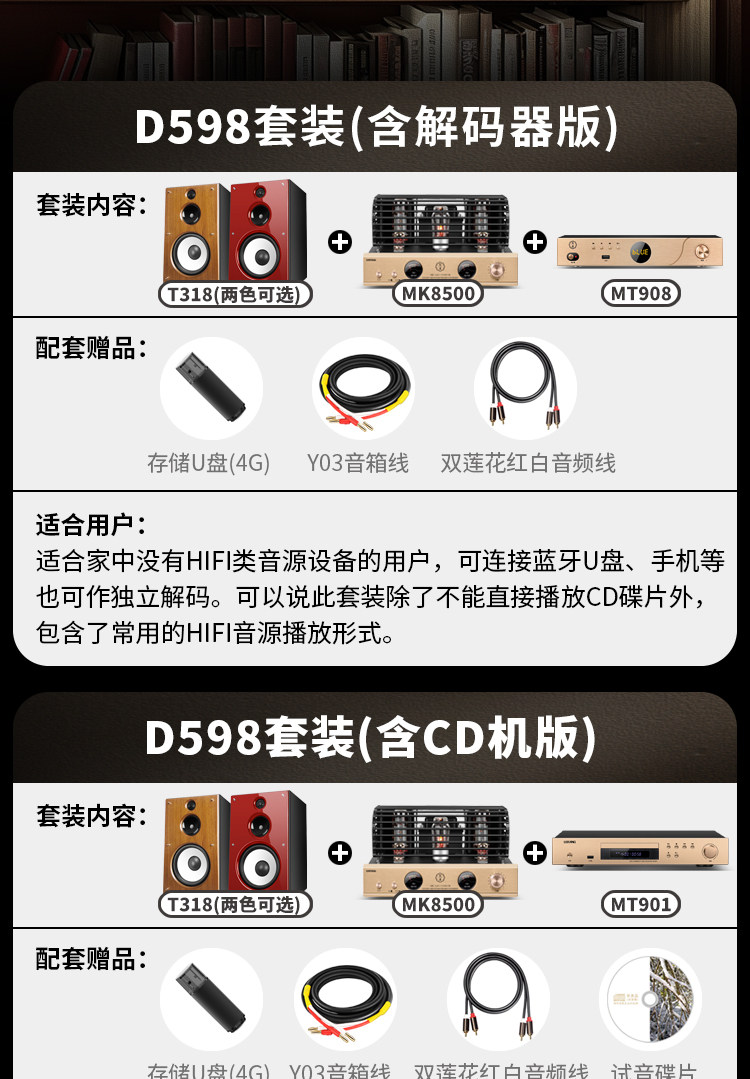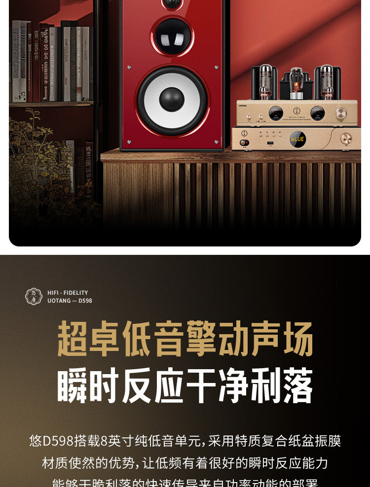U-Tang D598 Verstärker-Kombination, Audio-HiFi-Audiophile-Heim-Bluetooth-CD-Player, Röhrenverstärker-Lautsprecherset