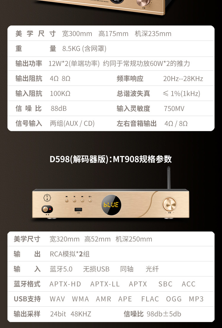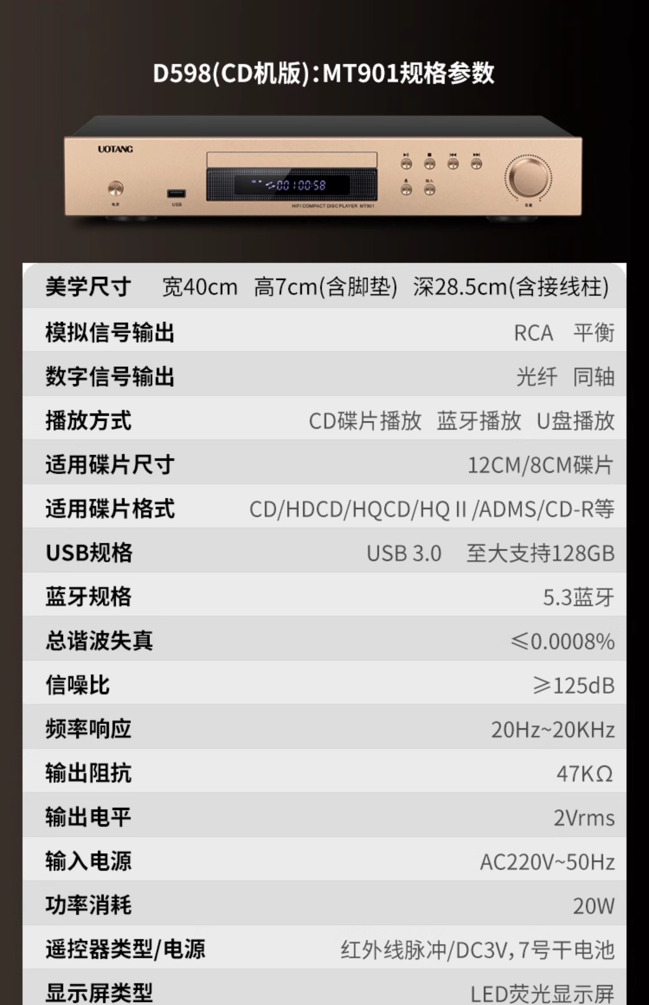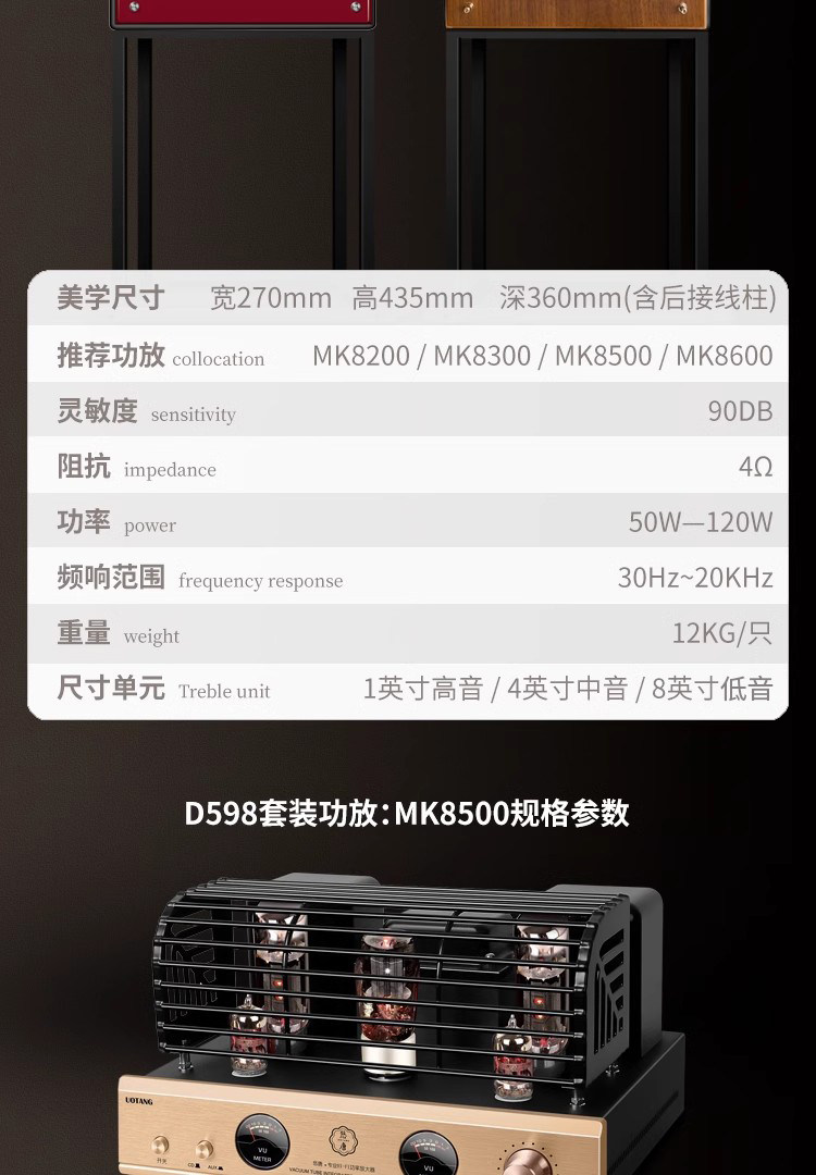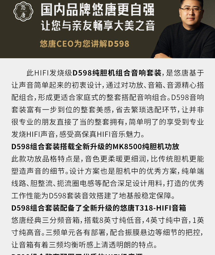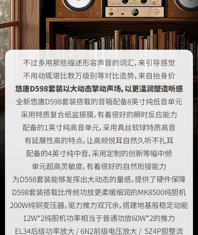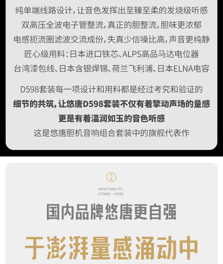 U-Tang D598 Verstärker-Kombination, Audio-HiFi-Audiophile-Heim-Bluetooth-CD-Player, Röhrenverstärker-Lautsprecherset
