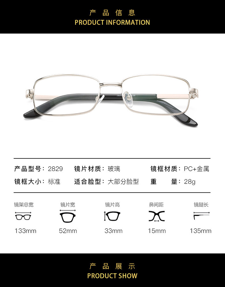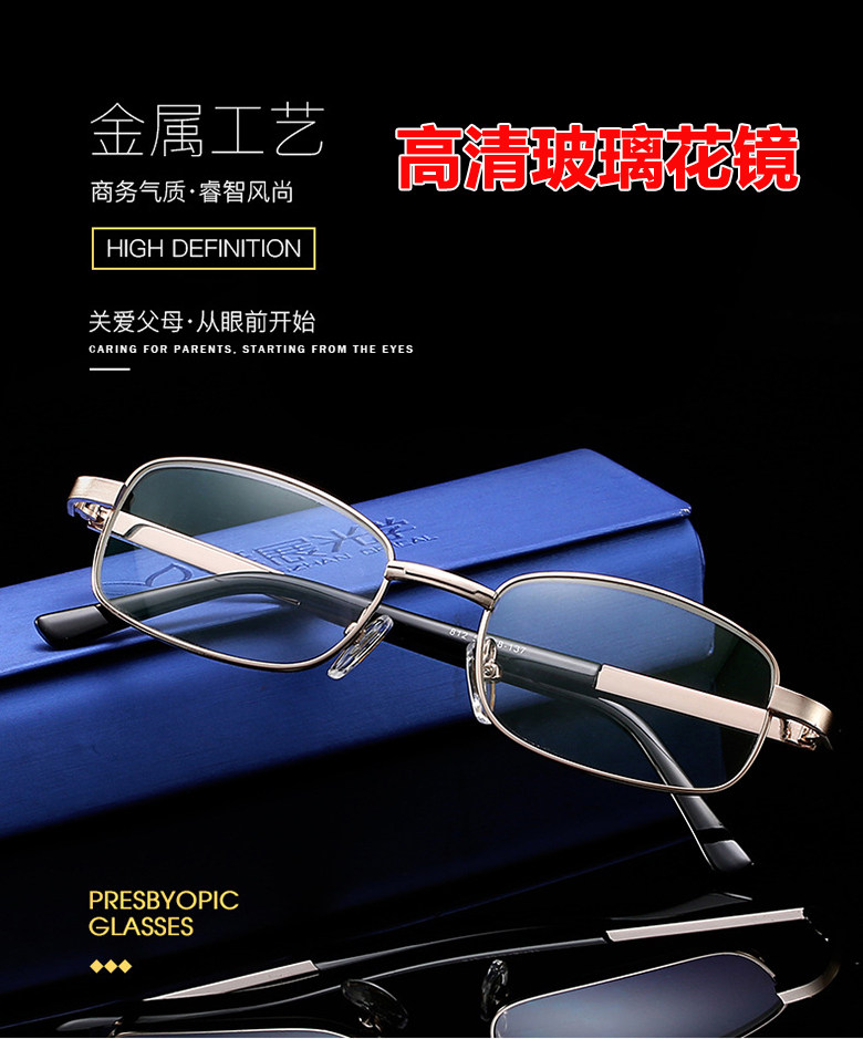 Hongfu Old Man 2829 Gafas de Lectura de Vidrio Gafas de Lectura con Marco de Metal de Alta definición Gafas de presbicia Ultrafinas, Ultraclaras y Resistentes al Desgaste