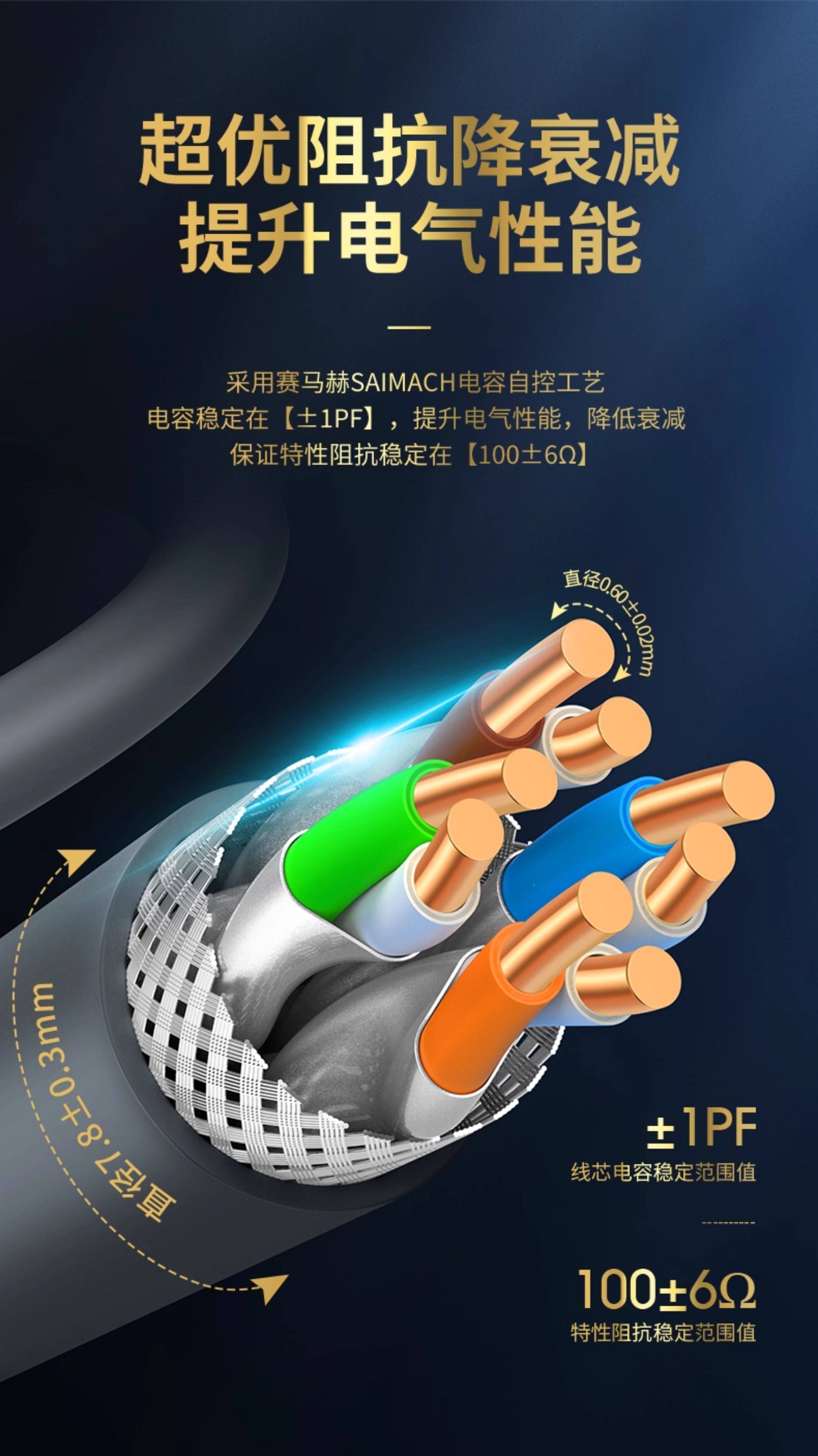 Farbklassifizierung Hochleistungsfähiger 0,58-mm-Kupferkern nach nationalem Standard, sauerstofffrei, 23 AWG, Saimahe, 1. Generation, Kategorie 7, doppelte Abschirmung, PVC, grau,Hochleistungsfähiger 0,58-mm-Kupferkern nach nationalem Standard, sauerstofffrei, 23 AWG, Saimahe 2. Generation, Kategorie 7, doppelte Abschirmung, raucharm, halogenfrei, LSZH-Grün,Hochleistungsfähiger 0,62-mm-Kupferkern nach nationalem Standard, sauerstofffrei, 23 AWG, Saimahe, 1. Generation, Kategorie 7e, doppelte Abschirmung, PVC, gelb,Hochleistungsfähiger 0,62-mm-Kupferkern nach nationalem Standard, sauerstofffrei, 23 AWG, Saimahe 2. Generation, Kategorie 7e, doppelte Abschirmung, raucharm, halogenfrei, LSZH-Grün