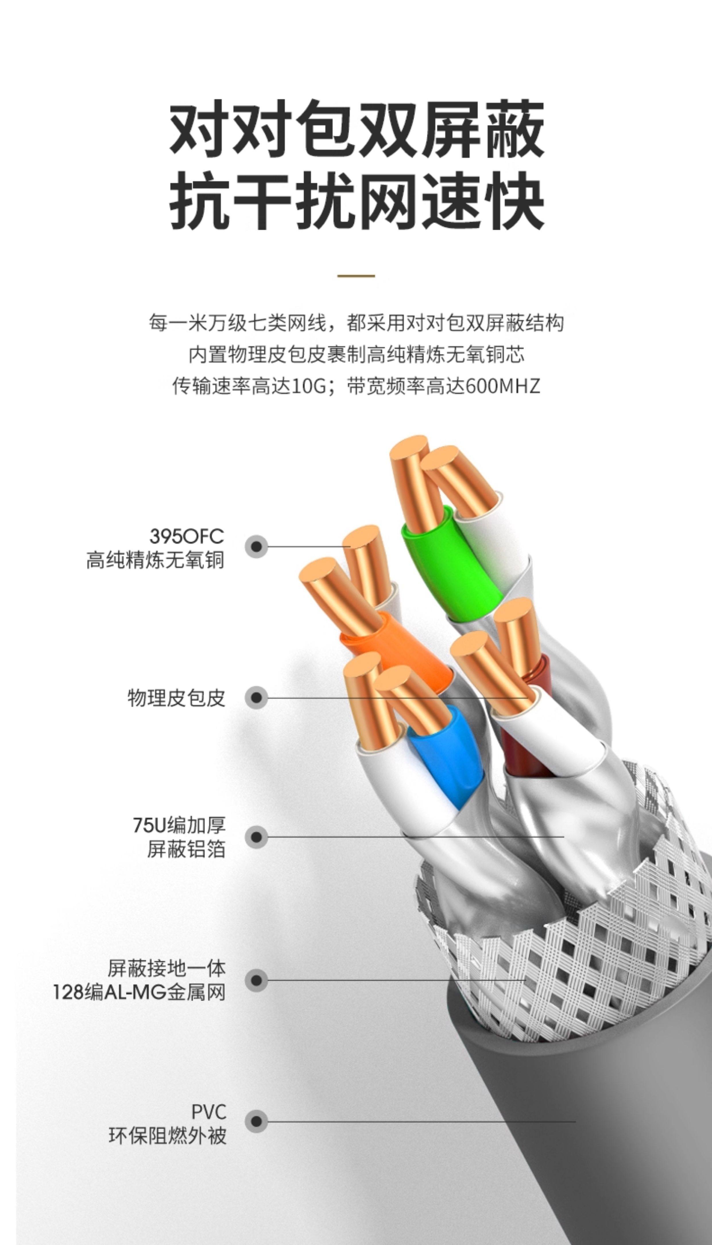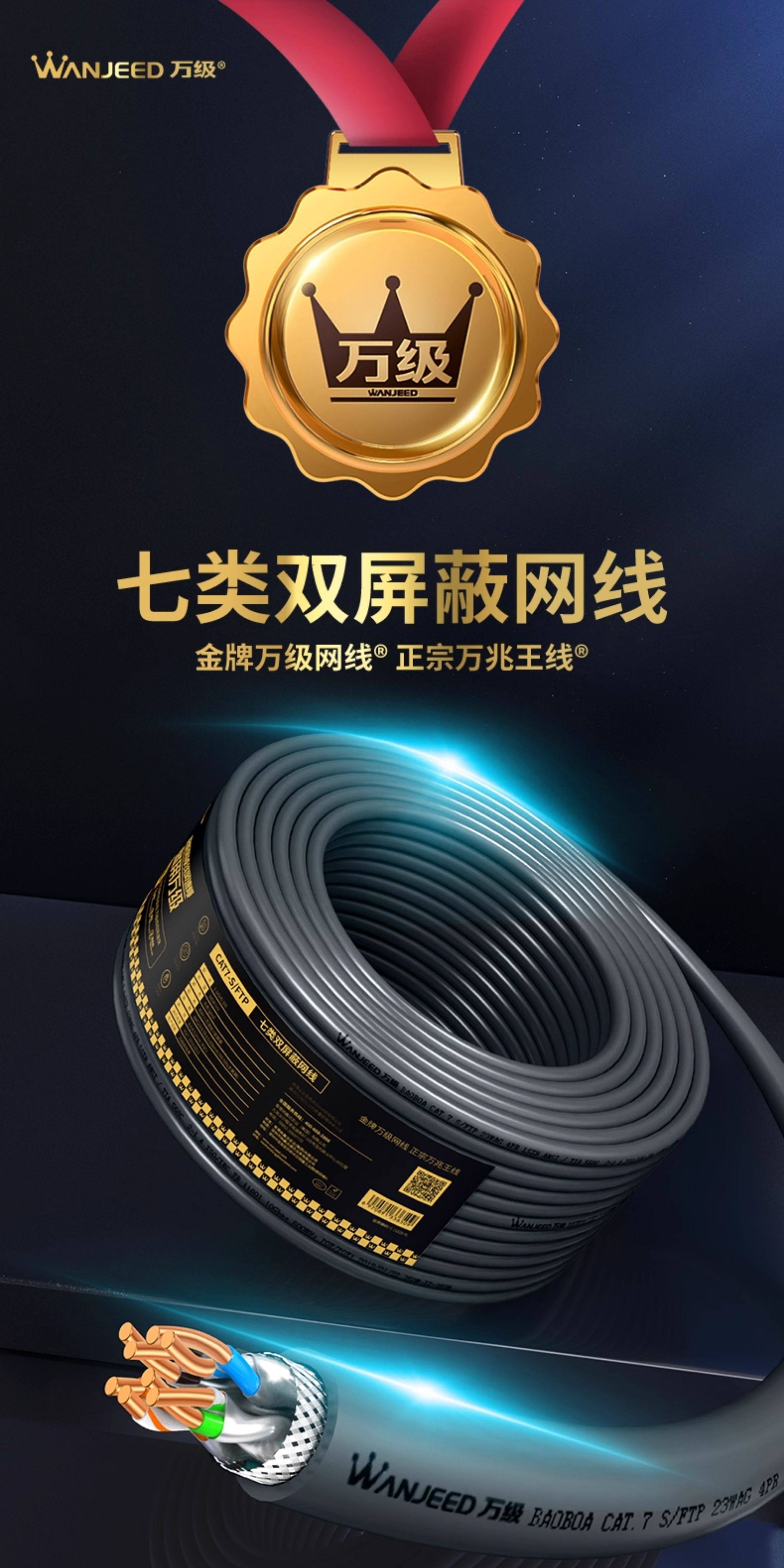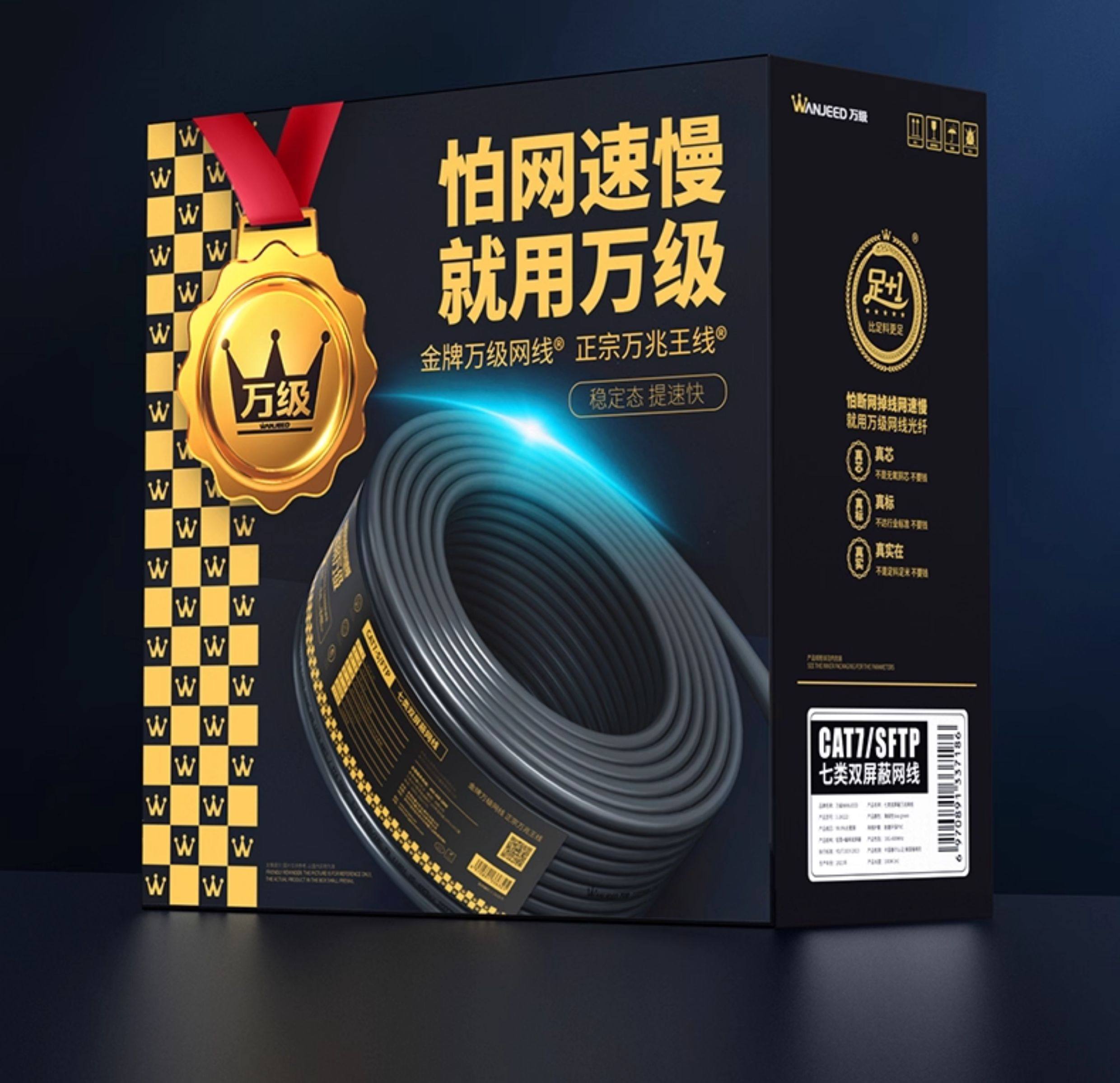 Klasse 10.000, nationaler Standard, Kategorie 7, 10.000 Gigabit-Netzwerkkabel, 23 AWG Haushaltstechnik, Cat7, sauerstofffreies Kupfer, abgeschirmtes Netzwerkkabel, ganze Box