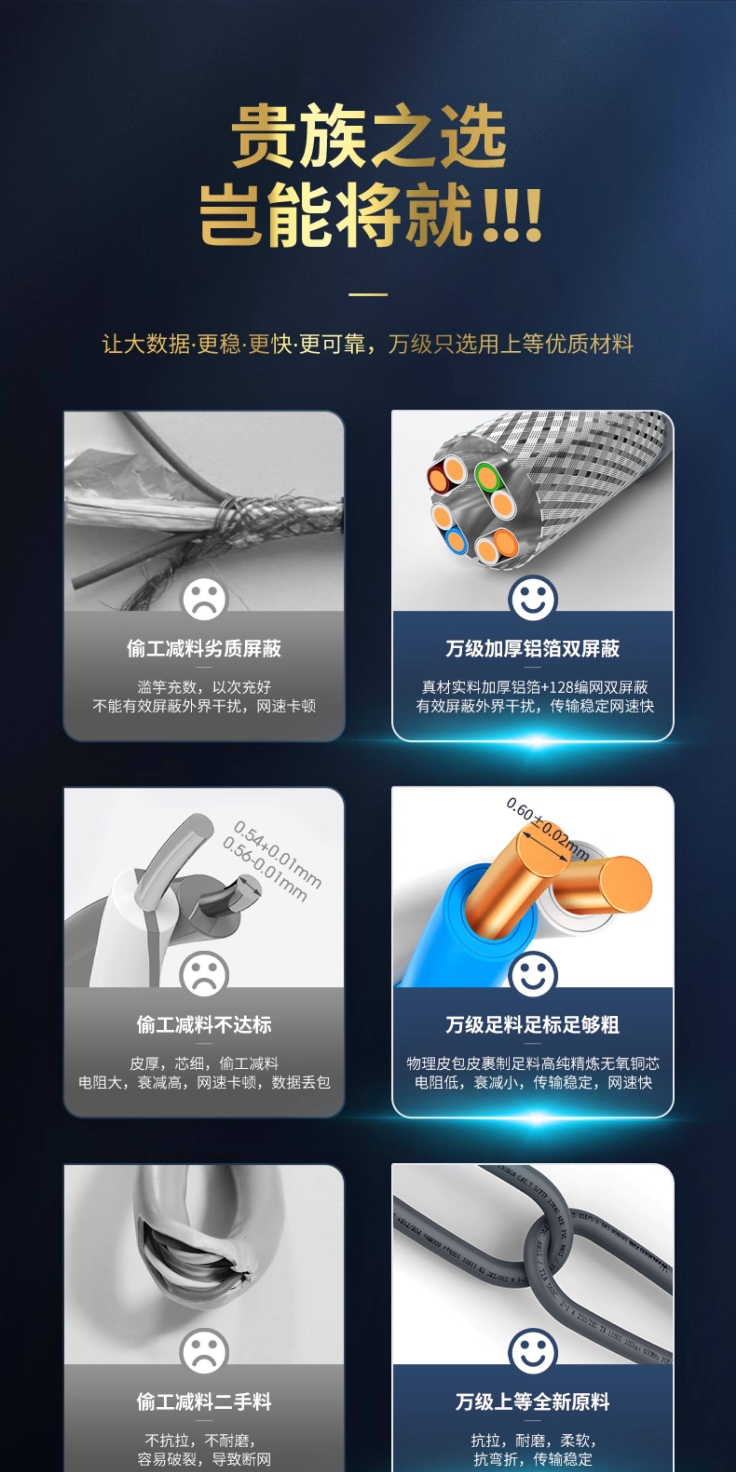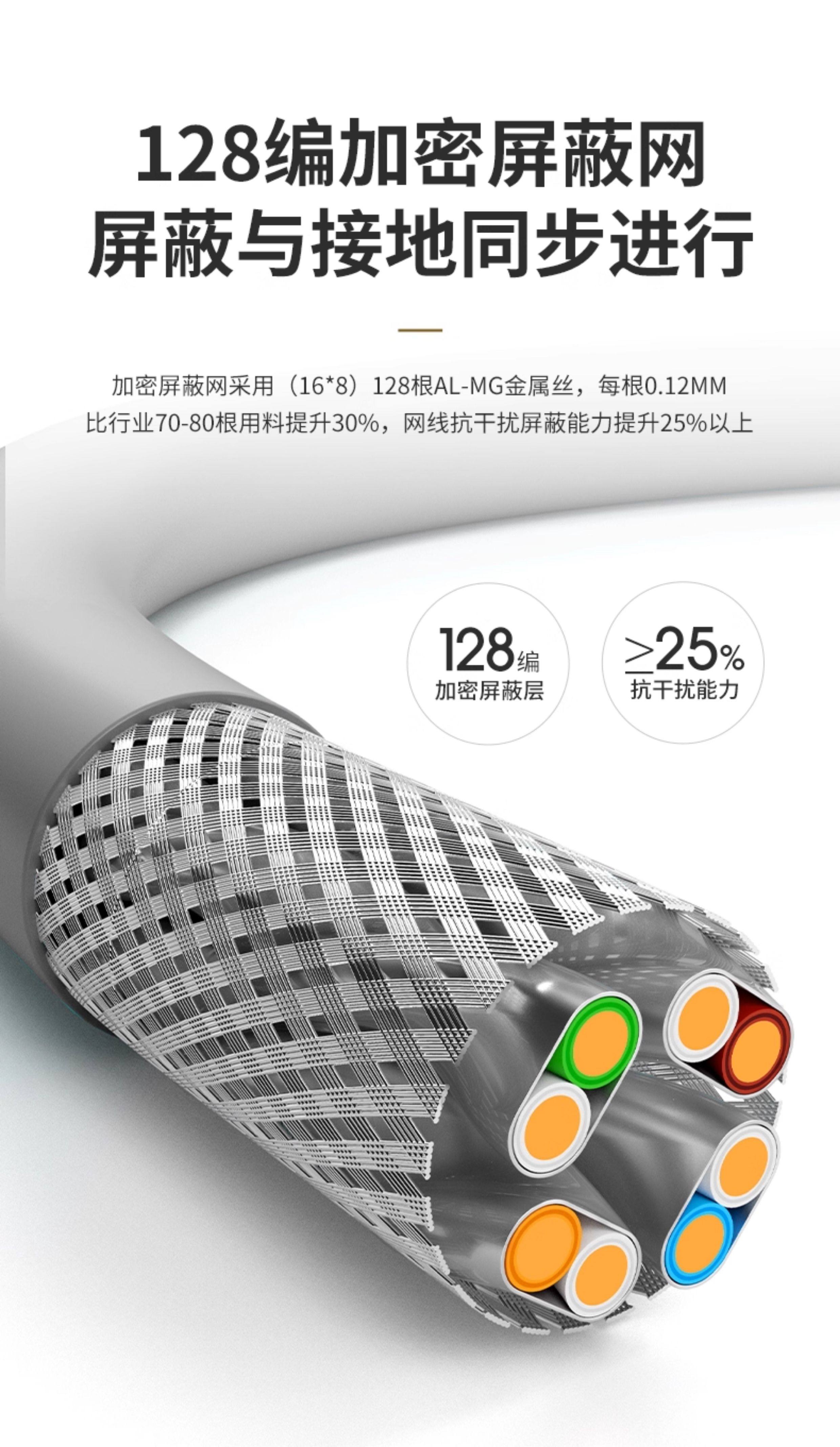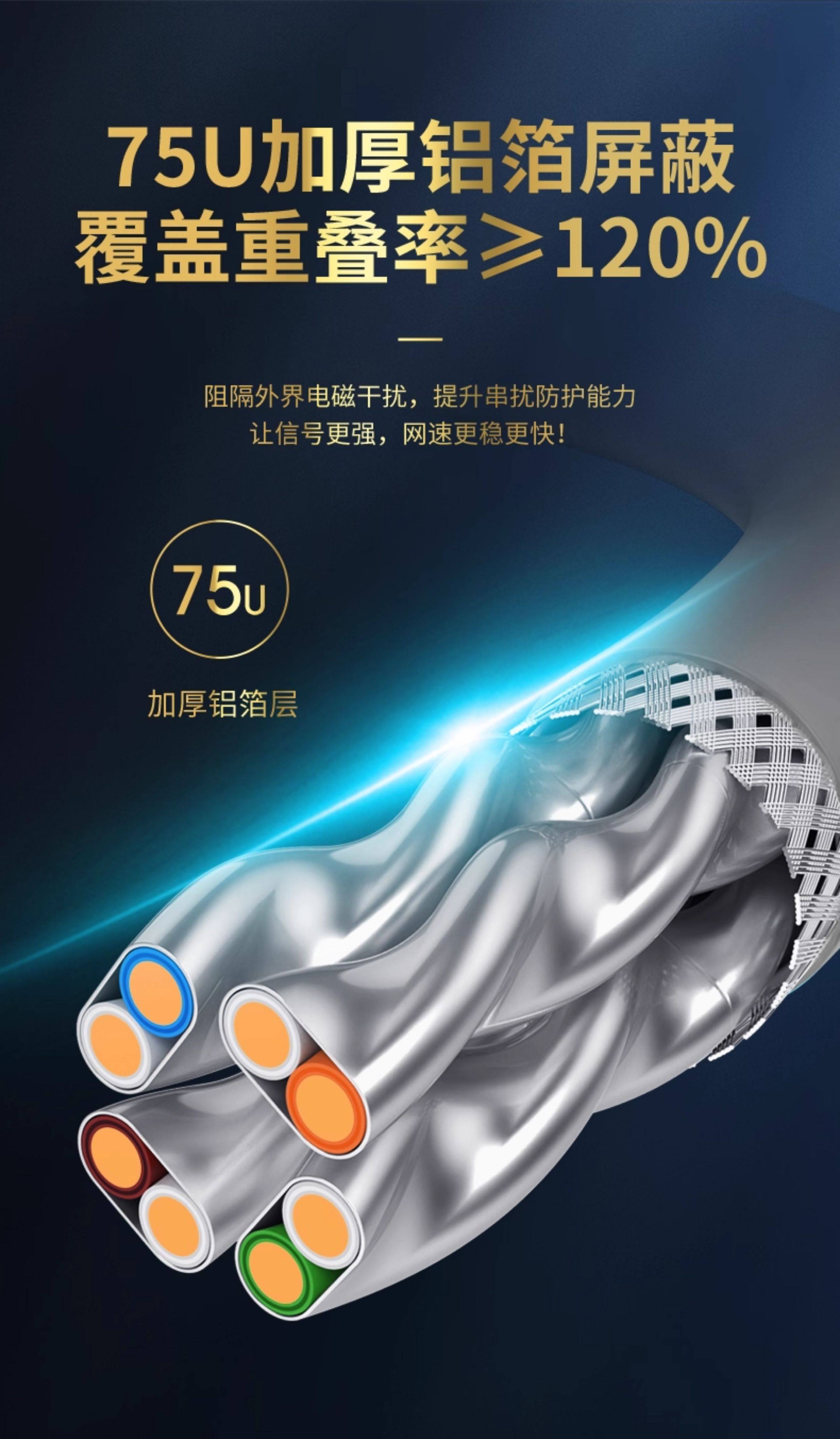 Klasse 10.000, nationaler Standard, Kategorie 7, 10.000 Gigabit-Netzwerkkabel, 23 AWG Haushaltstechnik, Cat7, sauerstofffreies Kupfer, abgeschirmtes Netzwerkkabel, ganze Box
