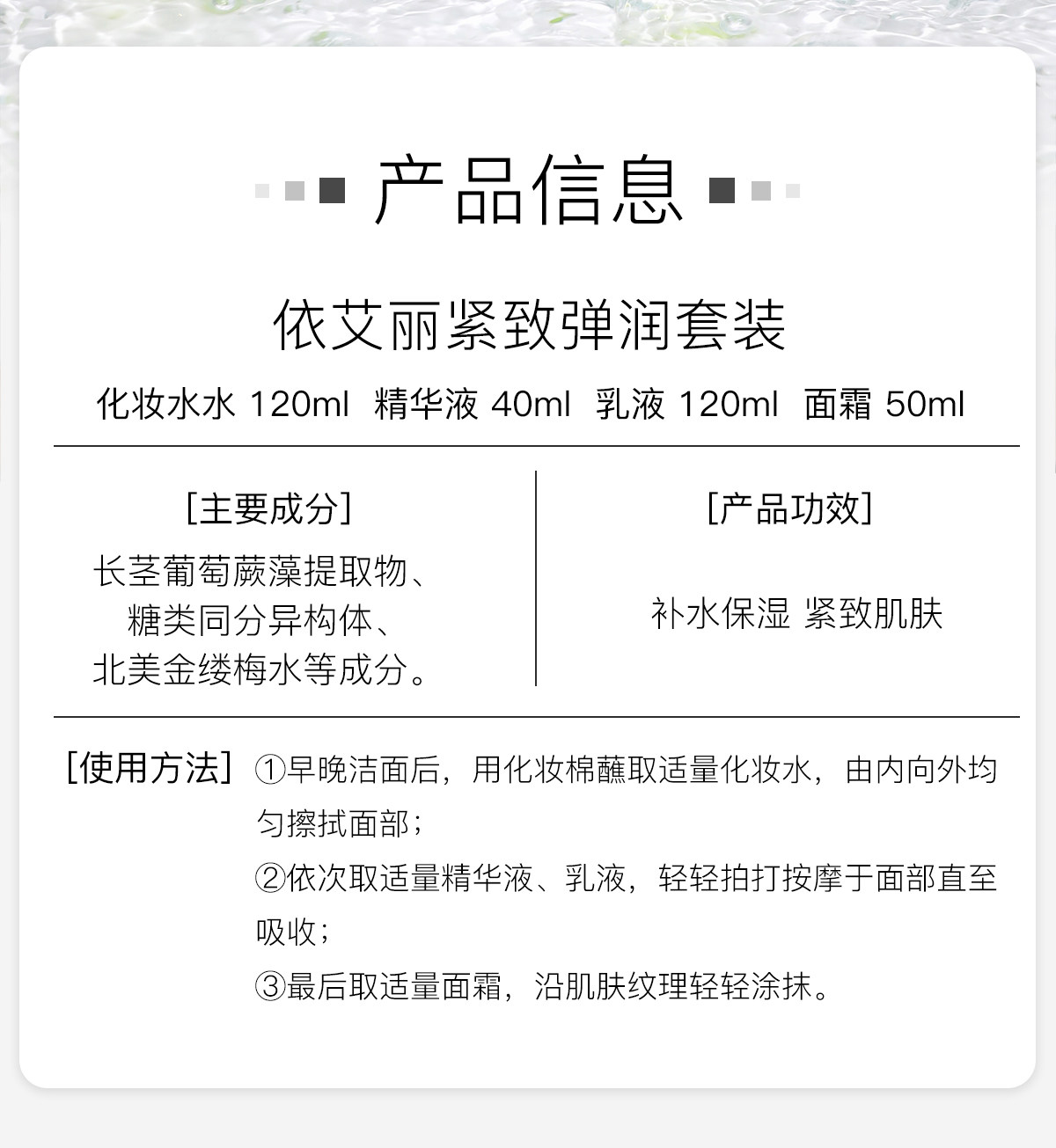 颜色分类 依艾丽紧致弹润套装,乳液,精华液,面霜,化妆水