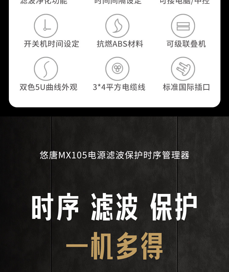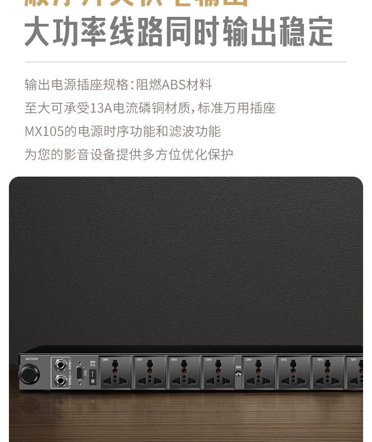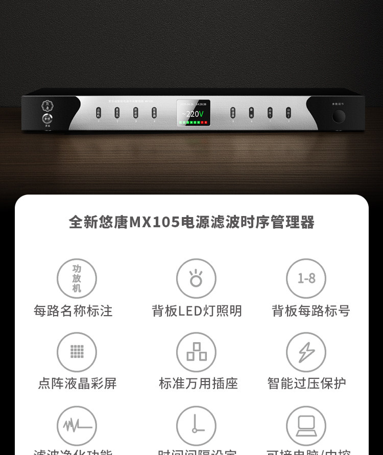Utang MX105 Power Sequencer 8-Wege-Filter 220V Professional Manager Socket Sequence Controller
