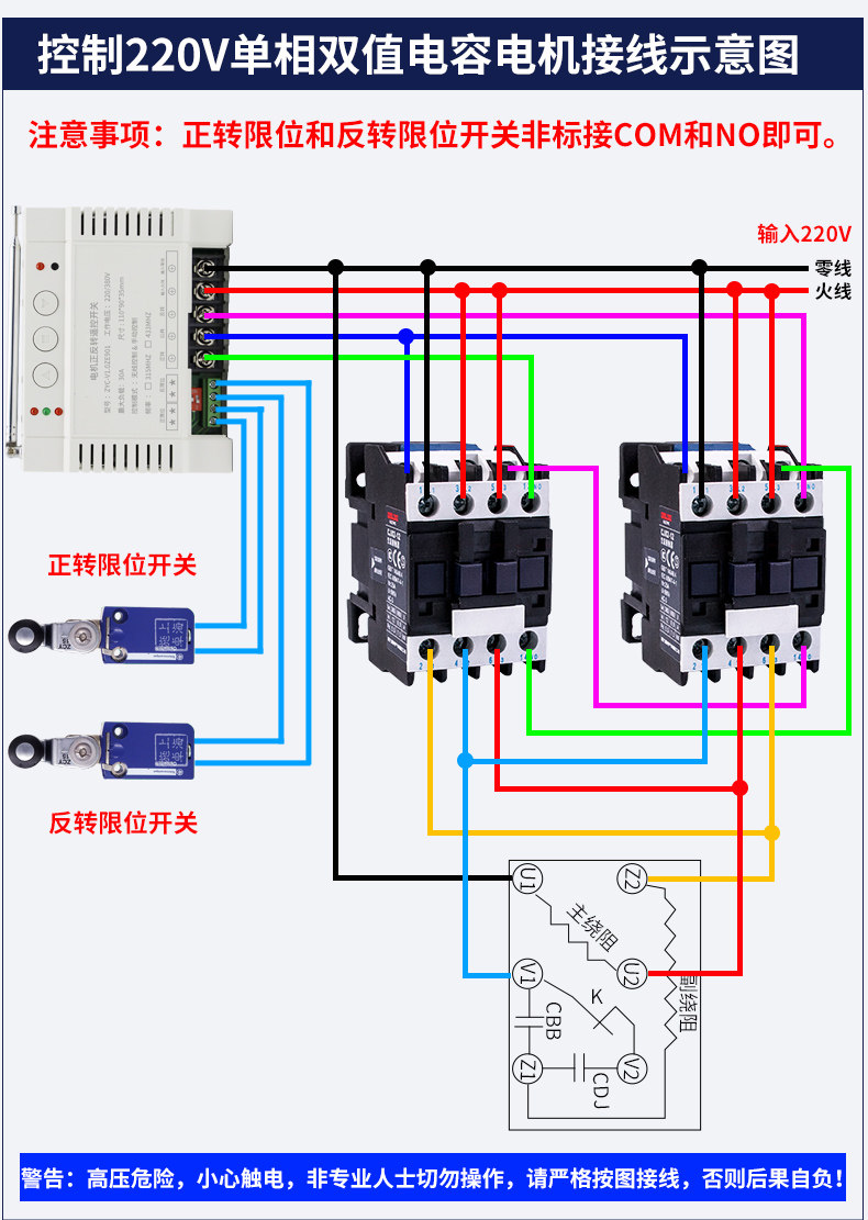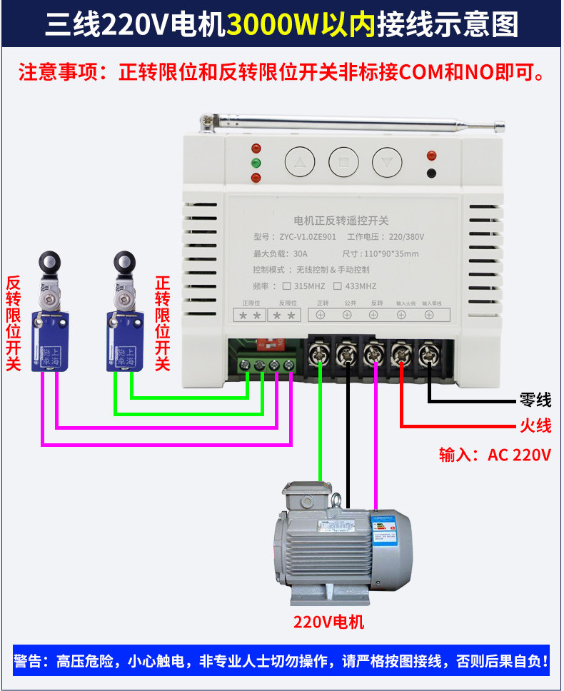 正反转电动机遥控开关220V大棚卷帘机倒顺智能无线380V限位控制器