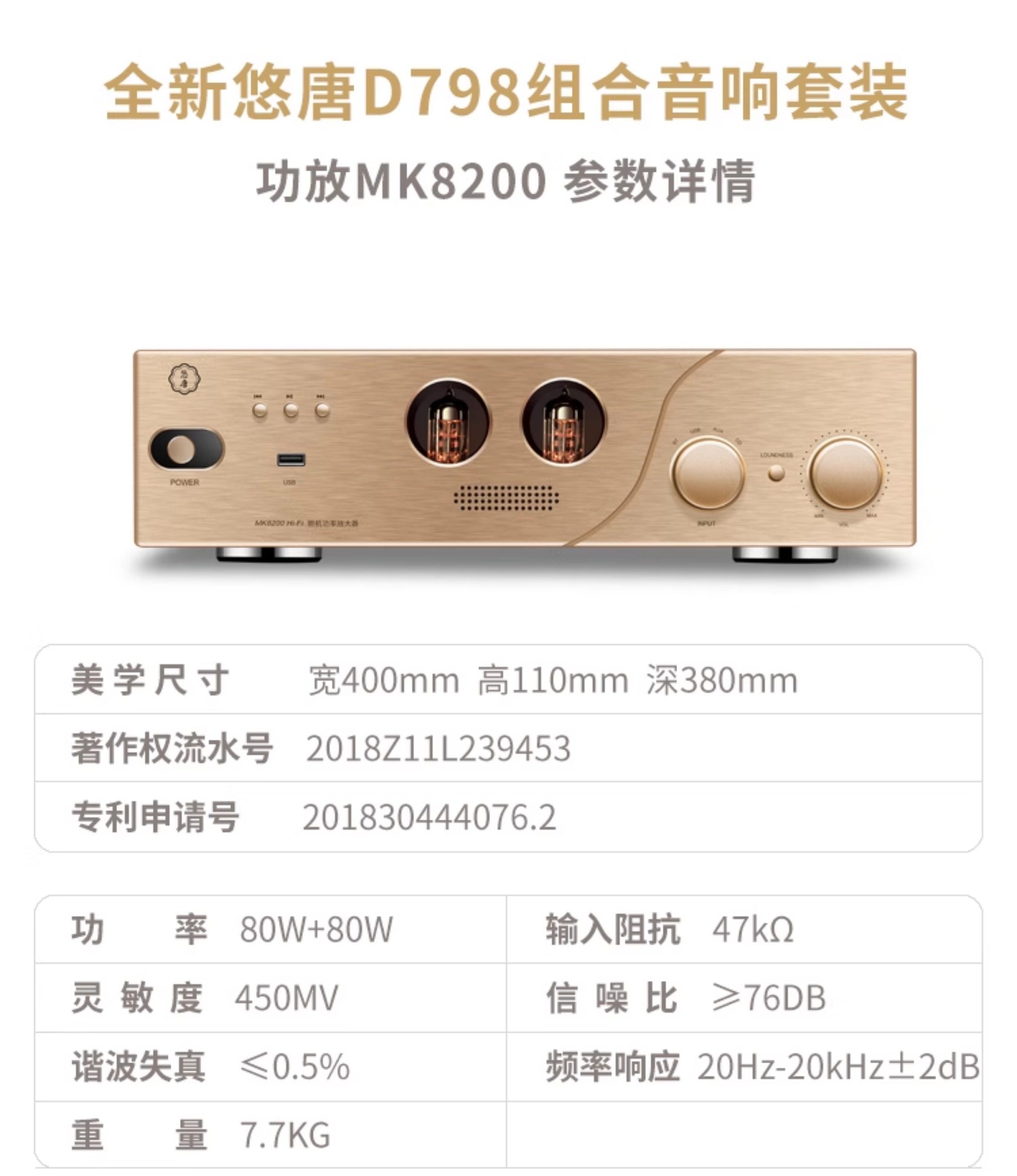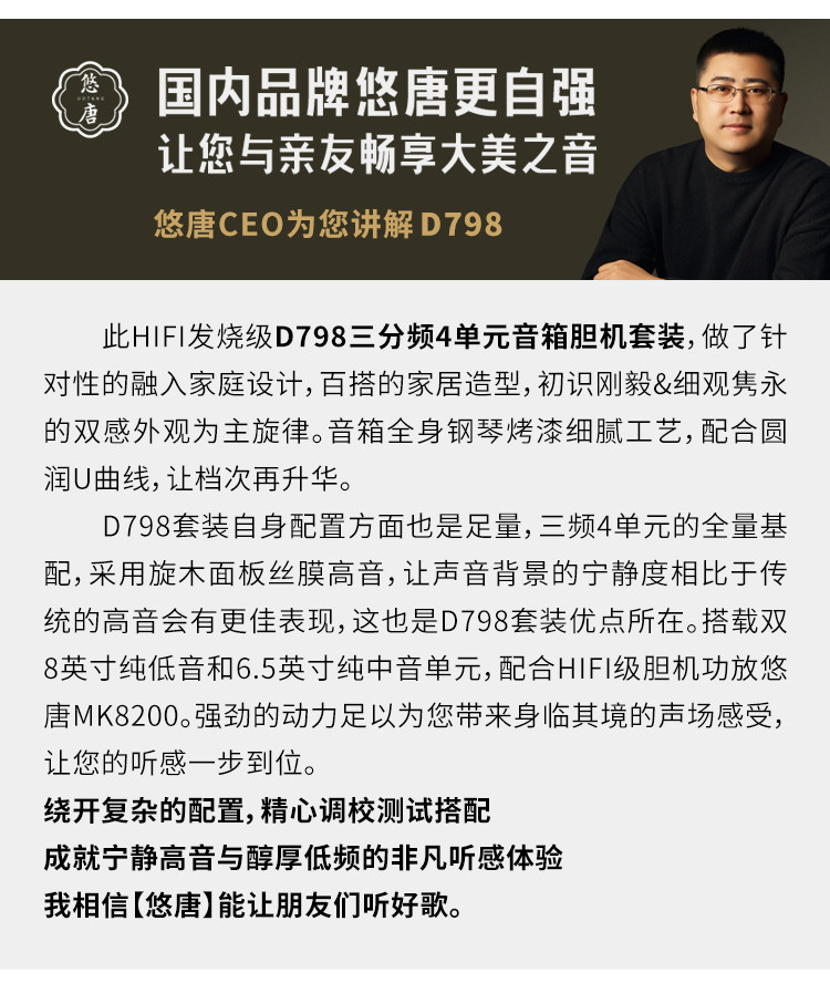 悠唐 D798胆机组合音响套装hifi发烧级电子管功放三分频落地音箱