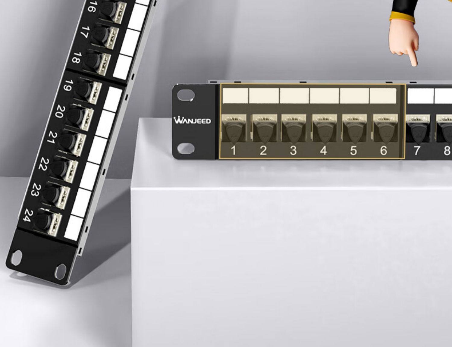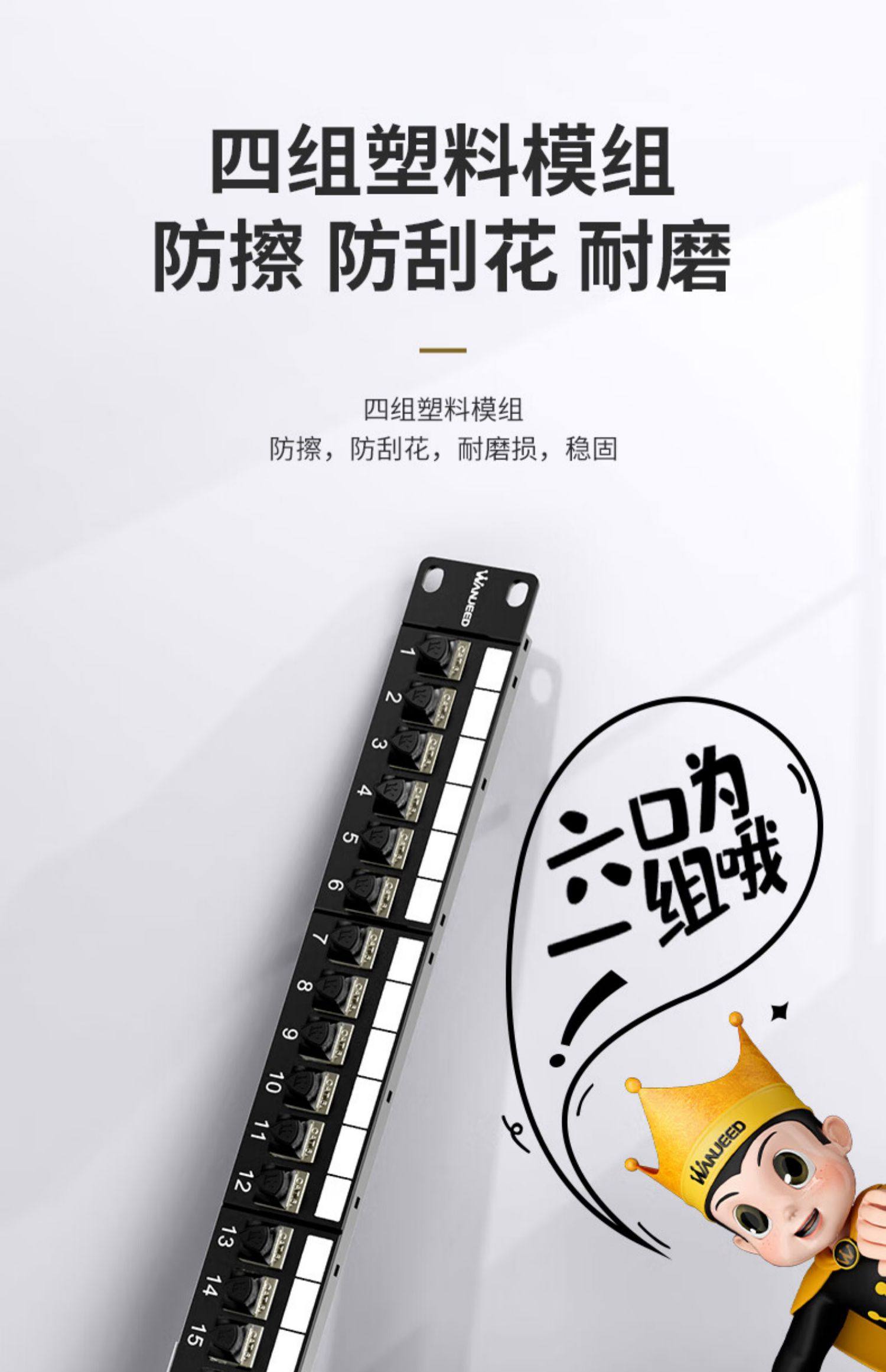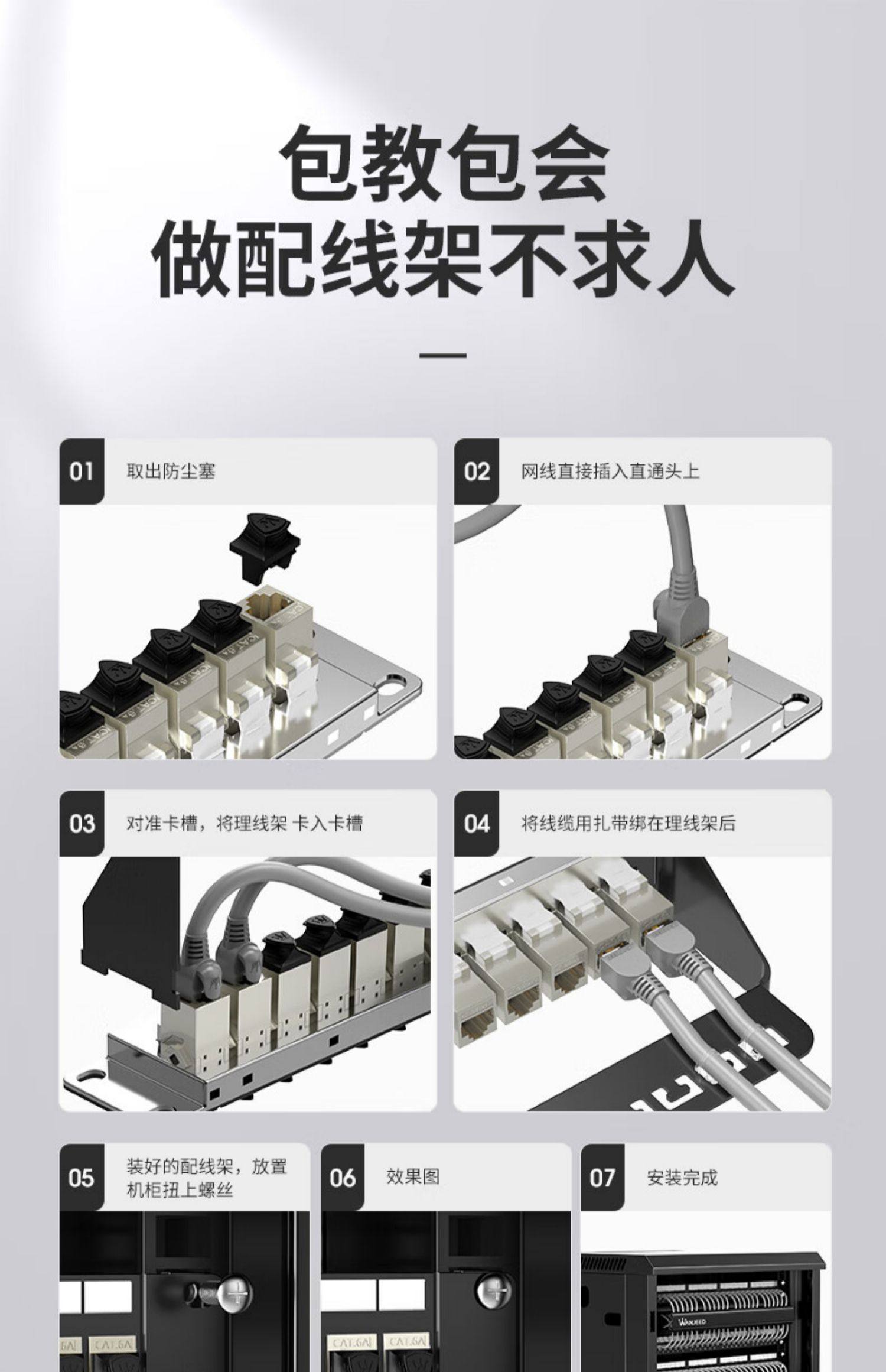 万级工程网络配线架直通式屏蔽超五5六6七7类免打线模块式对接万兆网线跳线架24口48光纤19u机柜服务器千兆