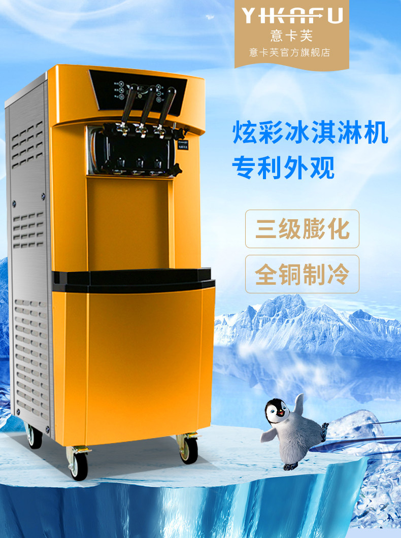 Yikafu Ice Cream Machine Commercial Ice Cream Maker Vertical Sundae Cone Tabletop Small Soft Ice Cream Machine