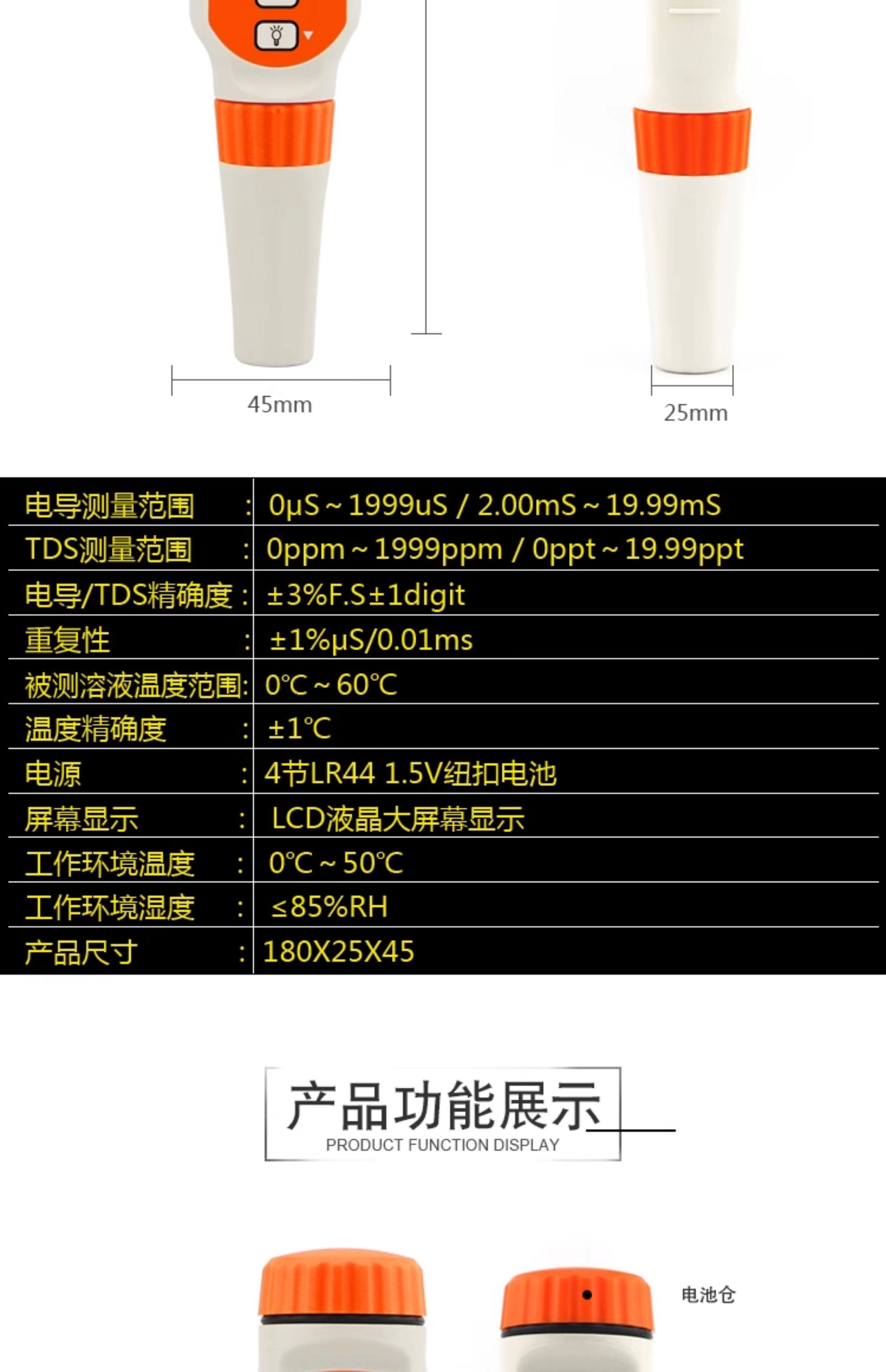 Xima Ar8011 Digital Display Conductivity Measurement Industrial High-Precision Pen-Type Water Quality Tester Portable Tds Meter