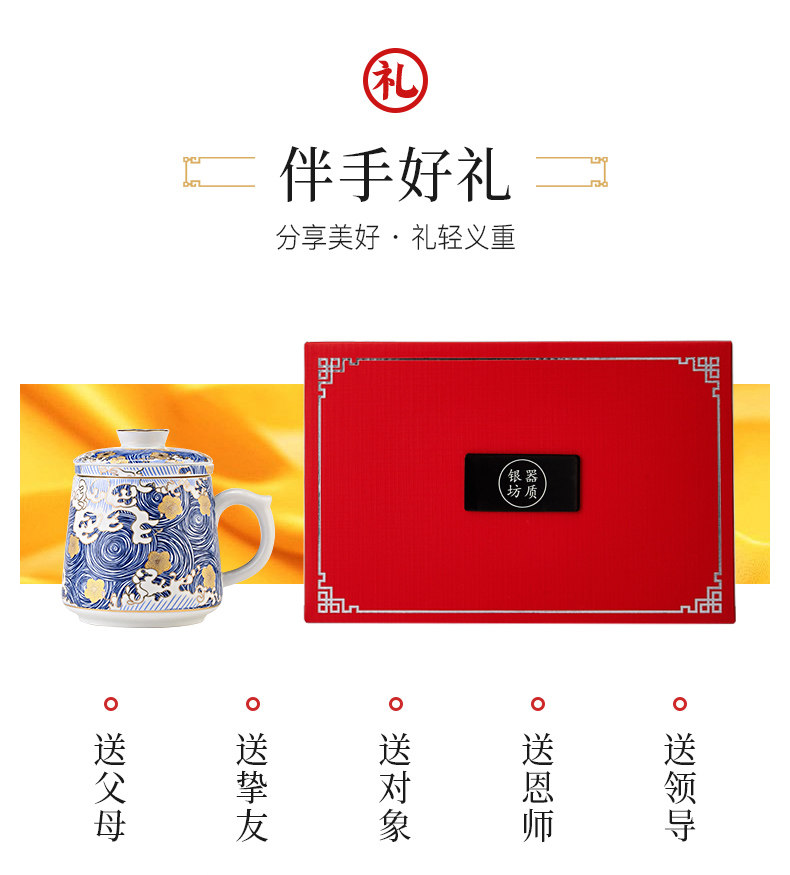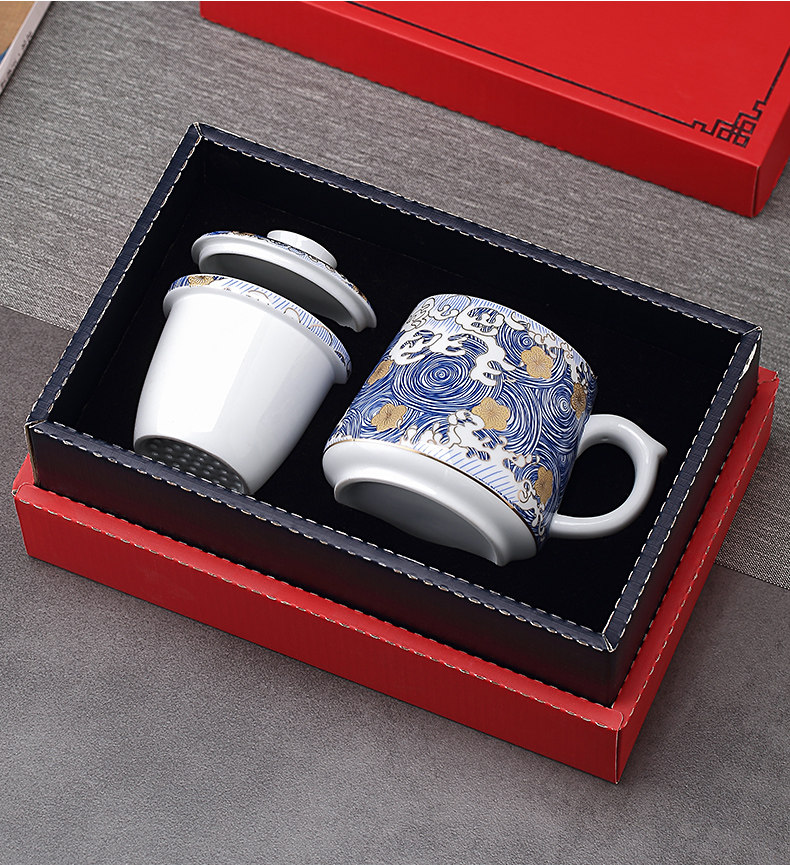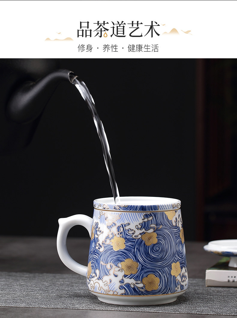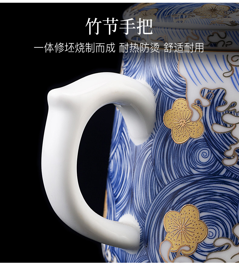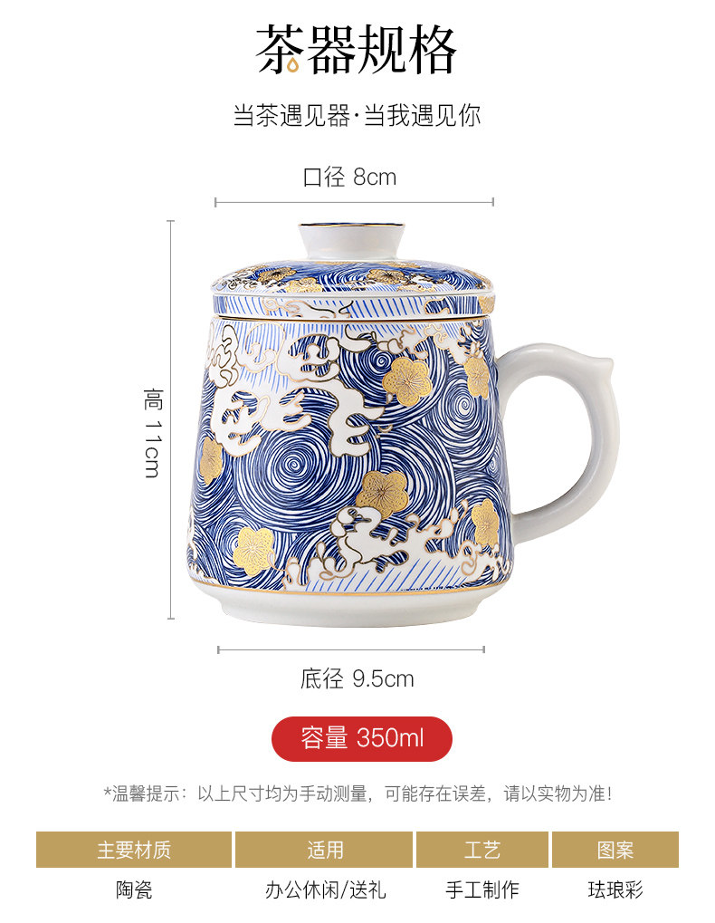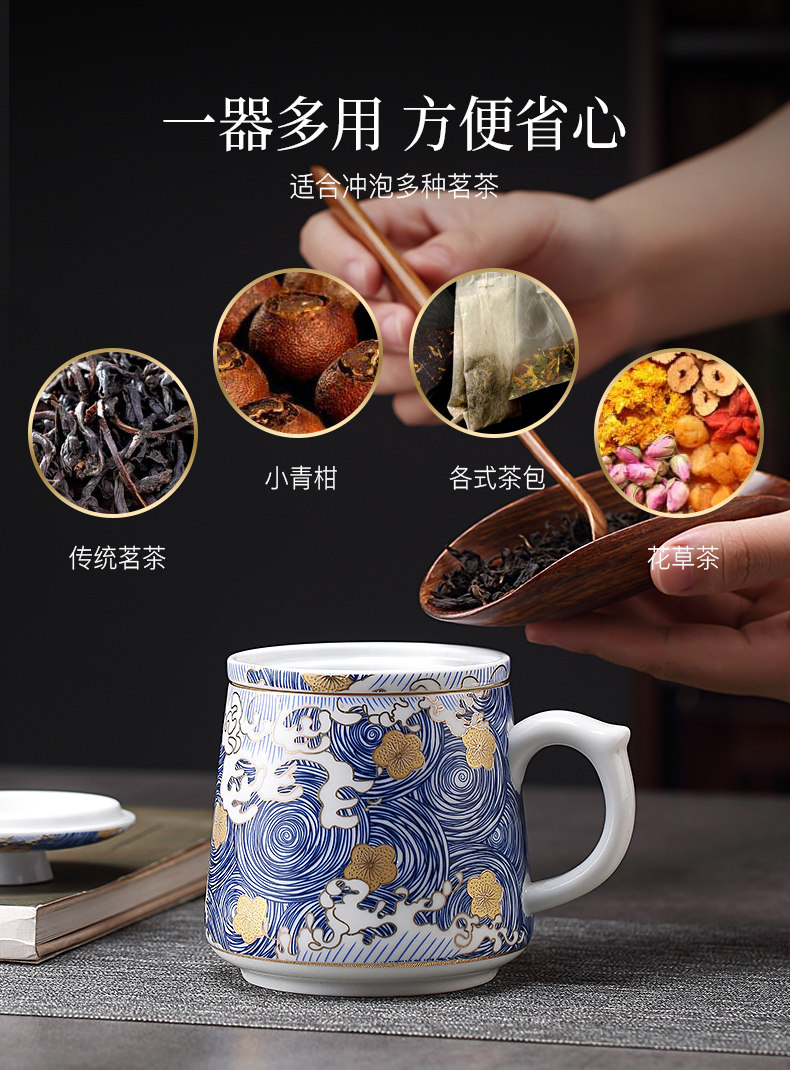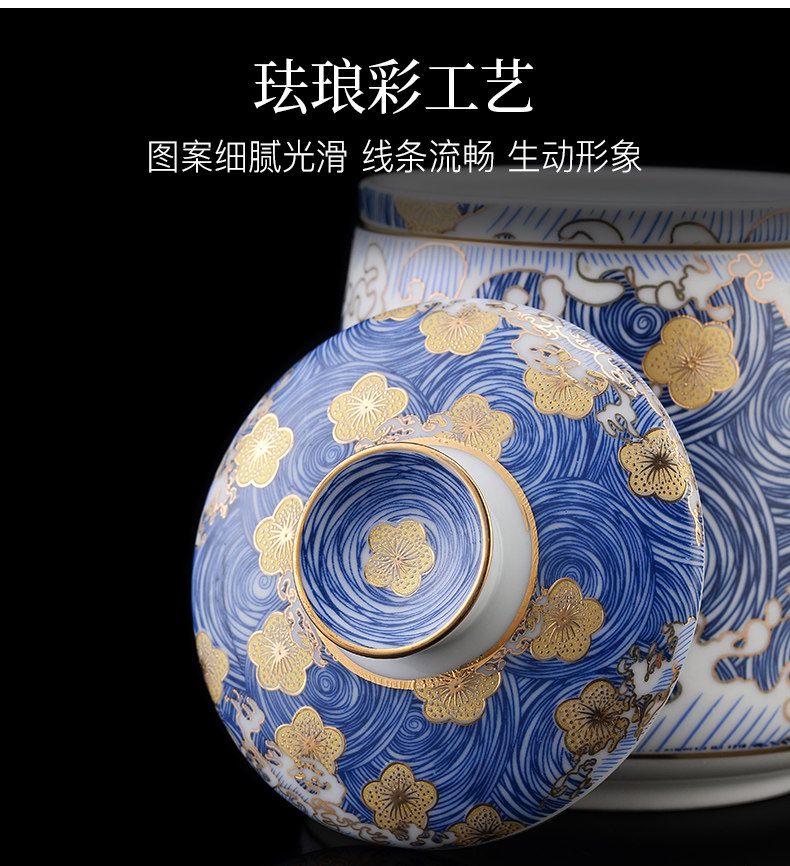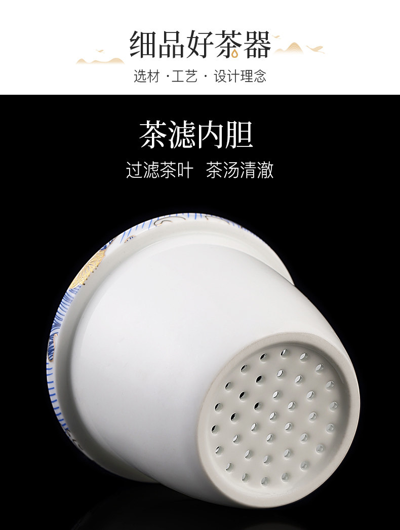 Guangqian Emaille-Farbe, vergoldetes Silber, persönliche Keramik-Teetasse mit Deckel zum Filtern von Tee-Wasser-Trennung, Home-Office-Teetasse