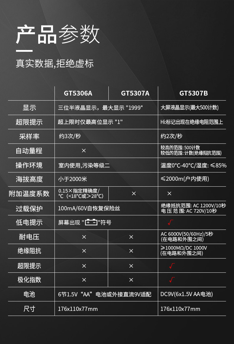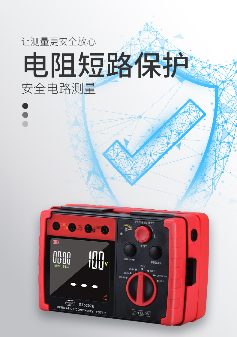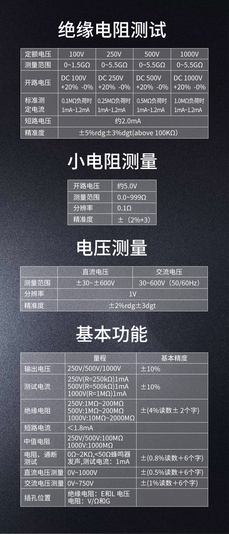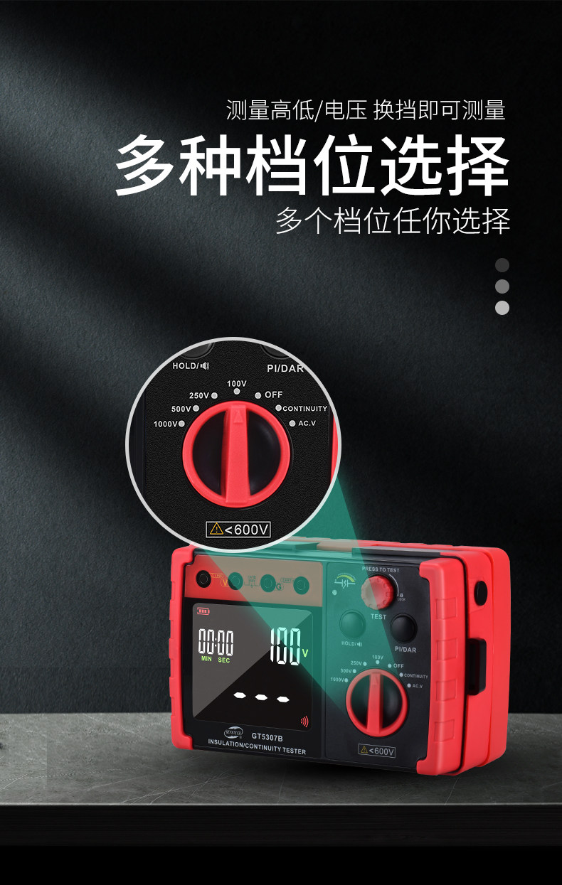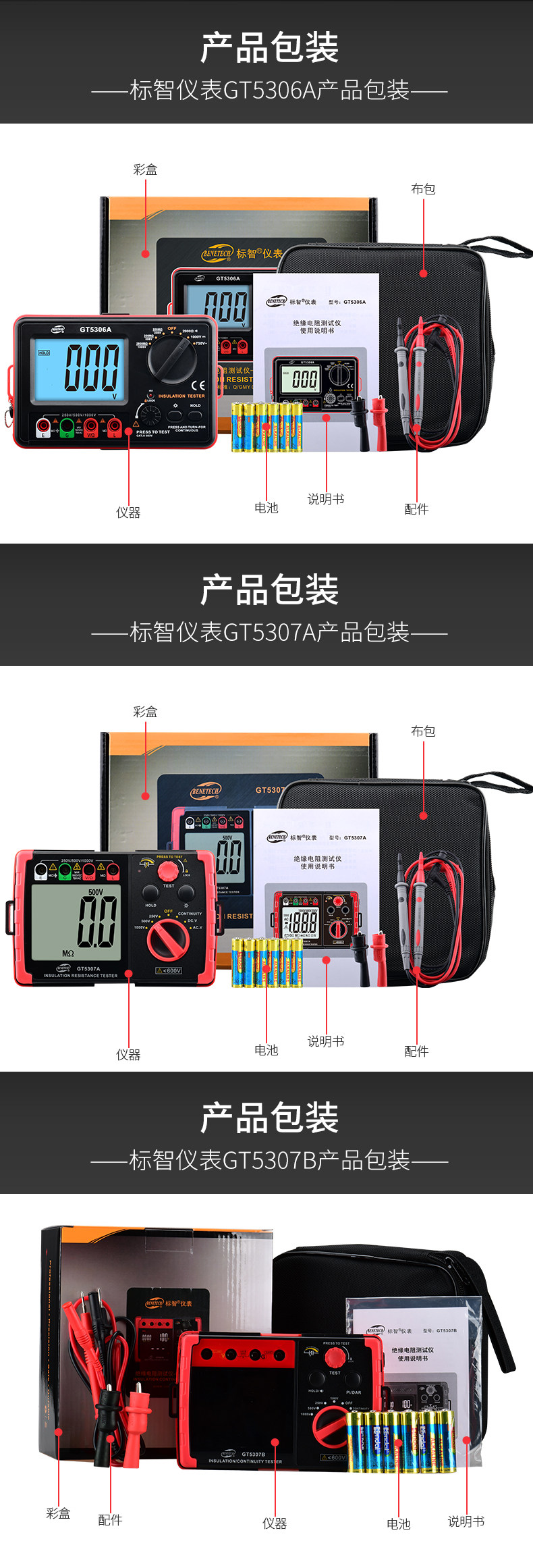 Farbklassifizierung GT5306A (offizieller Standard) drei Gänge optional,GT5307A (offizieller Standard) drei Gänge optional,GT5307B (offizieller Standard) vier Gänge optional,GM3123 Standardkonfiguration 250–2500 V,GM3125 Standardkonfiguration 500–5000 V