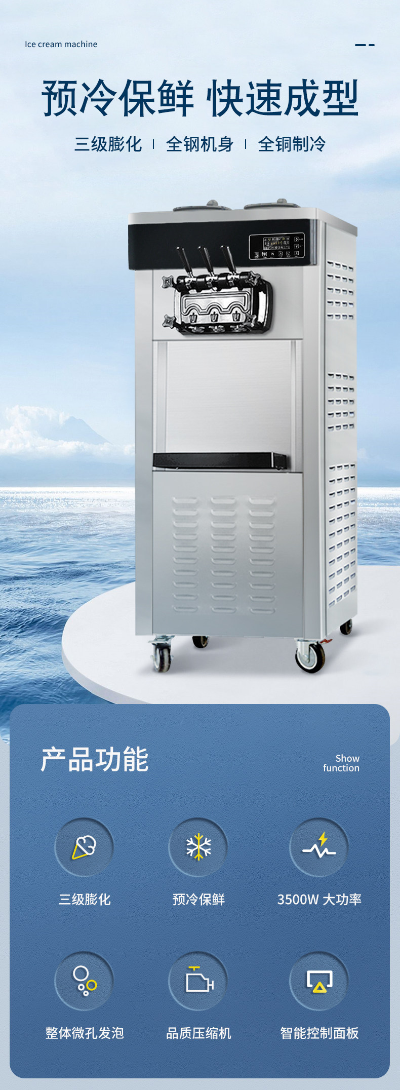 Yikove Ice Cream Machine Commercial Ice Cream Machine Vertical Three-Phase Electricity 380V Large-Capacity Large-Power Soft Ice Cream Machine
