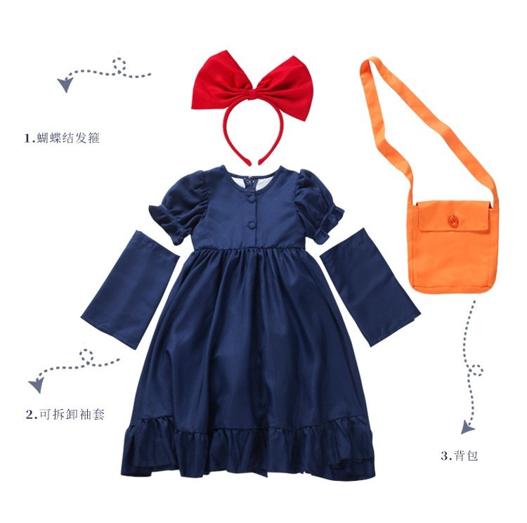 Kiki's Delivery Service Cosplay Costume for Girls, Kiki Role Play Adult and Child Matching Dresses, Halloween Children's Performance Costume