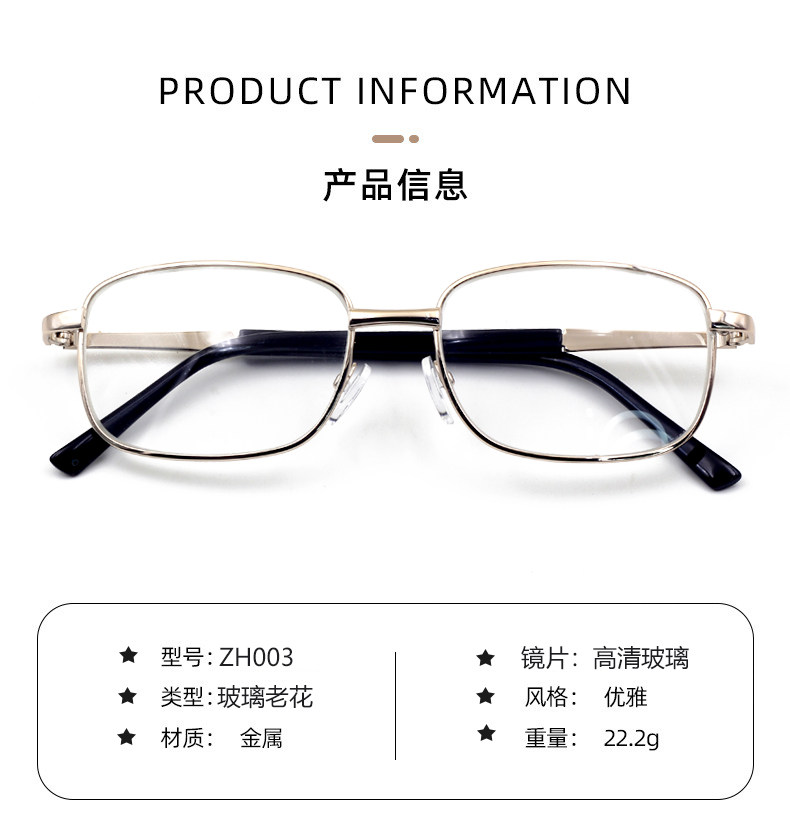 High-Definition Tempered Glass Reading Glasses for Middle-Aged and Elderly Men, Ultra-Light, Fashionable, Radiation-Proof, Women's Wear-Resistant and Scratch-Resistant Glasses