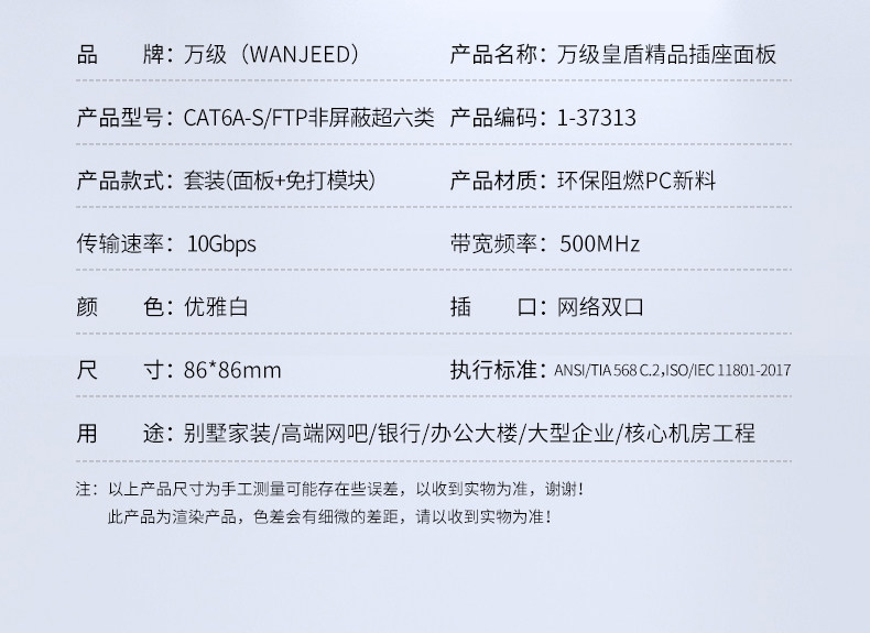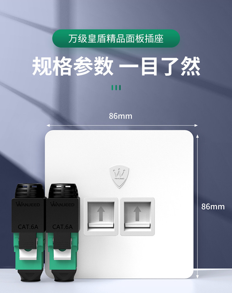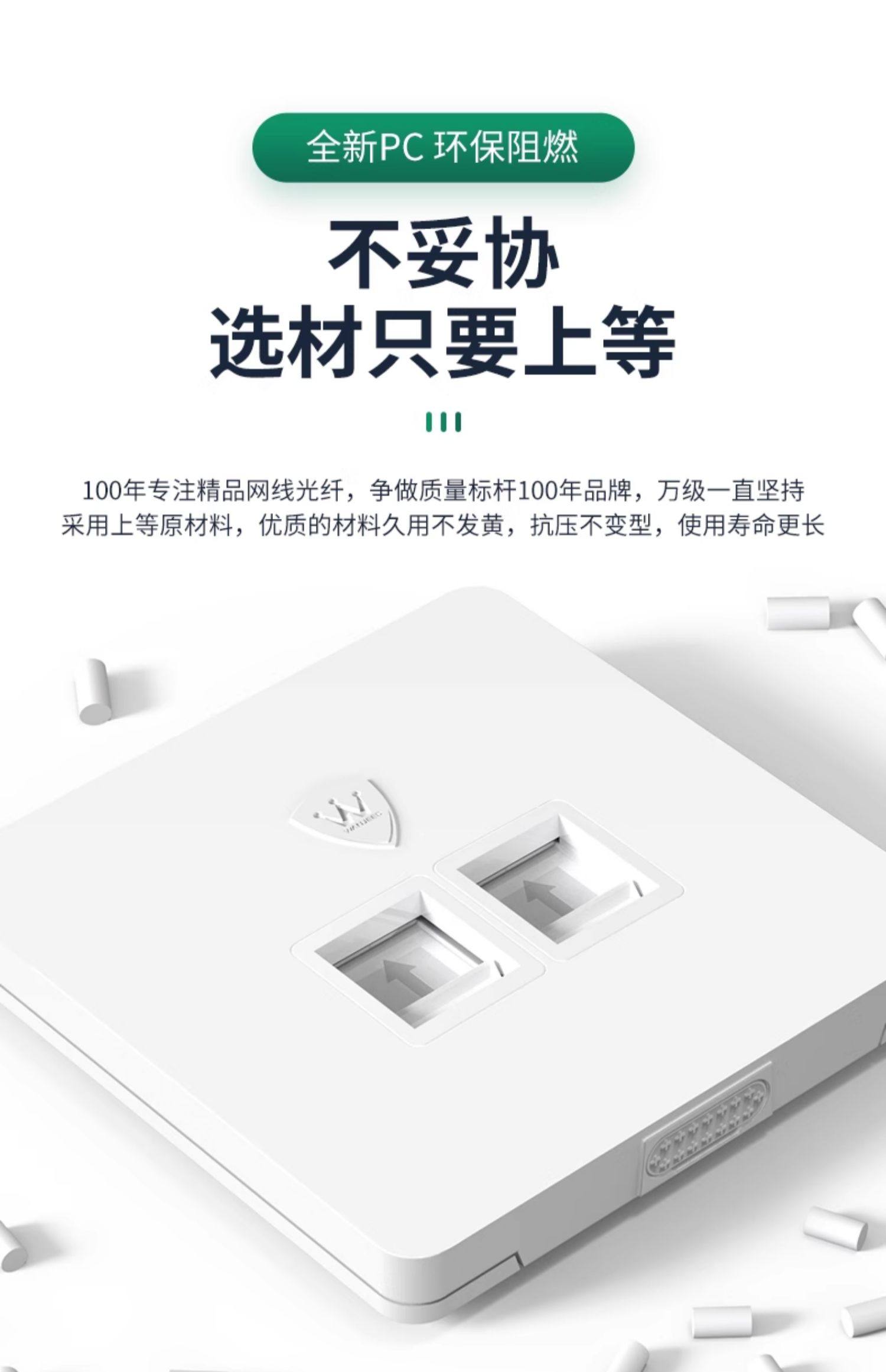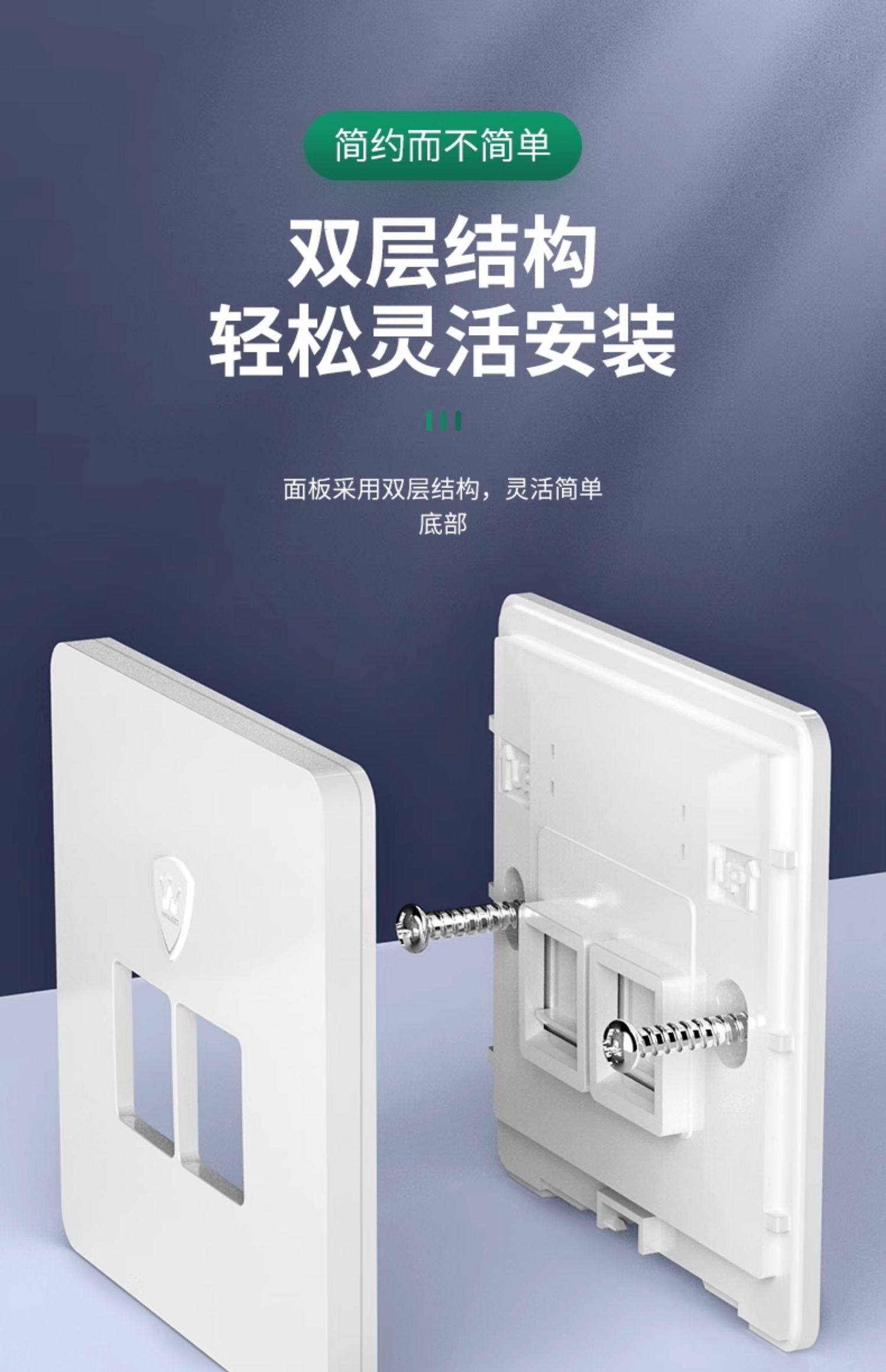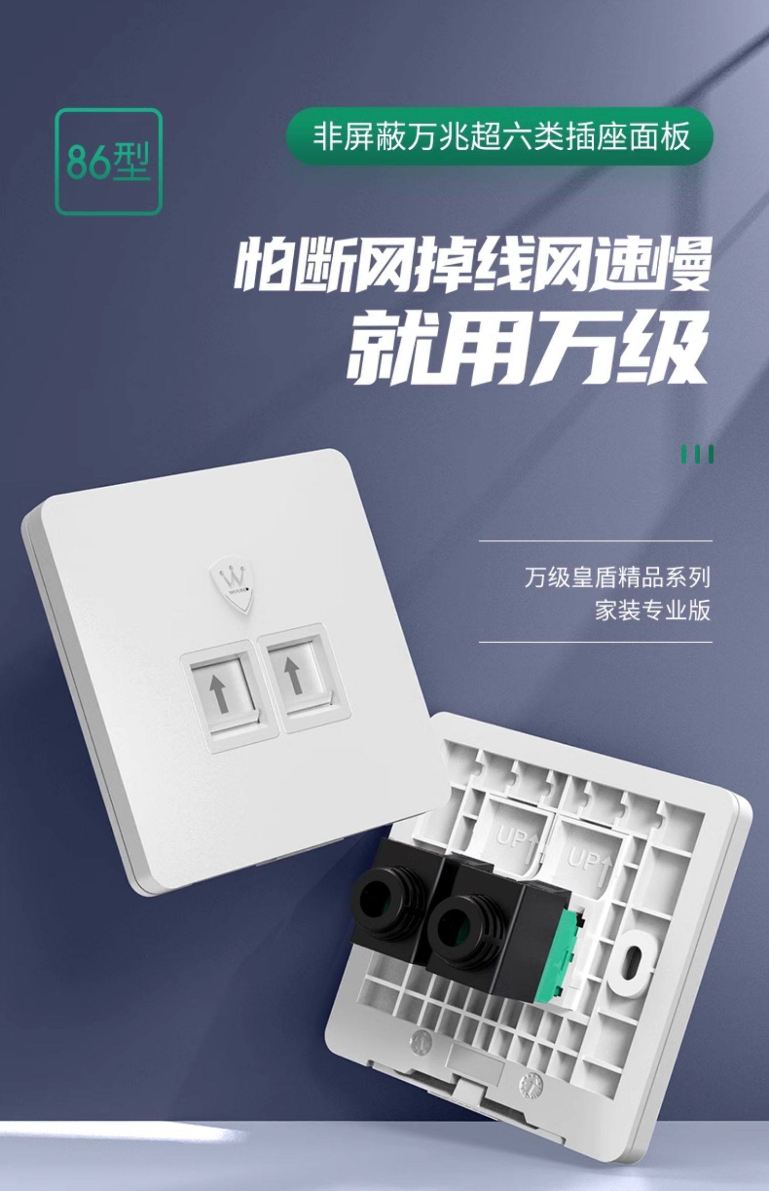 10Gbps Category 6A Unshielded Network Panel Gigabit Computer Tv Dual Network Port 86 Type Network Cable Socket