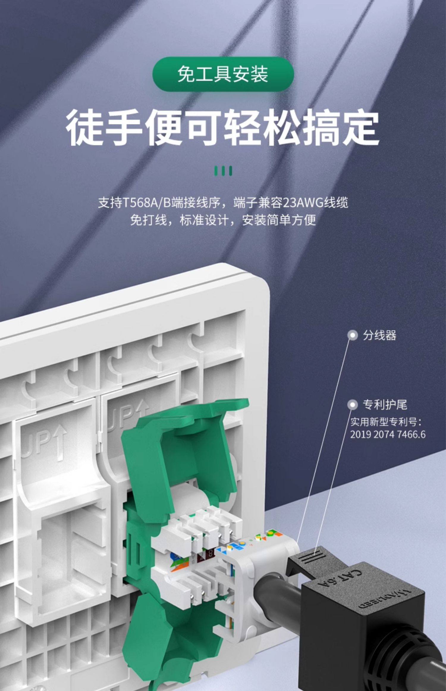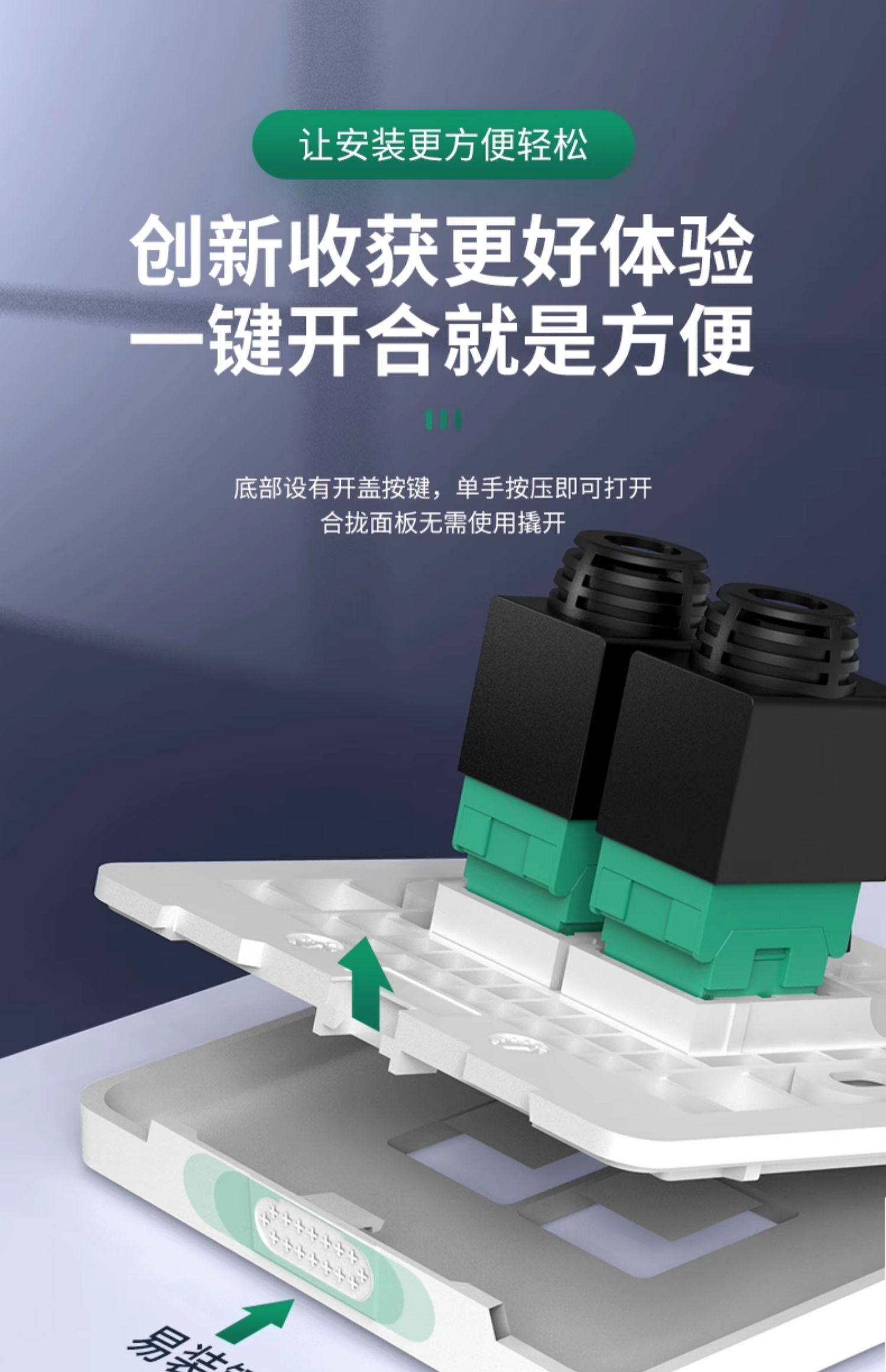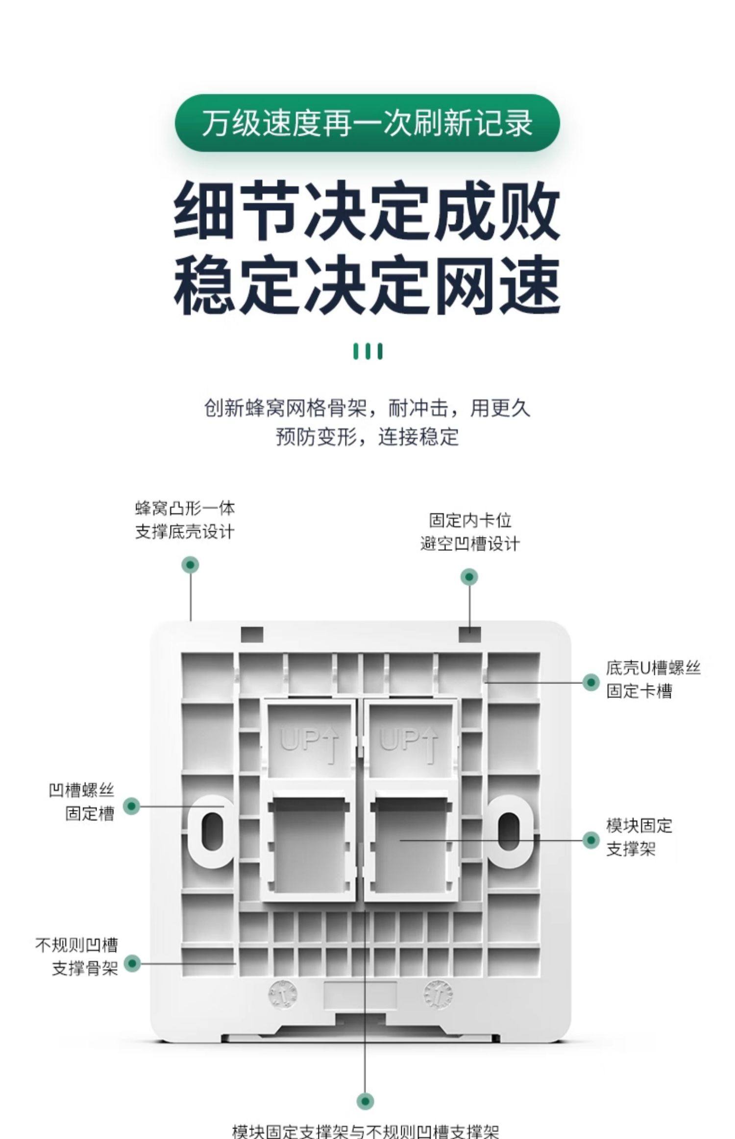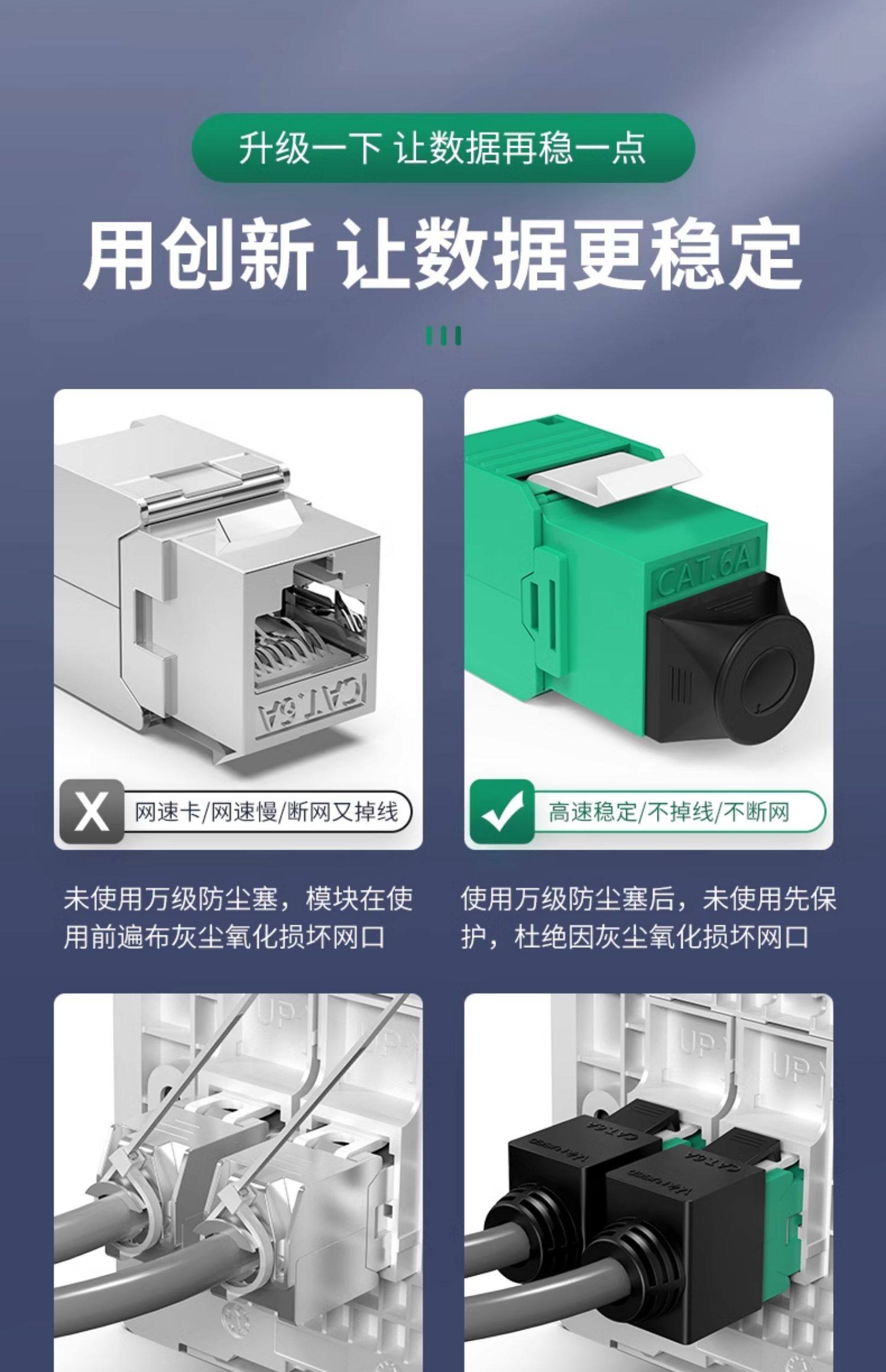 10Gbps Category 6A Unshielded Network Panel Gigabit Computer Tv Dual Network Port 86 Type Network Cable Socket
