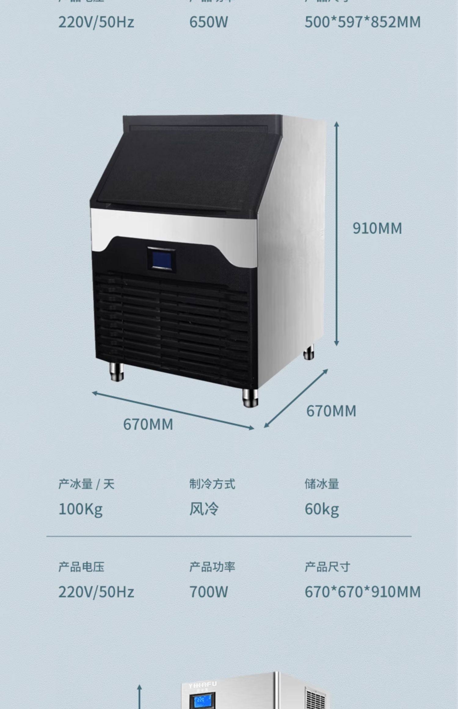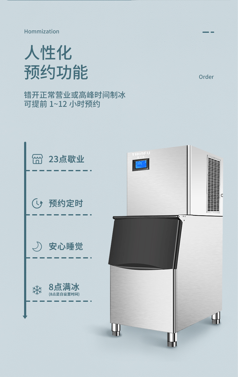 Clasificación de colores KK90Y: producción diaria de 50 kilogramos (Crescent Ice),KK160Y-100 kg por día (Hielo creciente),KK220Y: producción diaria de 250 kilogramos (Crescent Ice),KK300Y-producción diaria 200 kg (hielo en forma de media luna) 160 bandejas de hielo,KKX300Y-producción diaria 300 kg (hielo en forma de media luna) 224 bandejas de hielo,KK500Y-producción diaria 500 kg (hielo en forma de media luna) 448 bandejas de hielo