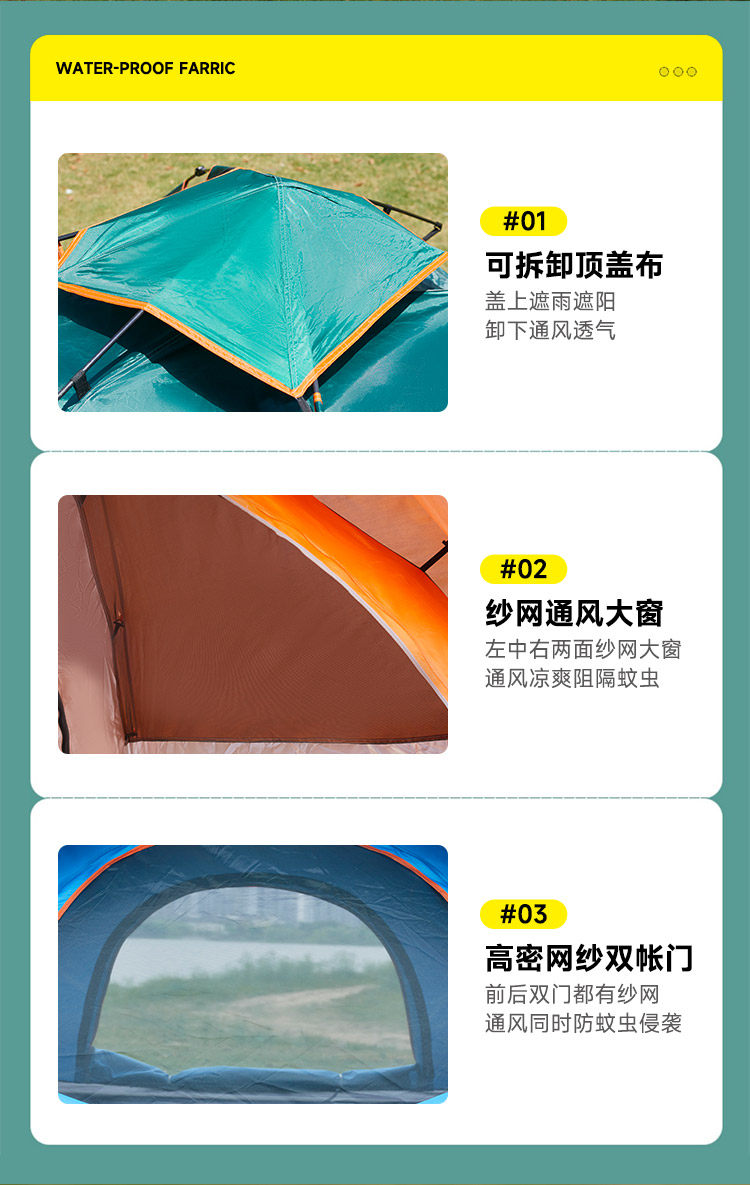 Free Adventure Oxford-Stoff-Doppelschicht-Zelt im Freien, tragbar, zusammenklappbar, vollautomatischer Pop-Up-Camping-Campingpark