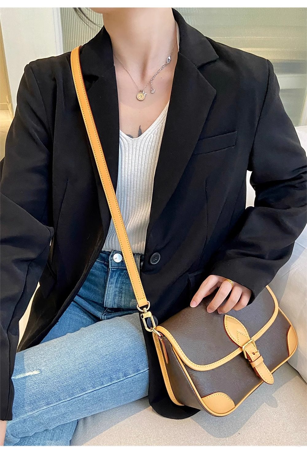 Accesorios para bolso con correa para el hombro Jingqian LV, bolso tipo cubo baguette speedy25 modificado, se puede usar en diagonal a través de la correa del bolso de cuero curtido vegetal