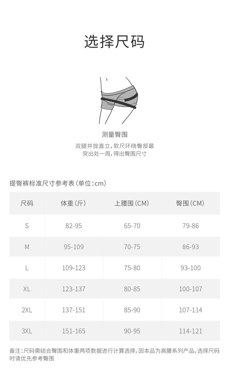 Size S (Hip Circumference 79-86cm) 41-47.5kg,M (Hip Circumference 87-93cm) 48-54.5kg,L (Hip Circumference 94-100cm) 55-61.5kg,XL (Hip 101-107cm) 62-68.5kg,XXL (Hip 108-114cm) 69-75.5kg,XXXL (Hip 115-121cm) 76-82.5kg