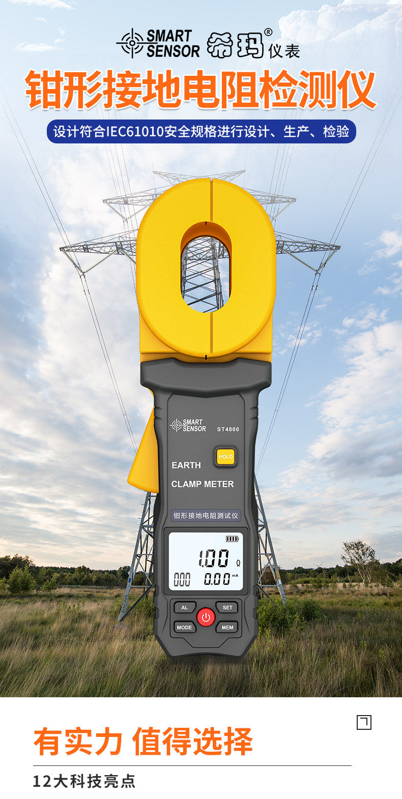 Xima St4800 Clamp-On Ground Resistance Tester High-Precision Digital Lightning Protection Ground Resistance Test Instrument