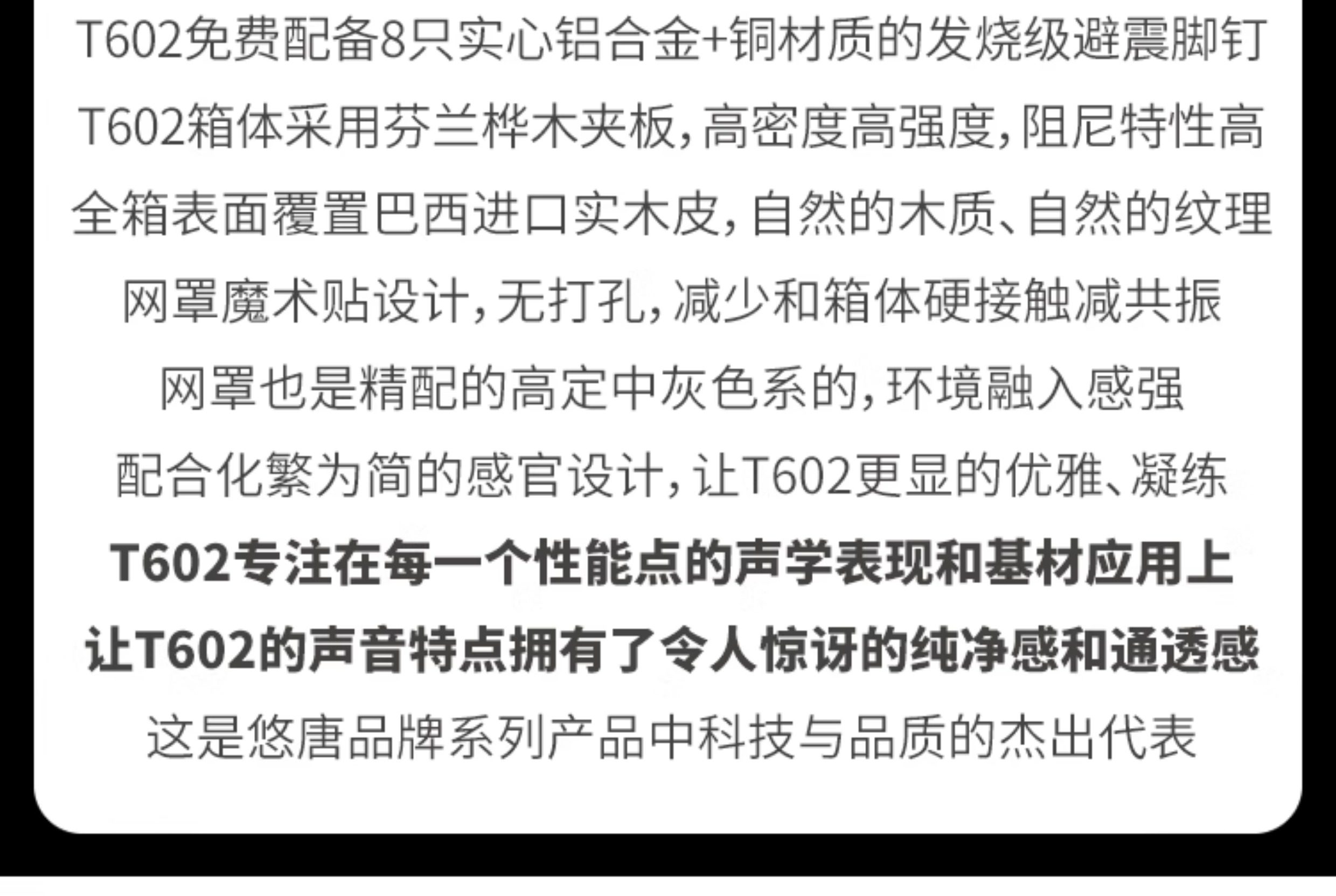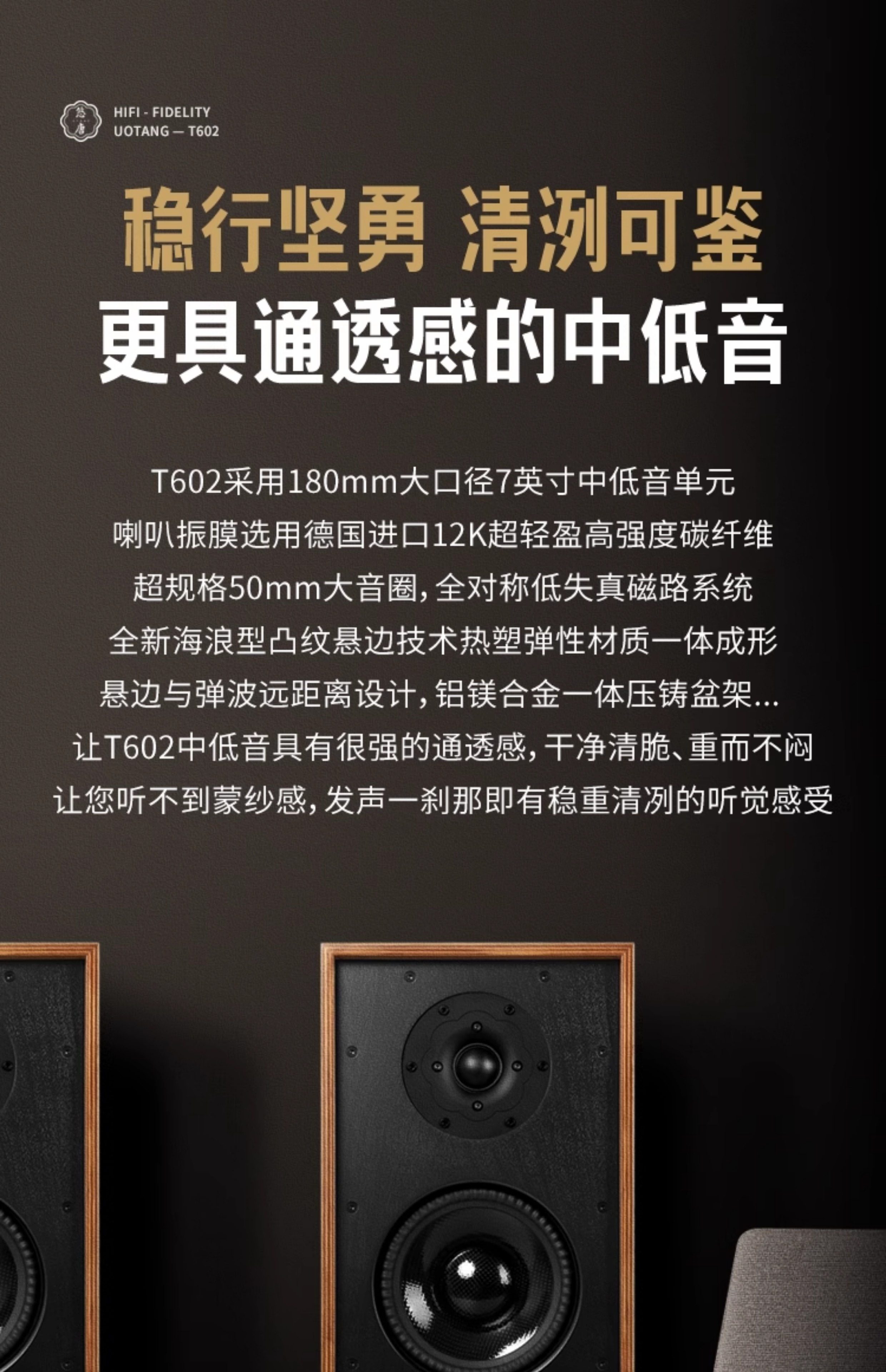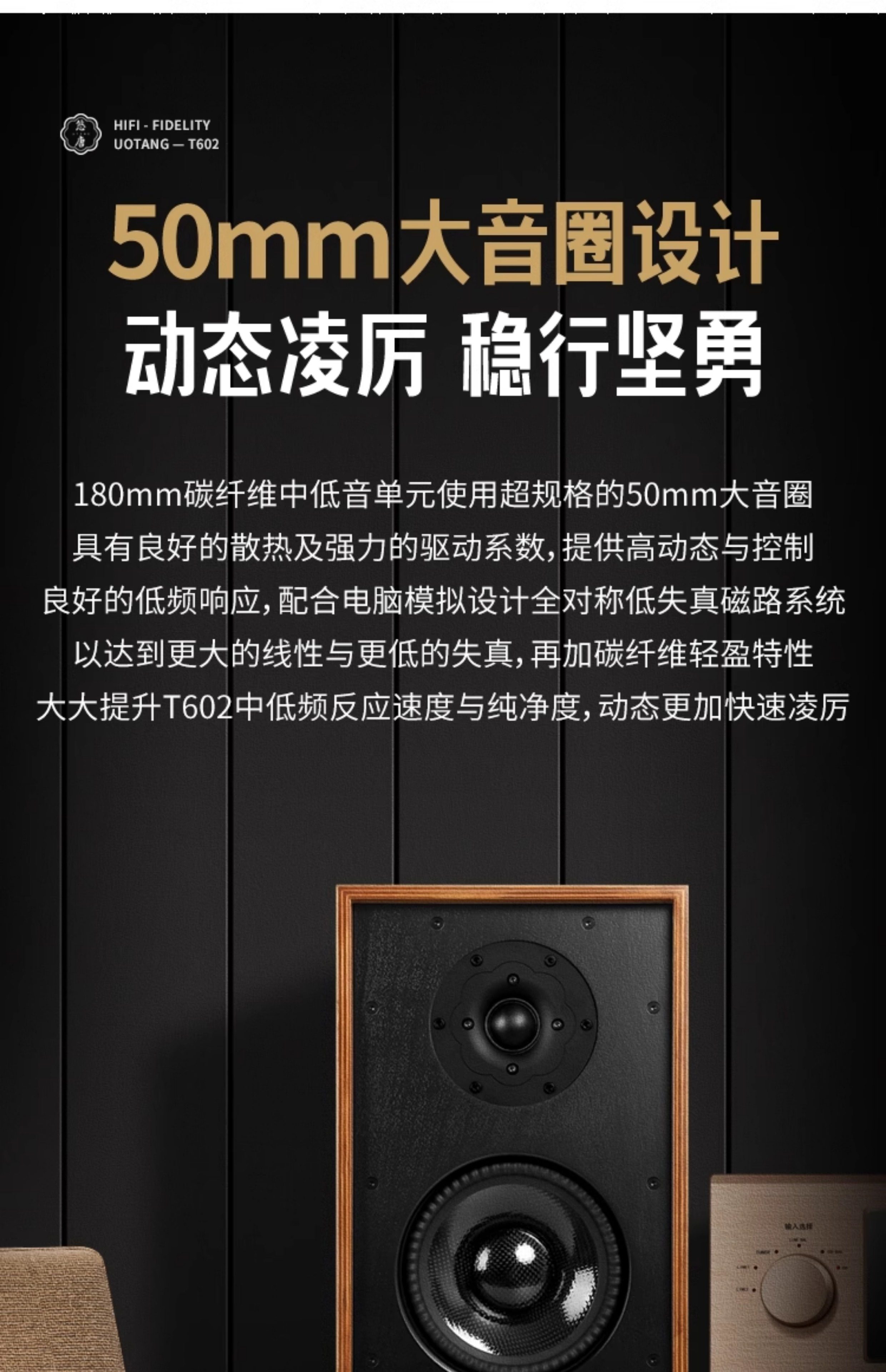 Youtang T602 Passive Speaker Hifi Audiophile Bookshelf Speaker Birch Plywood Carbon Fiber Two-Way Professional Audio