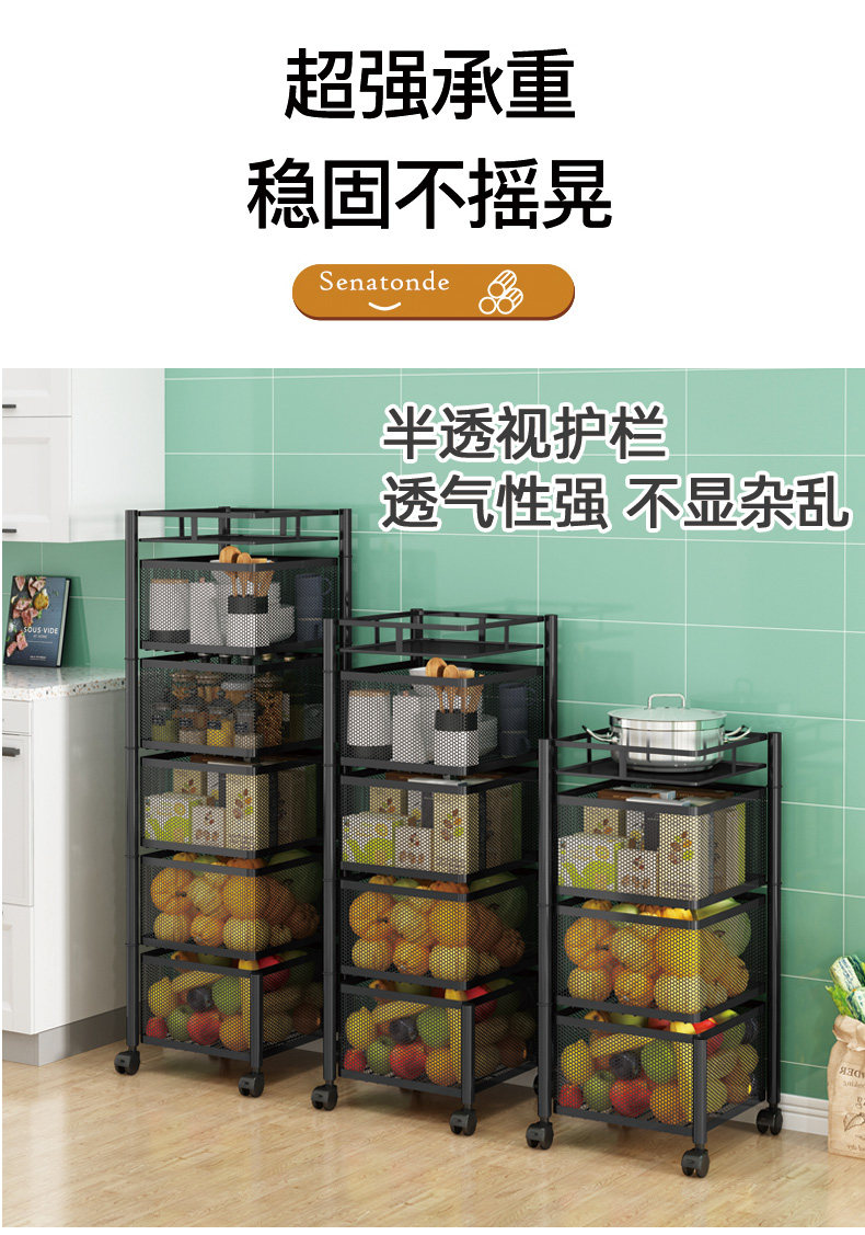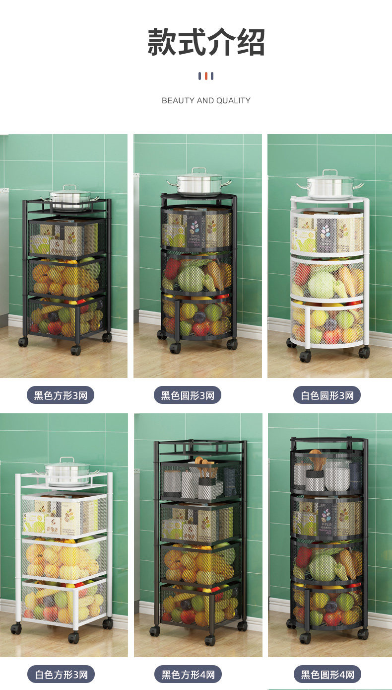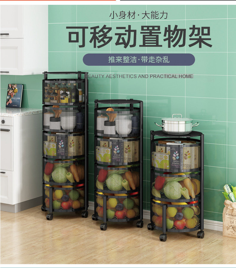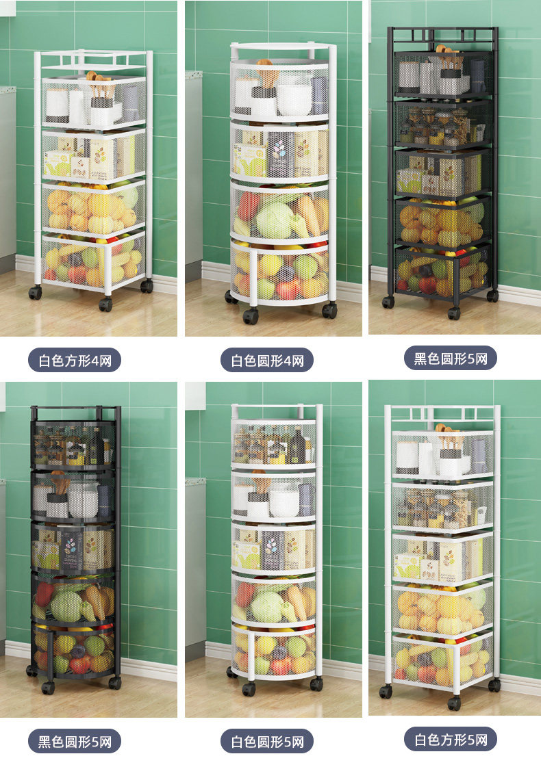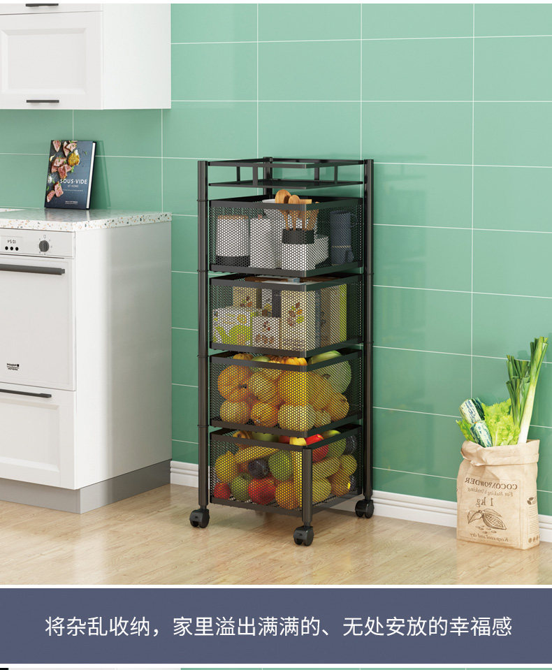 Küchendrehgestell, Haushalts-Multifunktionsspeicher, bodenstehend, mehrschichtig, montagefrei, Obst- und Gemüsekorb-Lagerregal