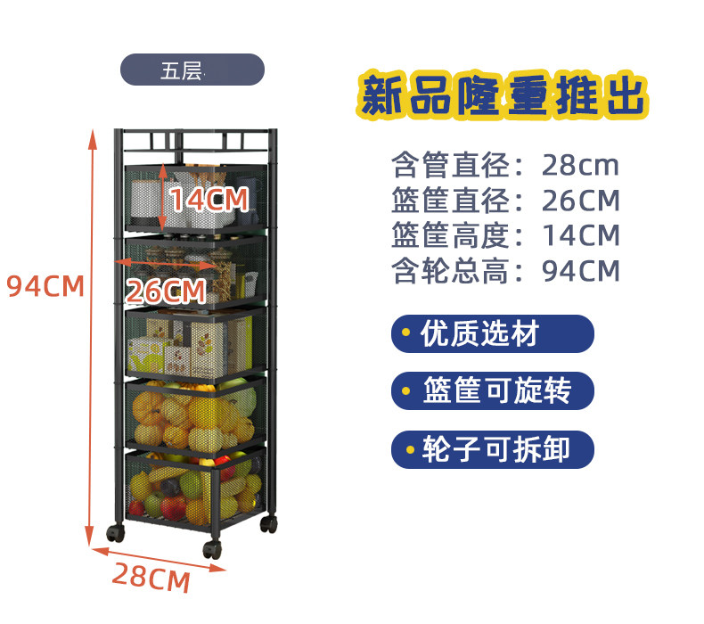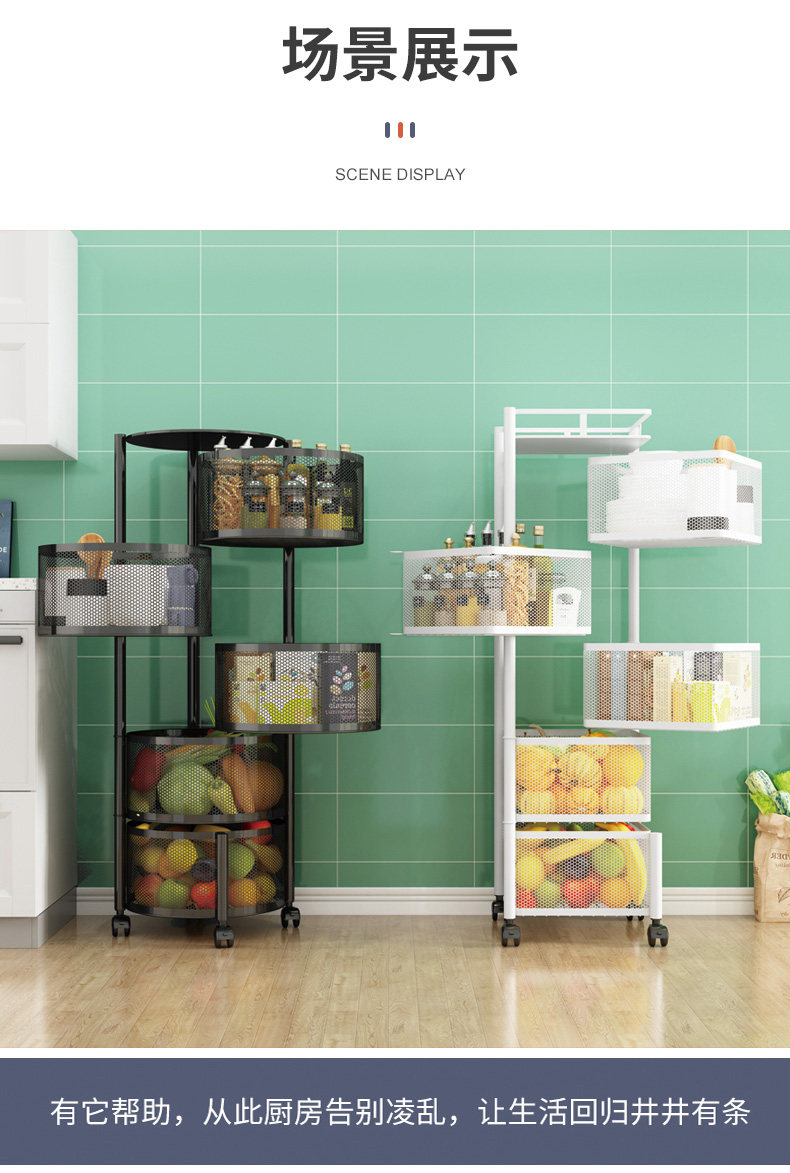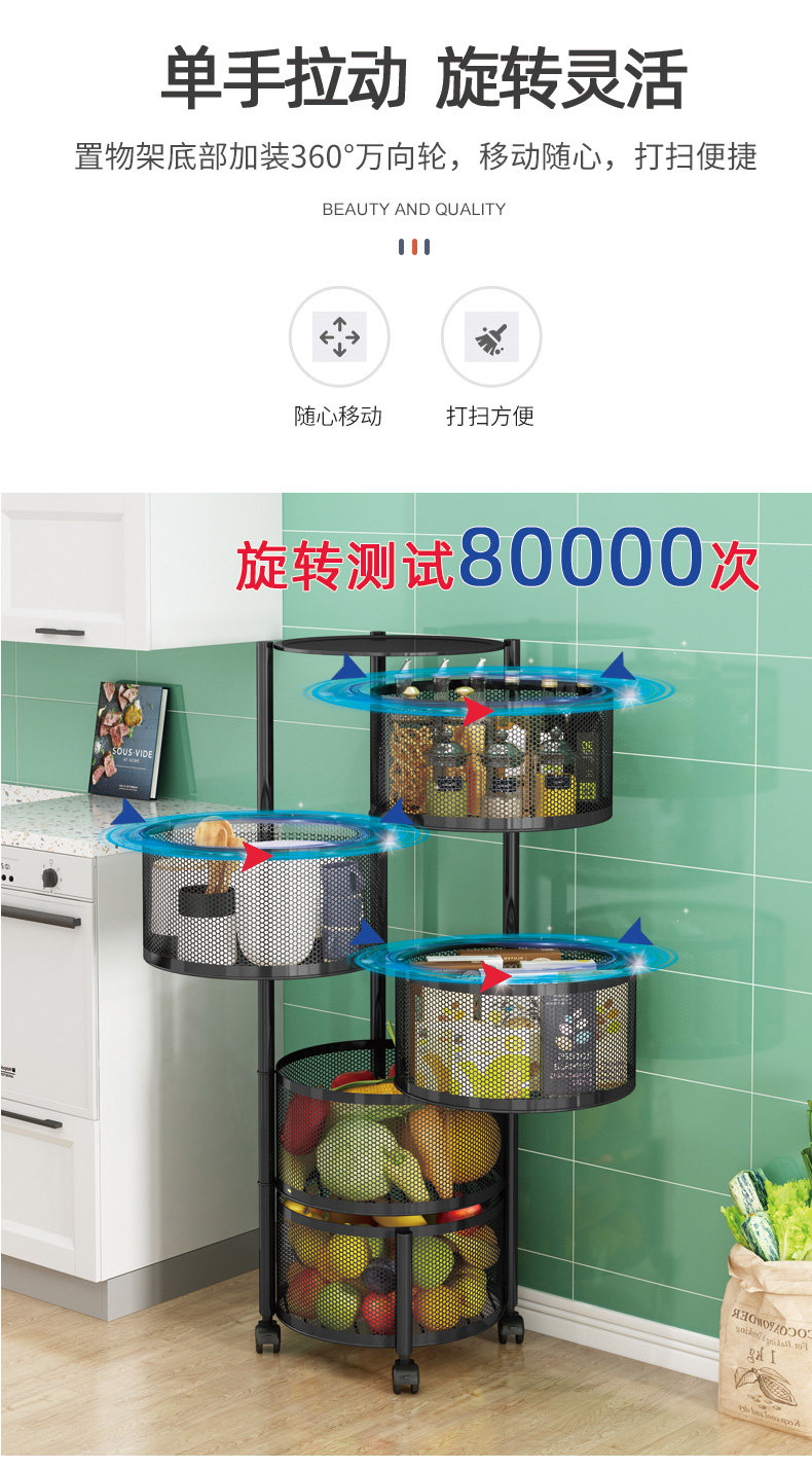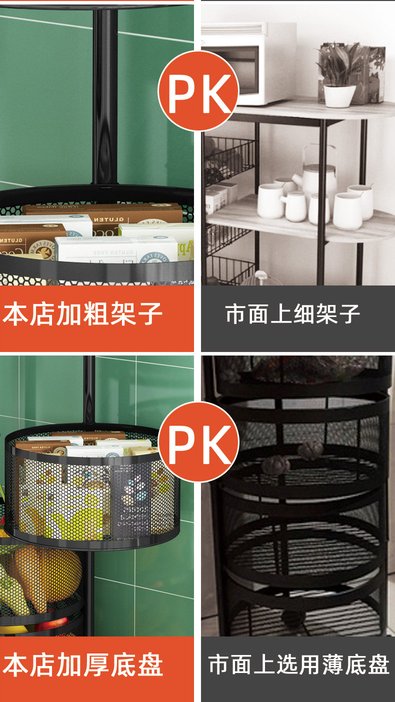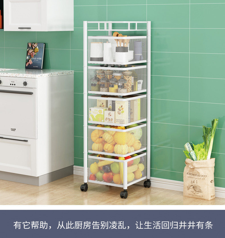 Küchendrehgestell, Haushalts-Multifunktionsspeicher, bodenstehend, mehrschichtig, montagefrei, Obst- und Gemüsekorb-Lagerregal