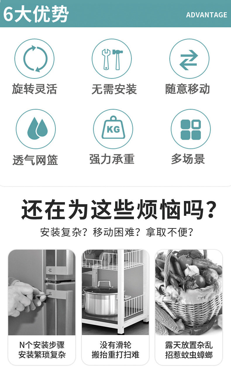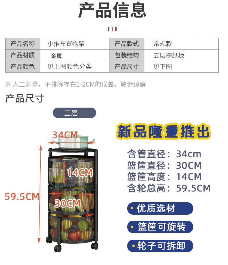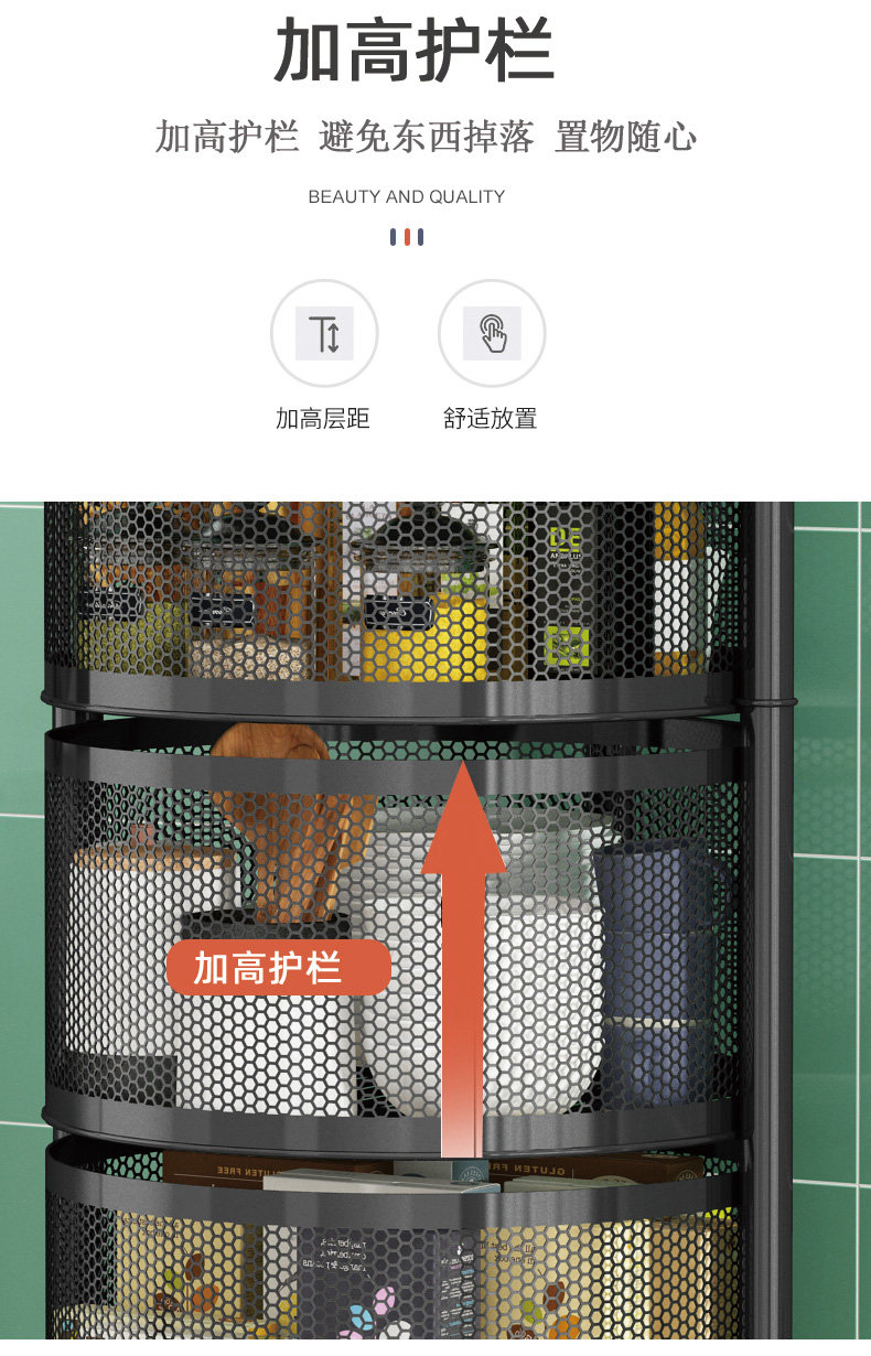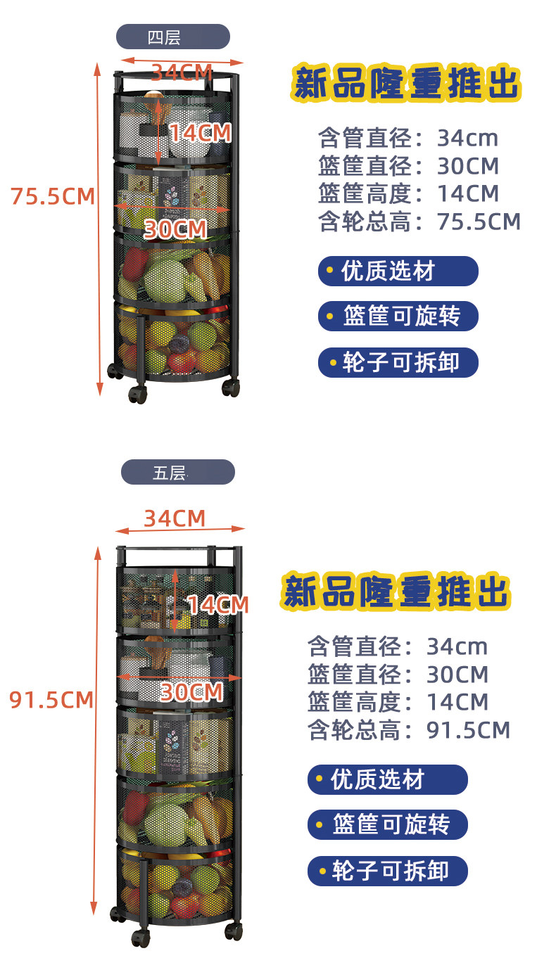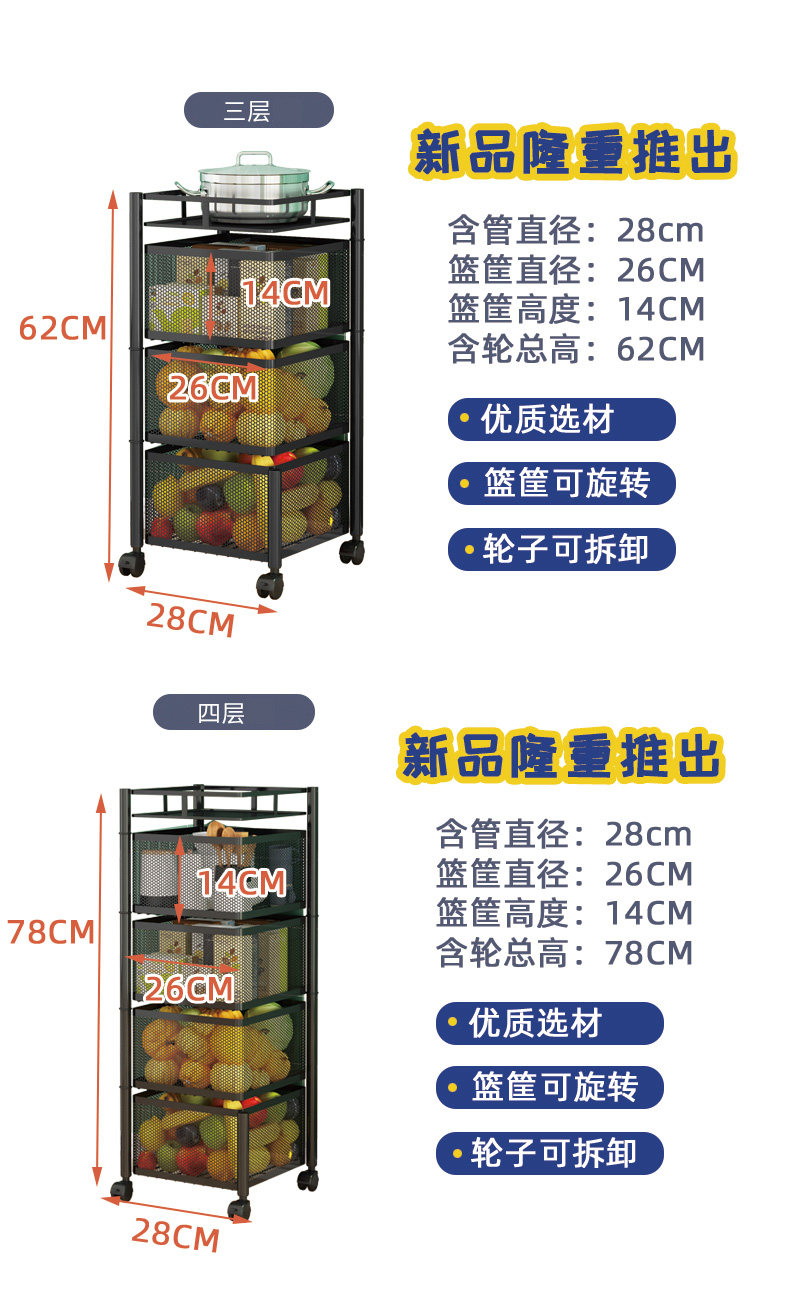 Küchendrehgestell, Haushalts-Multifunktionsspeicher, bodenstehend, mehrschichtig, montagefrei, Obst- und Gemüsekorb-Lagerregal