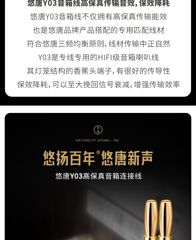 悠唐 Y03音响线HiFi发烧级胆机功放音箱连接线专用线香蕉头喇叭线
