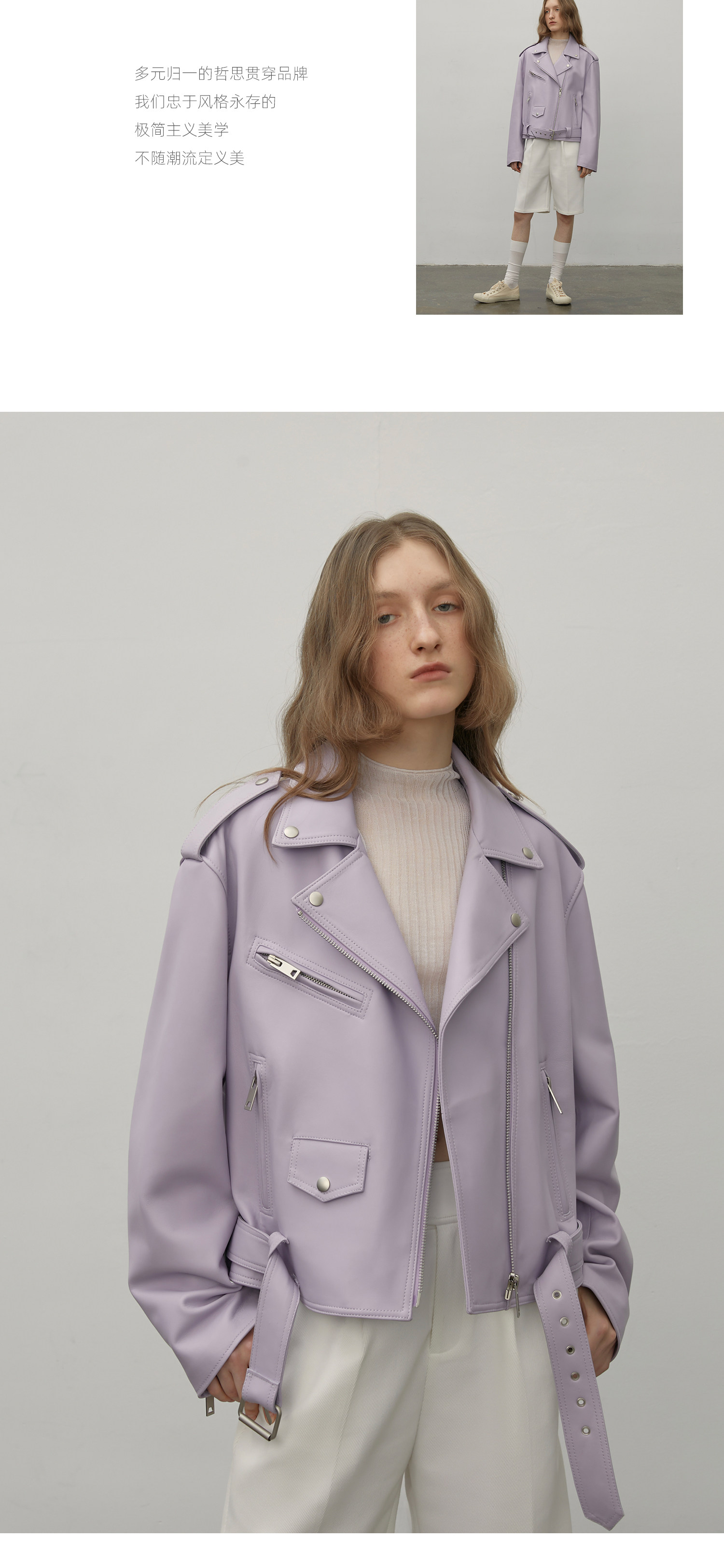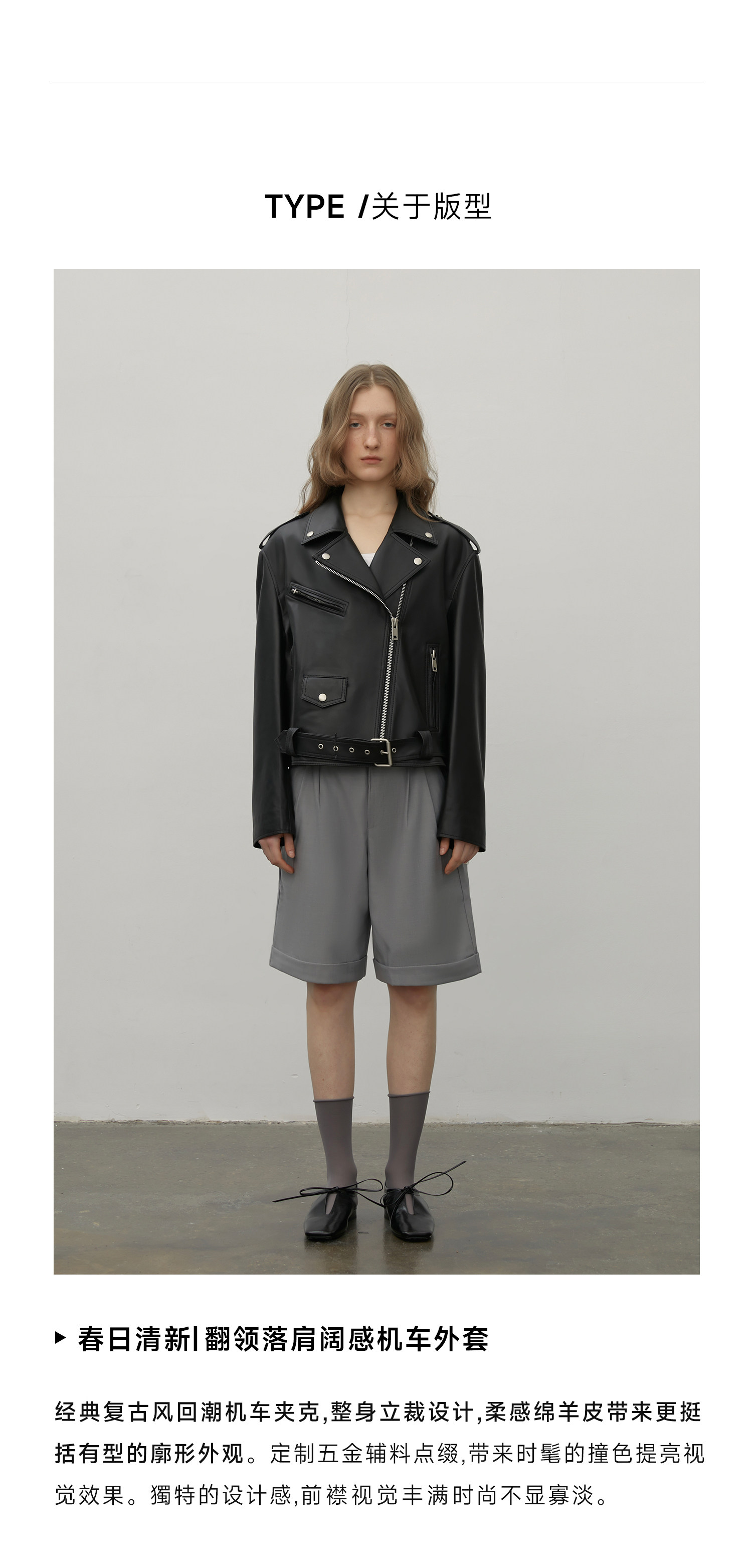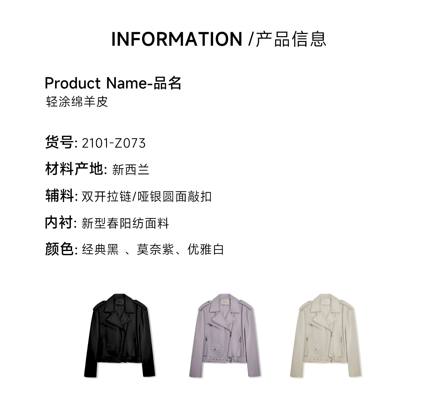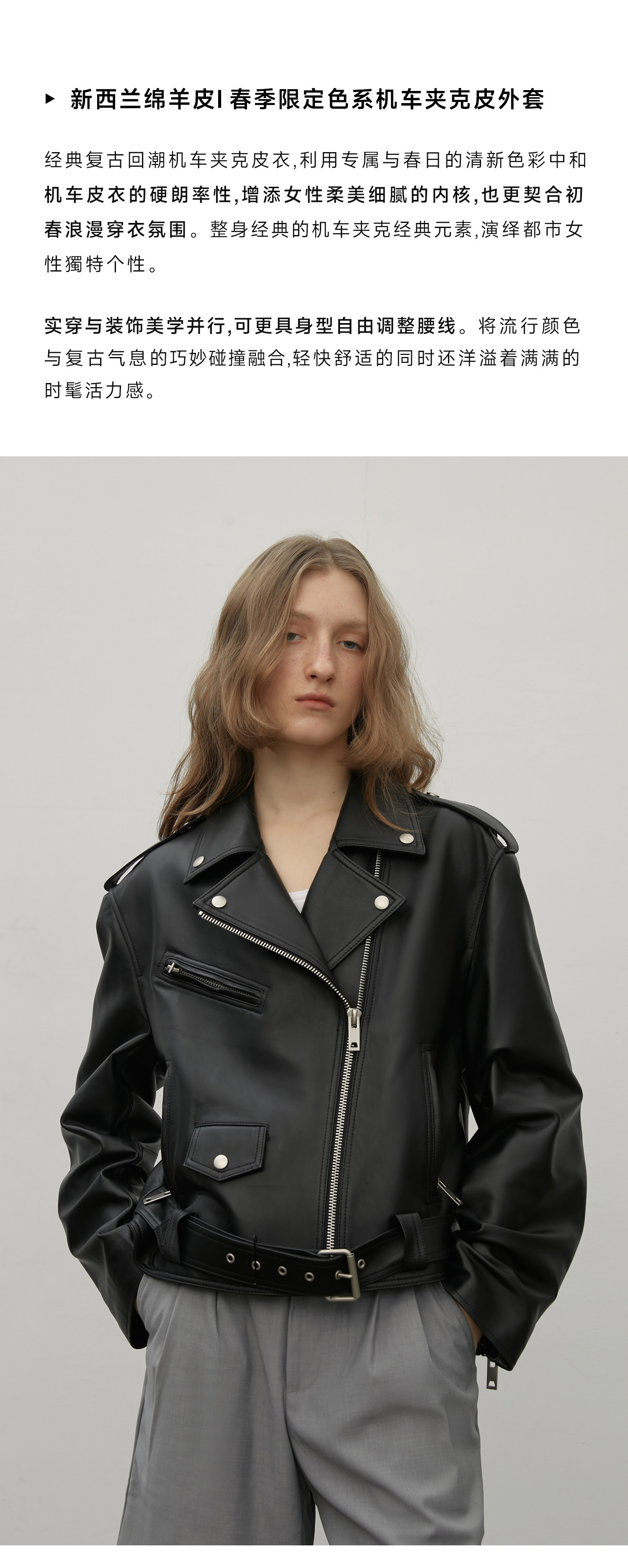 元一letrans紫川 黑色真皮机车皮衣女秋冬新款绵羊皮夹克外套短款