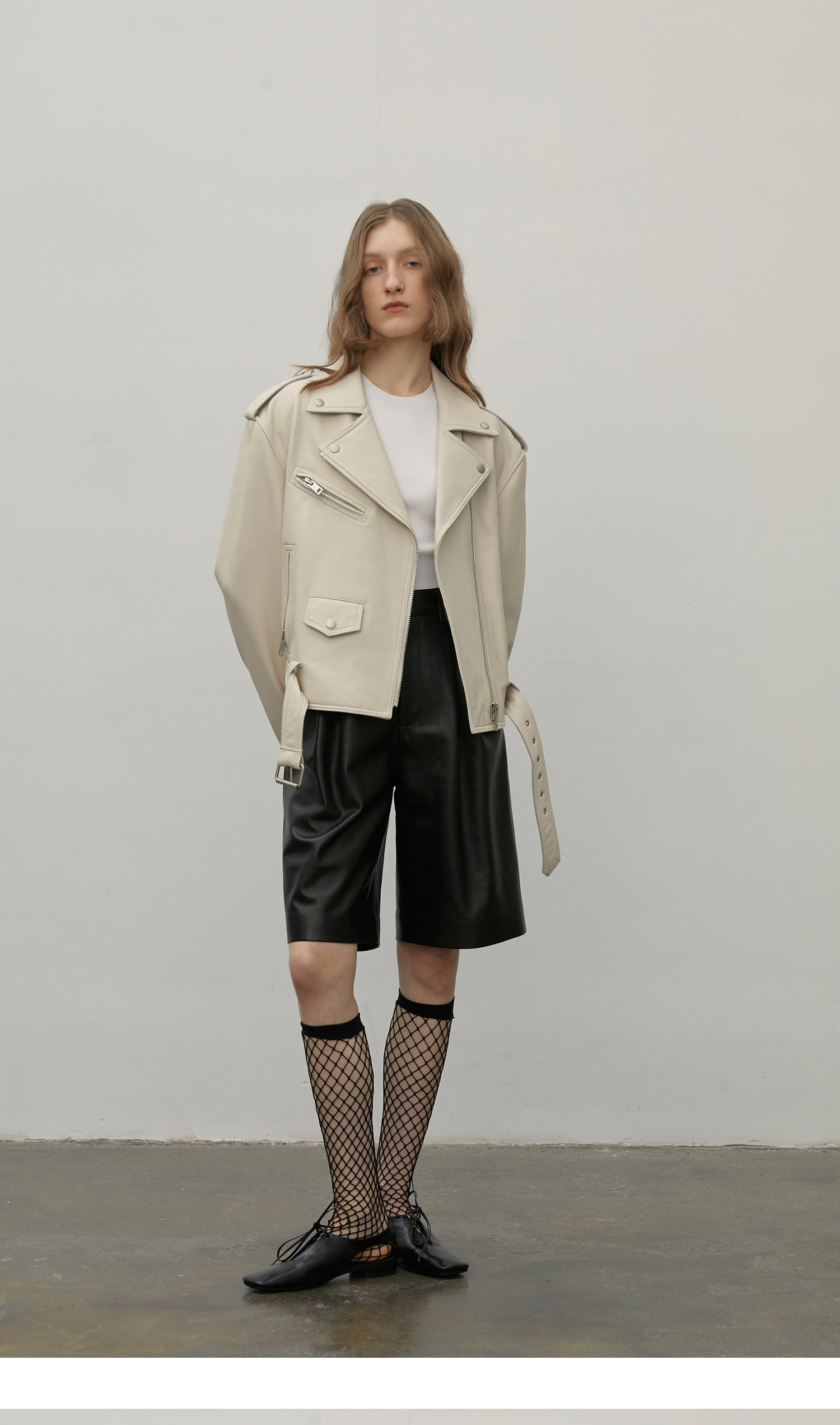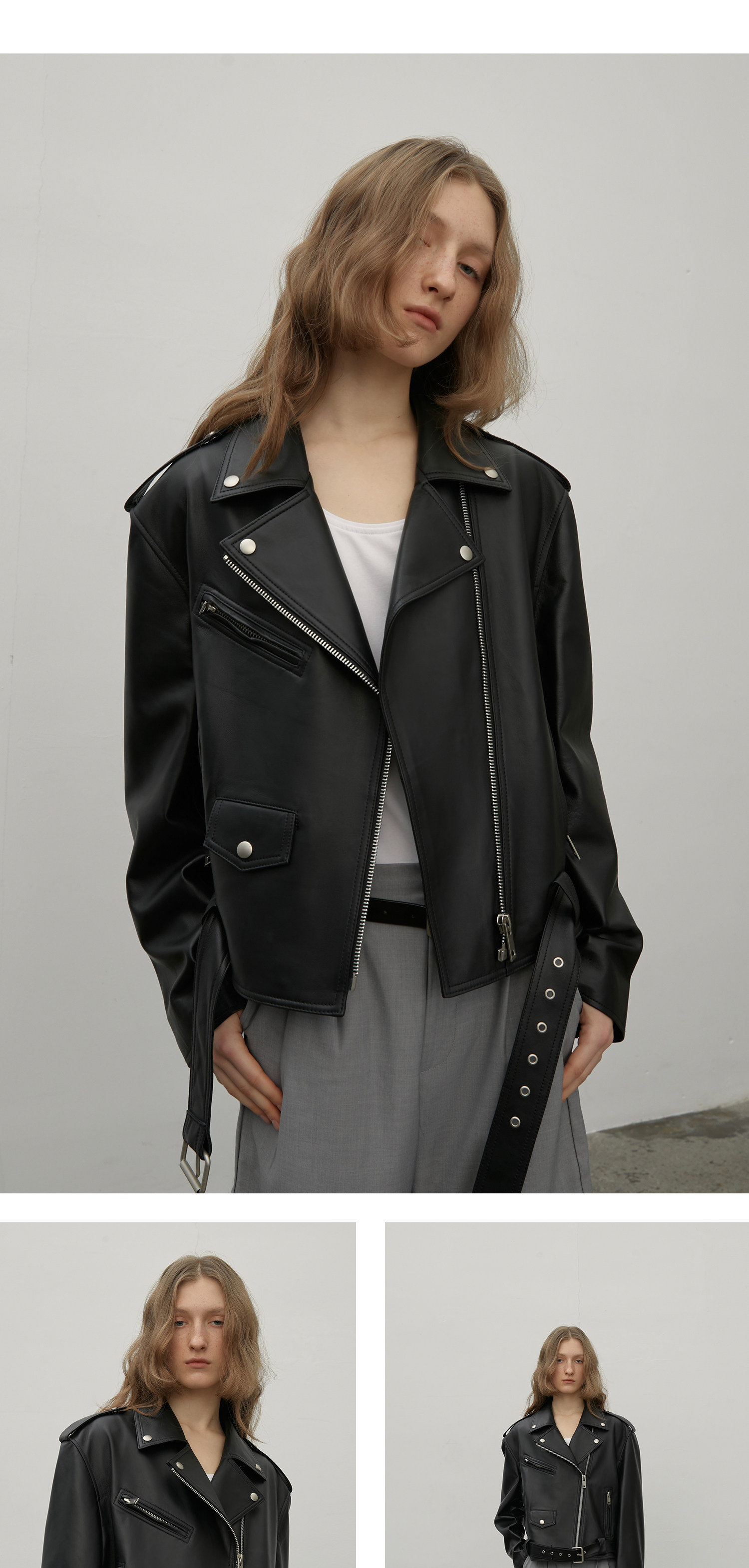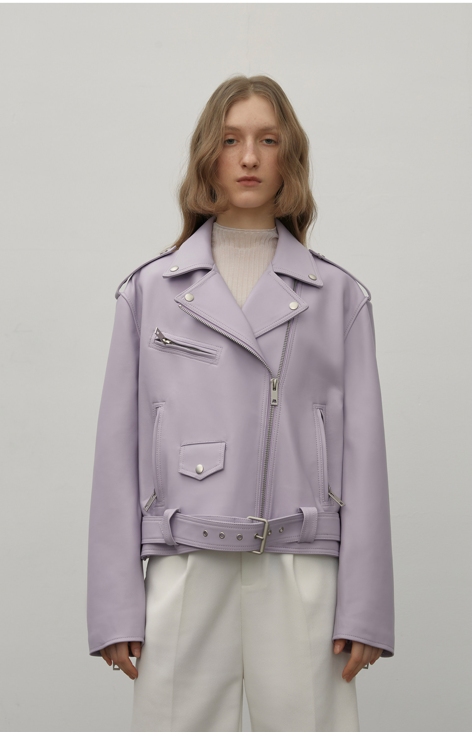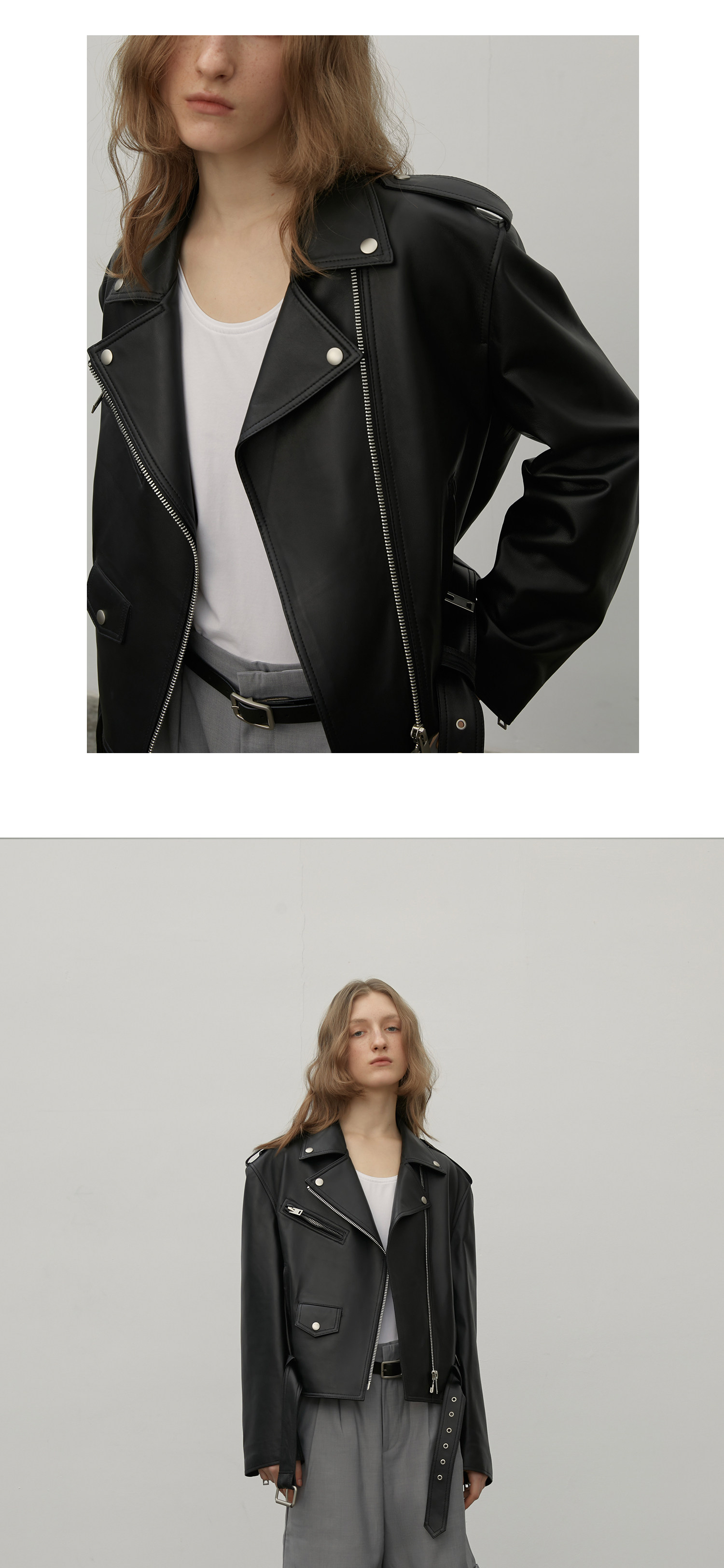 元一letrans紫川 黑色真皮机车皮衣女秋冬新款绵羊皮夹克外套短款