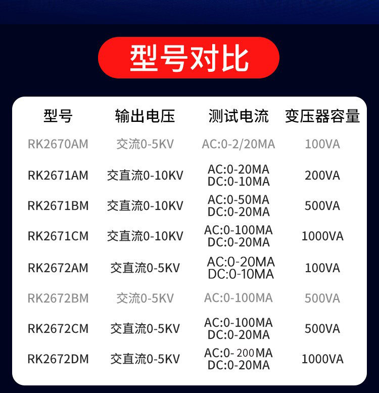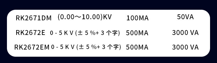 Farbklassifizierung RK2670AM Einzel-AC 5KV,RK2672AM AC und DC 5KV,RK2672BM AC 5KV100MA,RK2672CM AC und DC 5KV100MA,RK2671AM AC und DC 10KV,RK2671CM AC und DC 10KV,RK2671BM AC und DC 10KV,RK2672DM AC und DC 5KV200MA,RK2670AM (mit Messzertifikat),RK2672AM (mit Messzertifikat),RK2672BM (mit Messzertifikat),RK2672CM (mit Messzertifikat),RK2671AM (mit Messzertifikat),RK2671BM (mit Messzertifikat),RK2671CM (mit Messzertifikat),RK2672DM (mit Messzertifikat),RK2672E Neues Produkt!,RK2672EM neues Produkt!