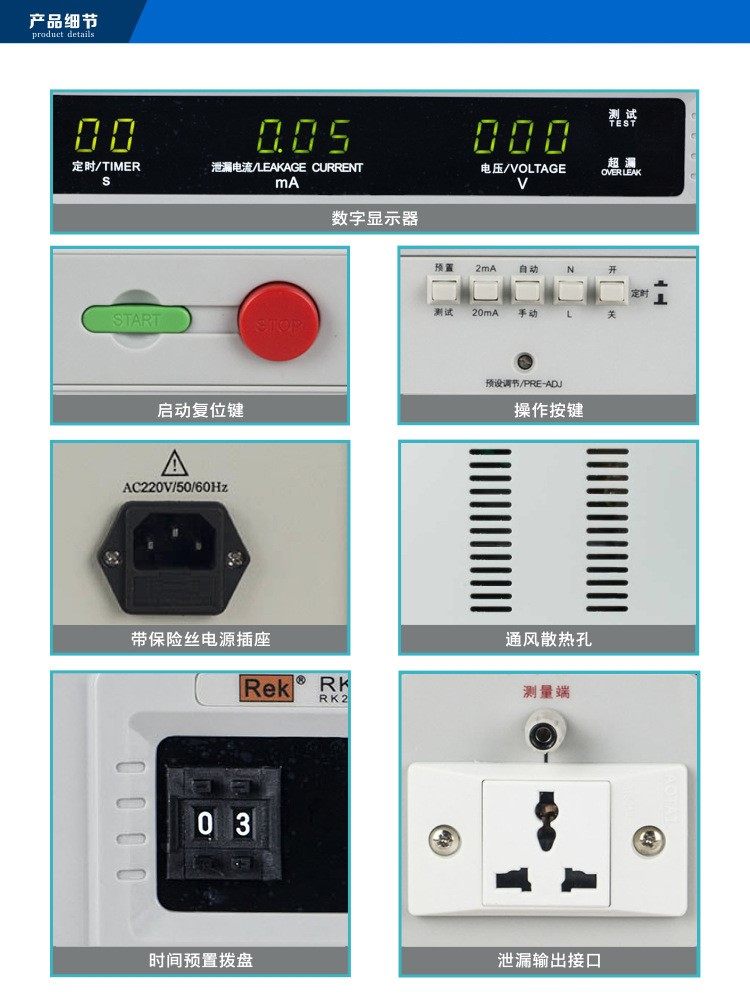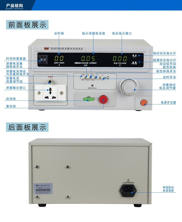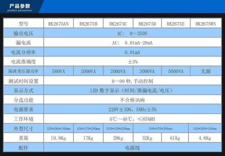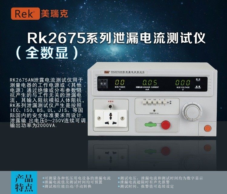 美瑞克RK2675B泄漏测试1000W 0-250V电压0-20MA电流带声光报警