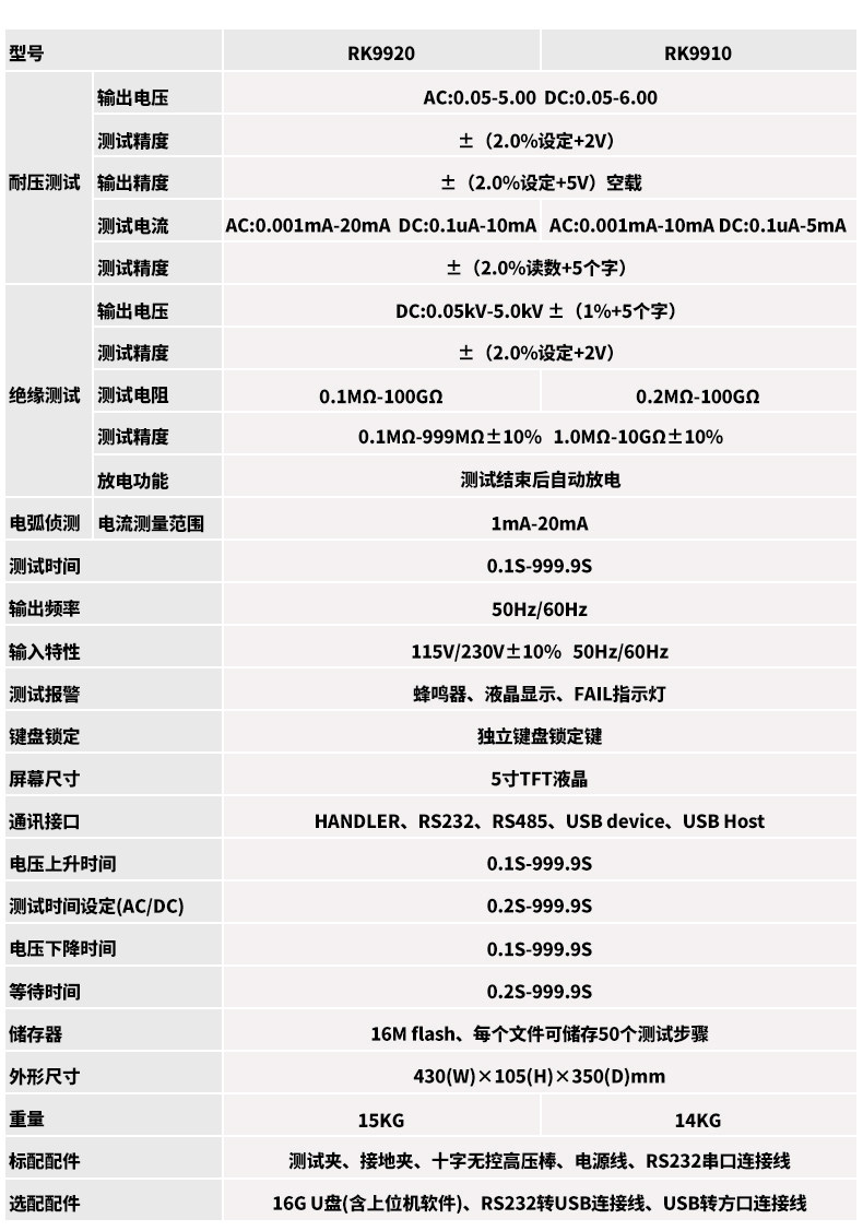 Цветовая классификация RK2670AM (без интерфейса ПЛК),RK7110 выдерживает напряжение переменного тока 5 кВ + ПЛК,RK7120 выдерживает напряжение переменного и постоянного тока 6 кВ.,RK7112 Выдерживаемое напряжение переменного тока + изоляция 1000M,RK7122 Выдерживаемое напряжение переменного и постоянного тока + изоляция 1000M,RK9910 выдерживает напряжение + изоляция 10 ГОм/0,2%,RK9920 Выдерживаемое напряжение переменного и постоянного тока + изоляция 10 ГОм/20 мА,RK9910A AC и DC DC: 6 кВ с интерфейсом связи,RK9910B AC 5 кВ с интерфейсом связи,RK9920A AC и DC DC: 6 кВ с интерфейсом связи,RK9920B AC 5 кВ с интерфейсом связи,Программируемый тестер сопротивления заземления RK9930,Комплексный тестер RK9960 «три в одном»,RK9310 (выдерживаемое напряжение переменного тока: 5 кВ постоянного тока: 6 кВ, изоляция 5 кВ+100 ГОм),RK9320 (выдерживаемое напряжение переменного тока: 5 кВ постоянного тока: 6 кВ, изоляция 5 кВ+100 ГОм),RK9320A (выдерживаемое напряжение переменного тока: 5 кВ постоянного тока: 6 кВ),RK9320B (выдерживаемое напряжение переменного тока: 5 кВ + 20 мА)