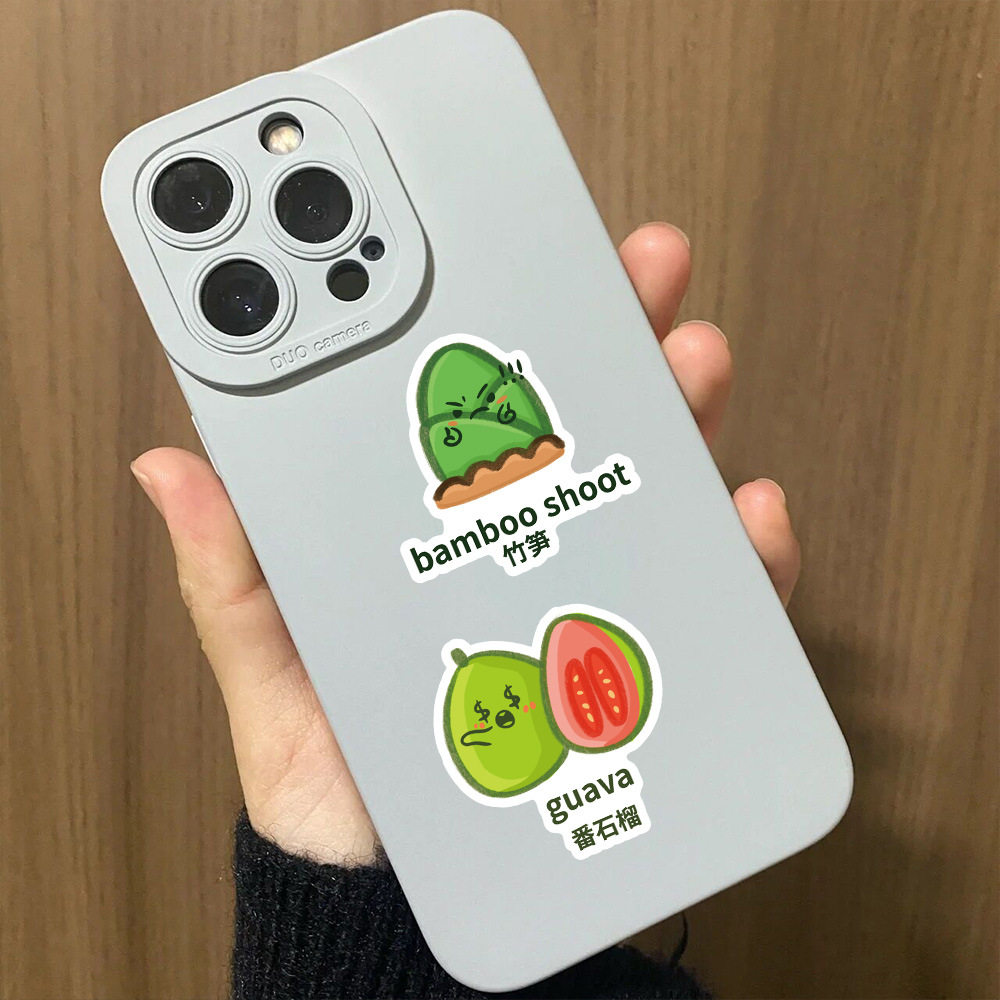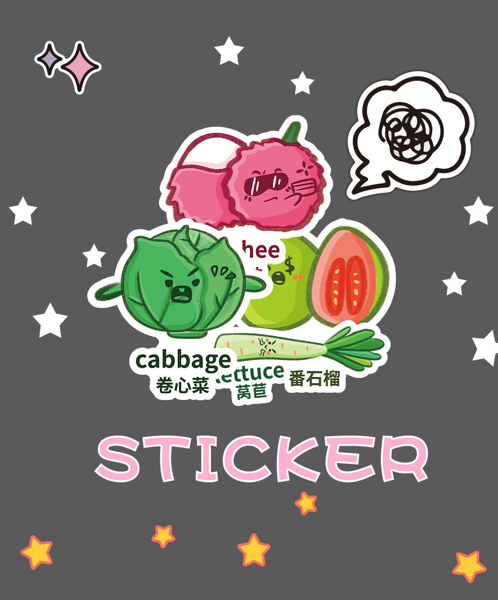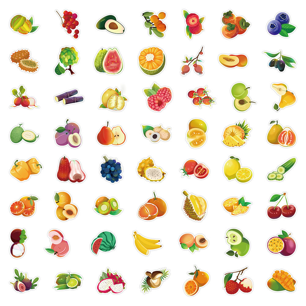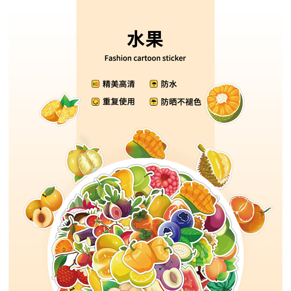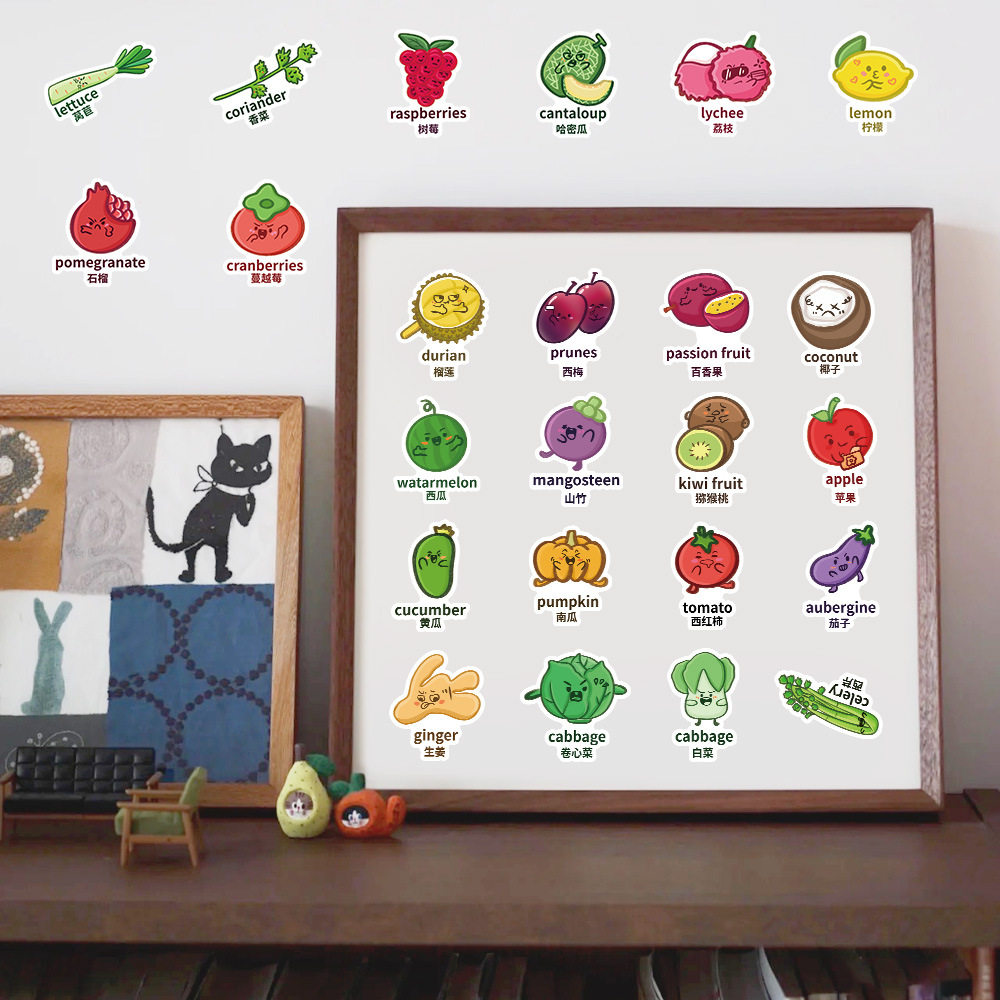 120张卡通英文蔬菜水果封口贴纸 行李箱手机手账装饰防水无痕贴画