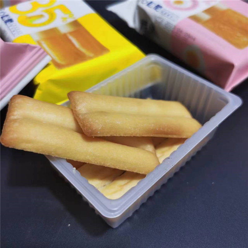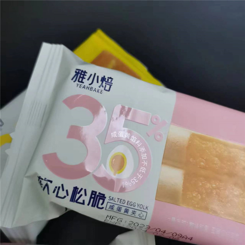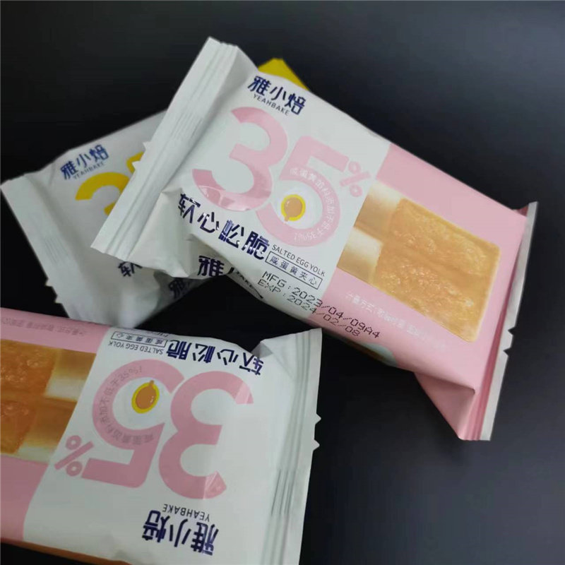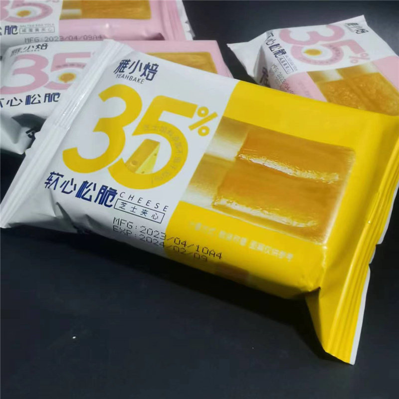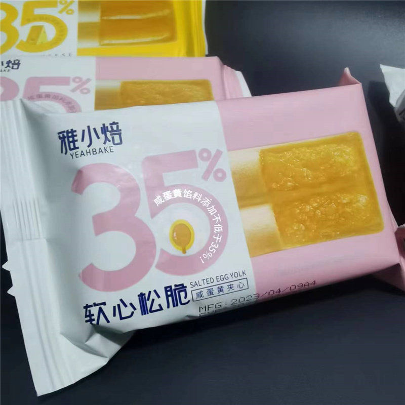 Хрустящие сэндвич-бисквиты Yaxiaobei с соленым яичным желтком и сыром в маленьких упаковках как легкий перекус.
