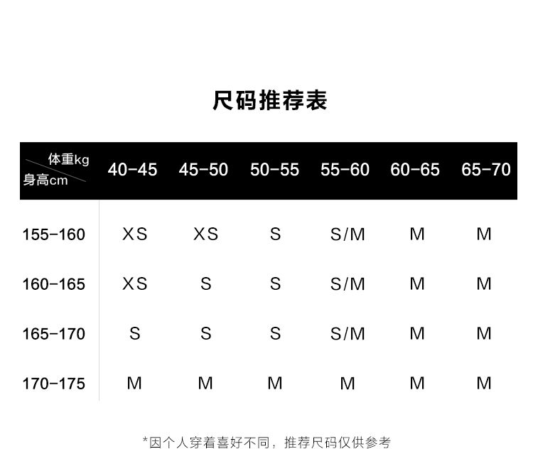 China (cm) 160-165/84-86 165-170 / 88-90 167-172 / 92-96 168-173 / 98-102 170-176 / 106-110