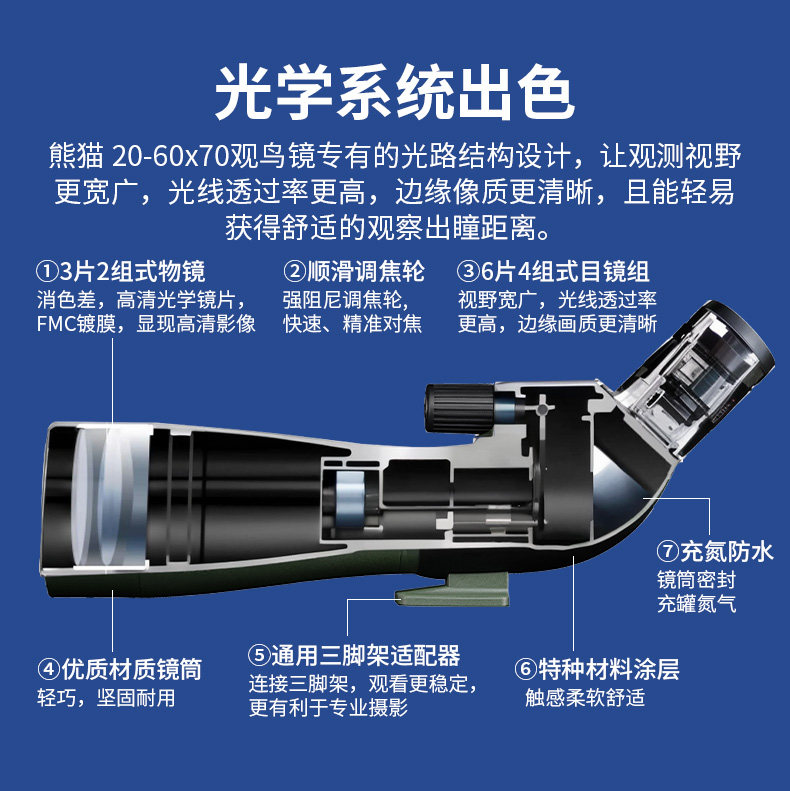 Монокуляр Panda высокой мощности высокой четкости 20-60 раз профессиональная камера для мобильного телефона с мишенью для наблюдения за птицами 70 калибра