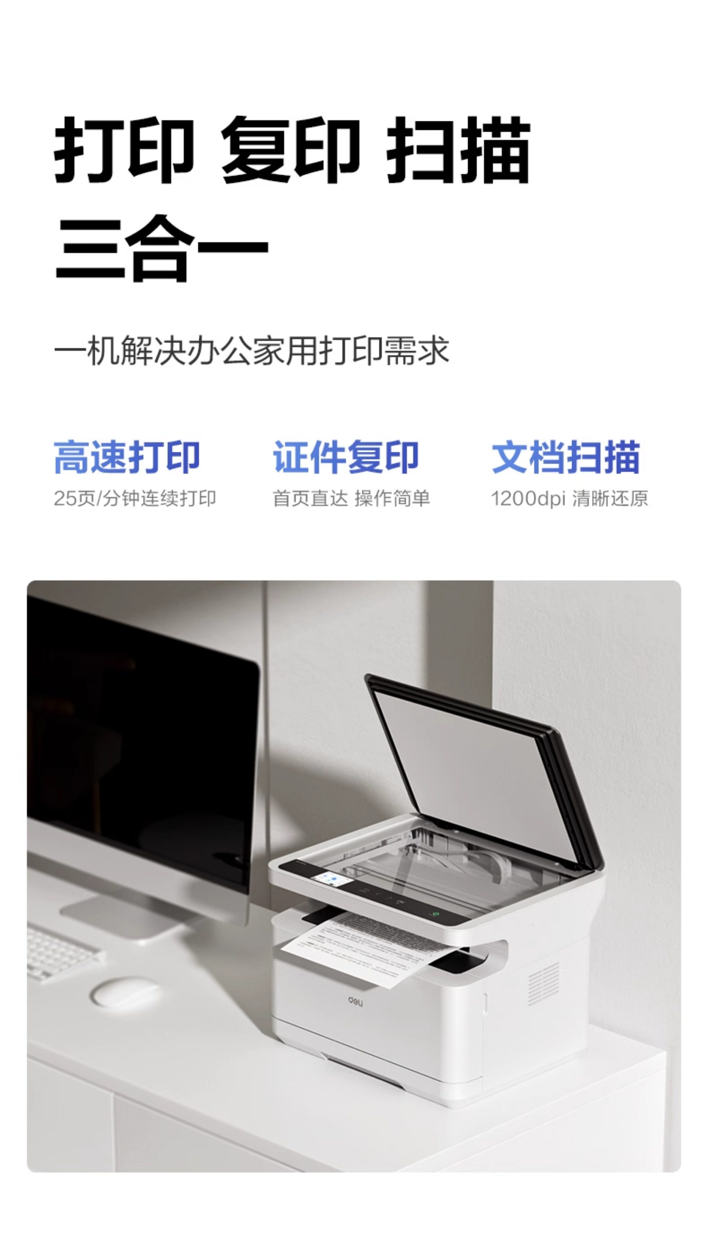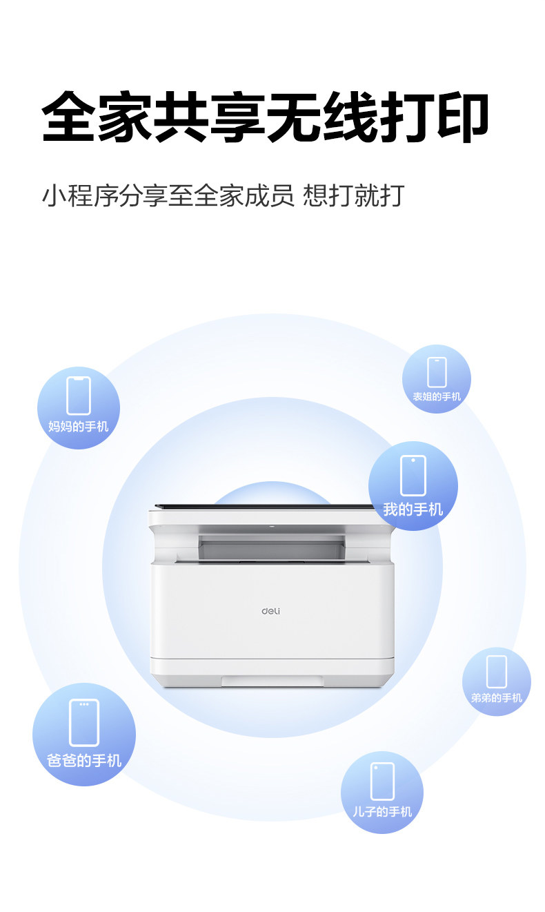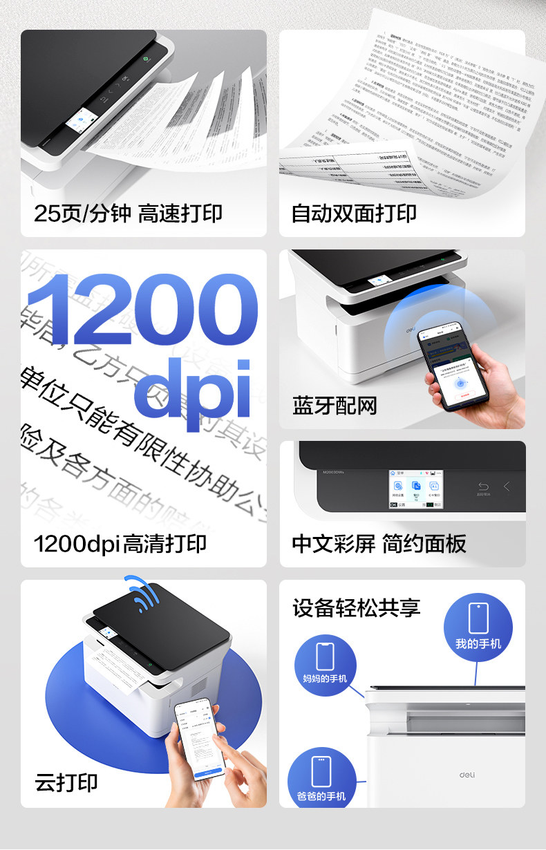 Deli M2023Dws Dual-Sided Black and White Laser Printing, Copying, and Scanning All-In-One Machine for Office Use, A4 Home Use, Small Wireless Remote 511W Office Color Inkjet Continuous Supply Printer 512W
