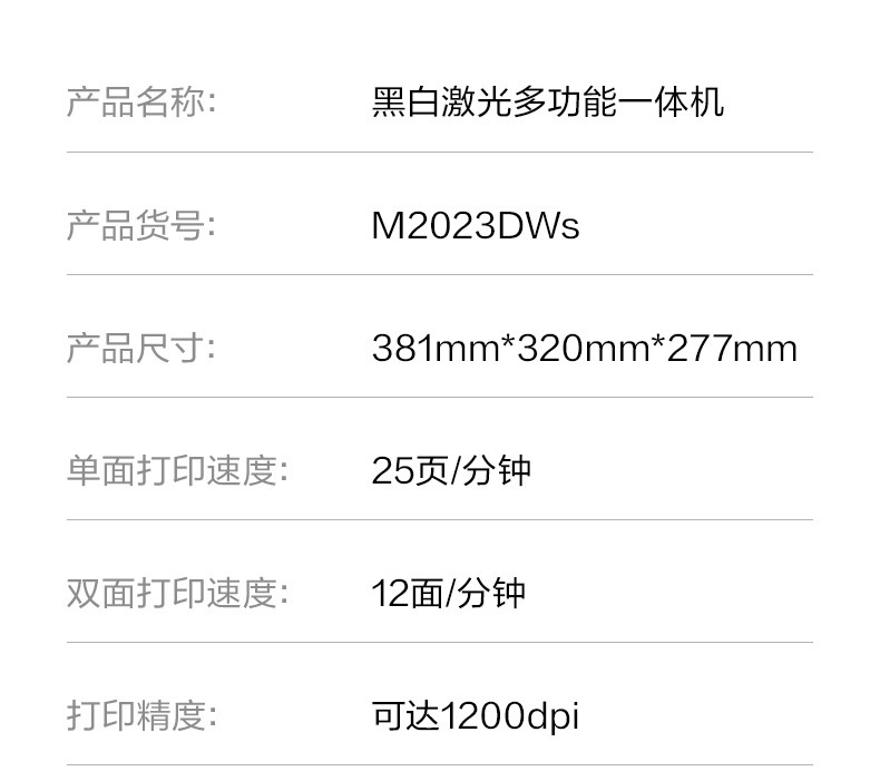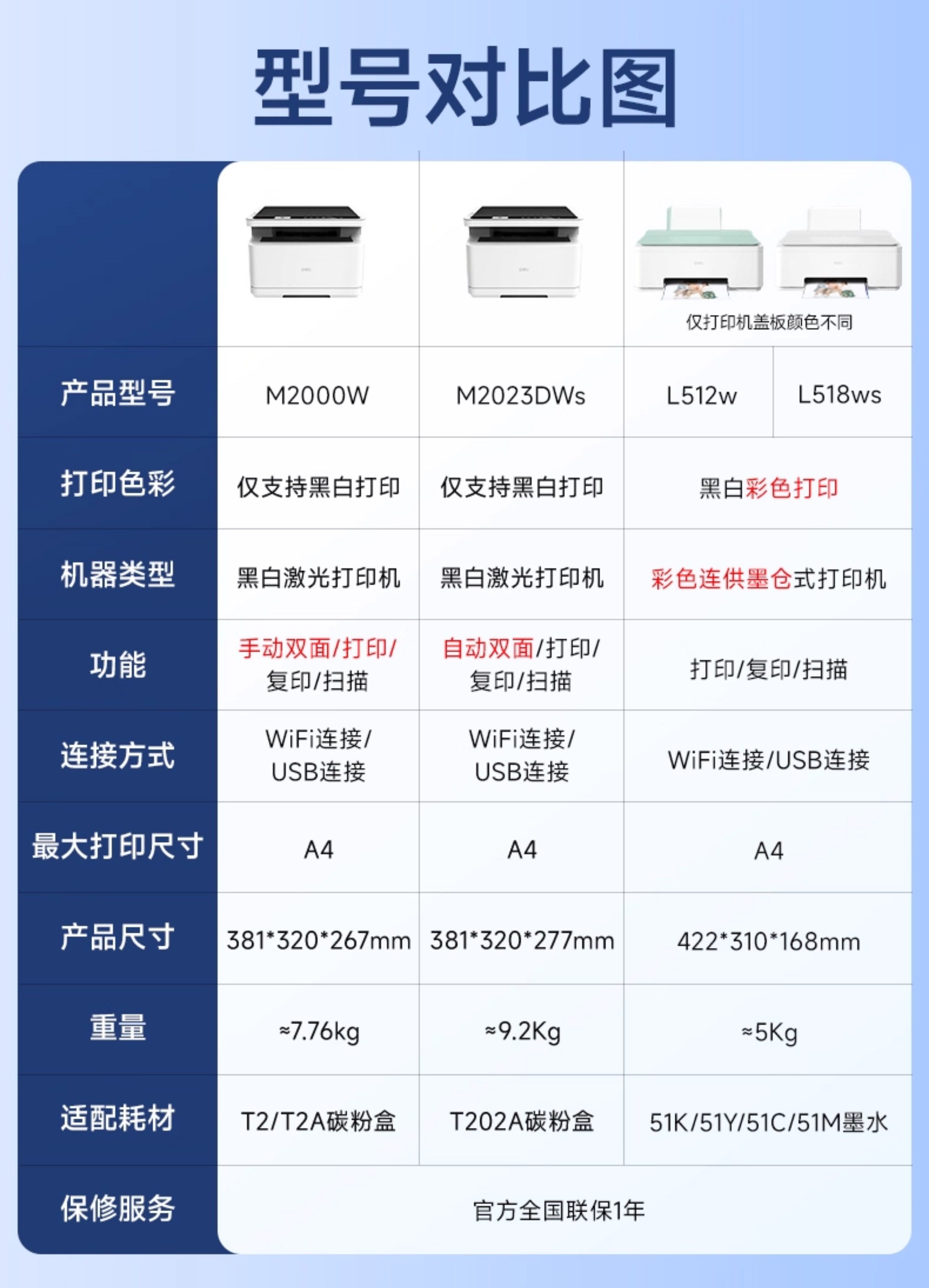 Color Classification Recommend! M2023Dws Black and White Laser (Automatic Double-Sided + Wireless Connection),M2000W Black and White Laser (Manual Double-Sided + Wireless Connection),512Ws Printing + Copying + Scanning + Wireless Link,518Ws Printing + Copying + Scanning + Wireless Link