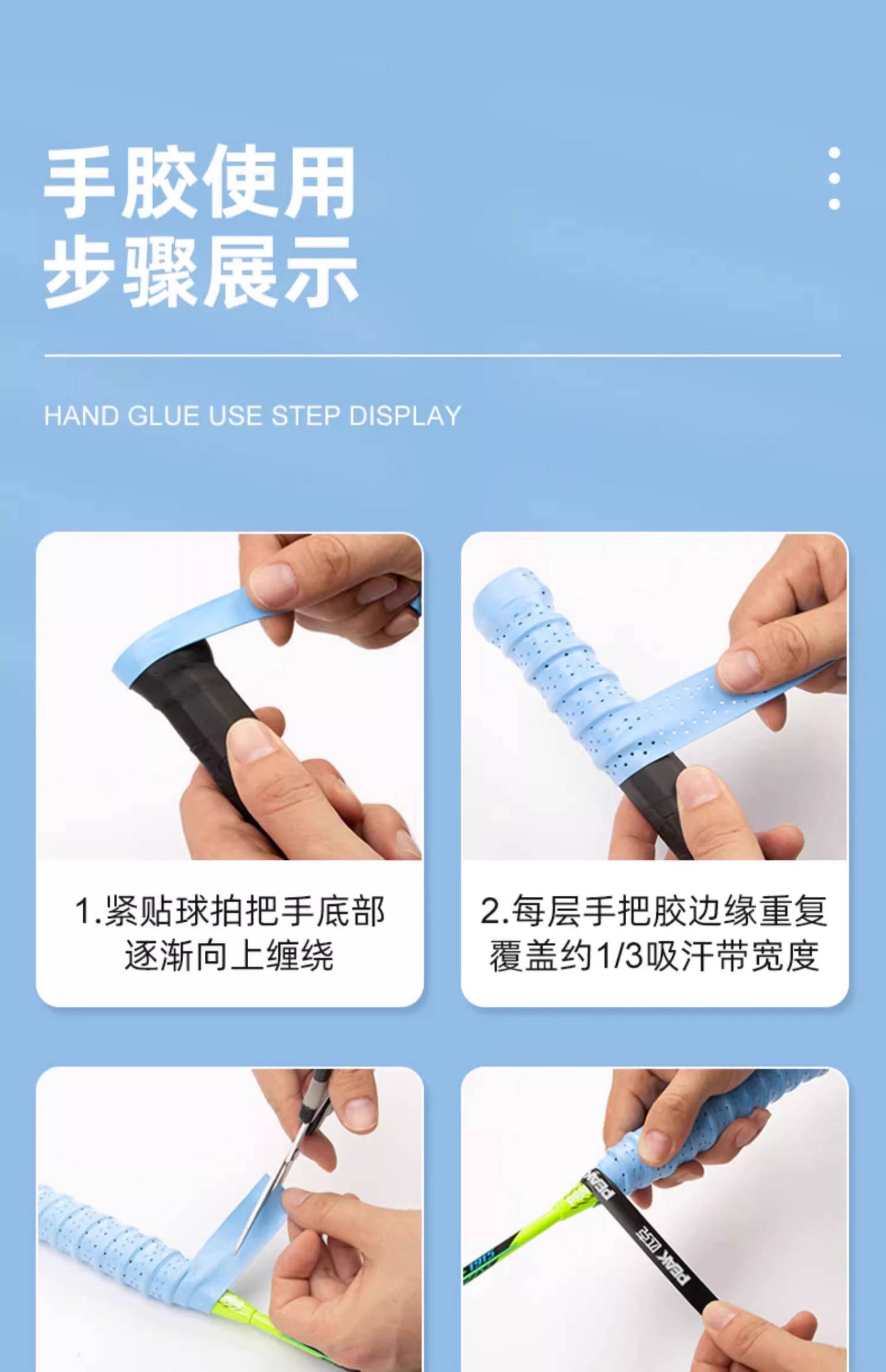 Peak Badminton Racket Grip Tape, Tennis Racket Ribbed Sweat-Absorbing Strap, Non-Slip Handle Cover, Professional Adhesive Wrap Tape Yy