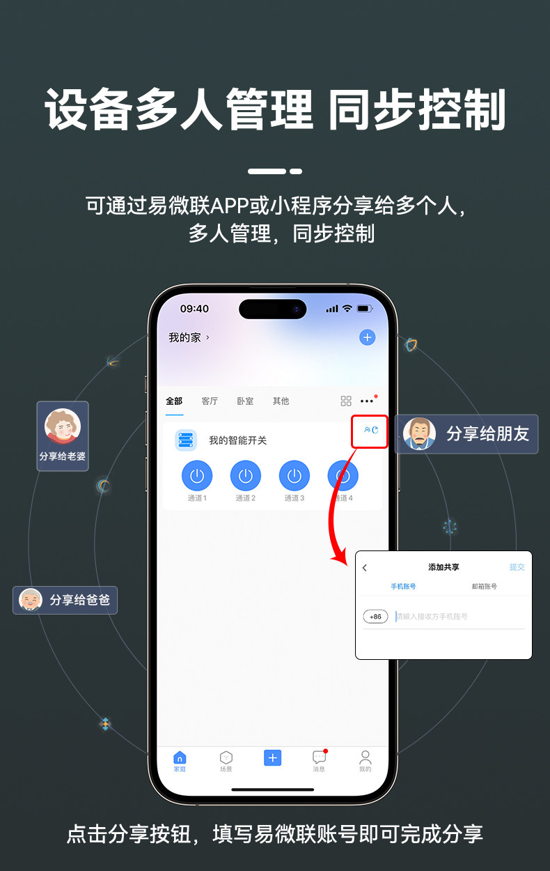 Yaosheng Intelligent WIFI Yiweilian Fernbedienung für Mobiltelefone, kabellose Fernbedienung, Schalter, Mehrkanal-Lampen, 220 V, Timer