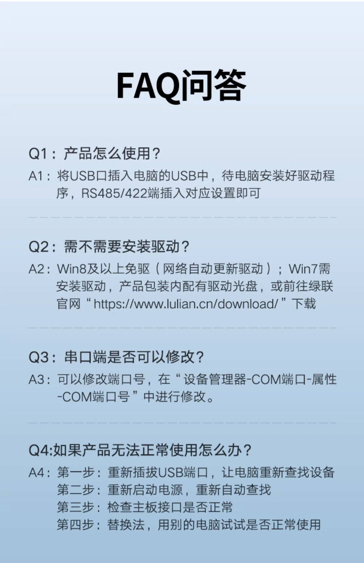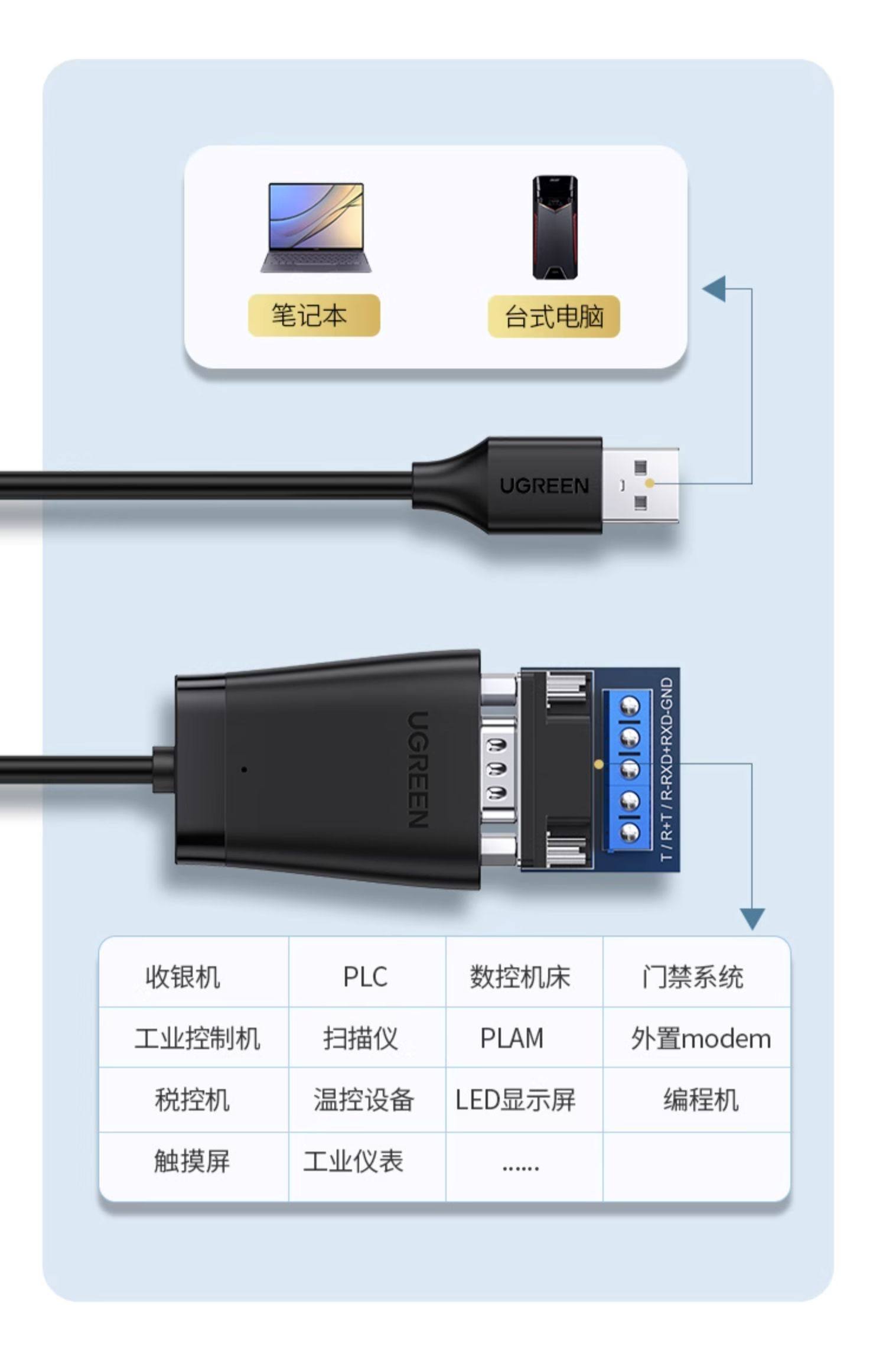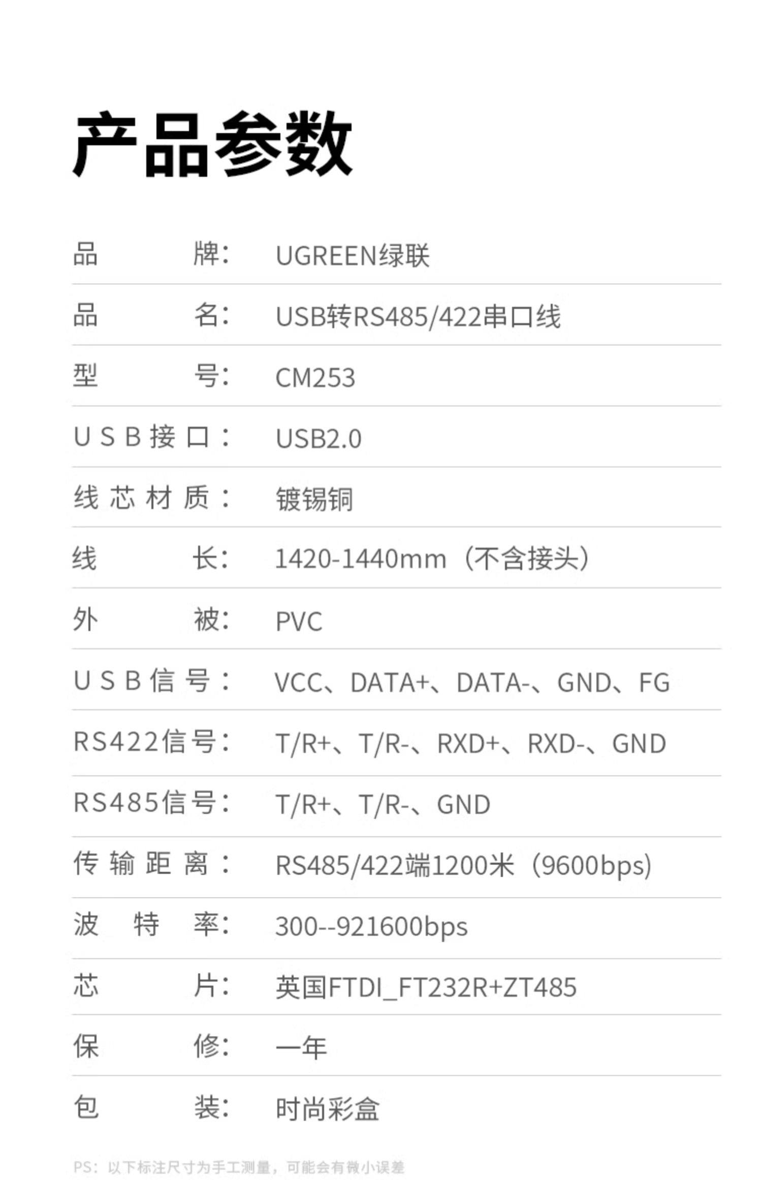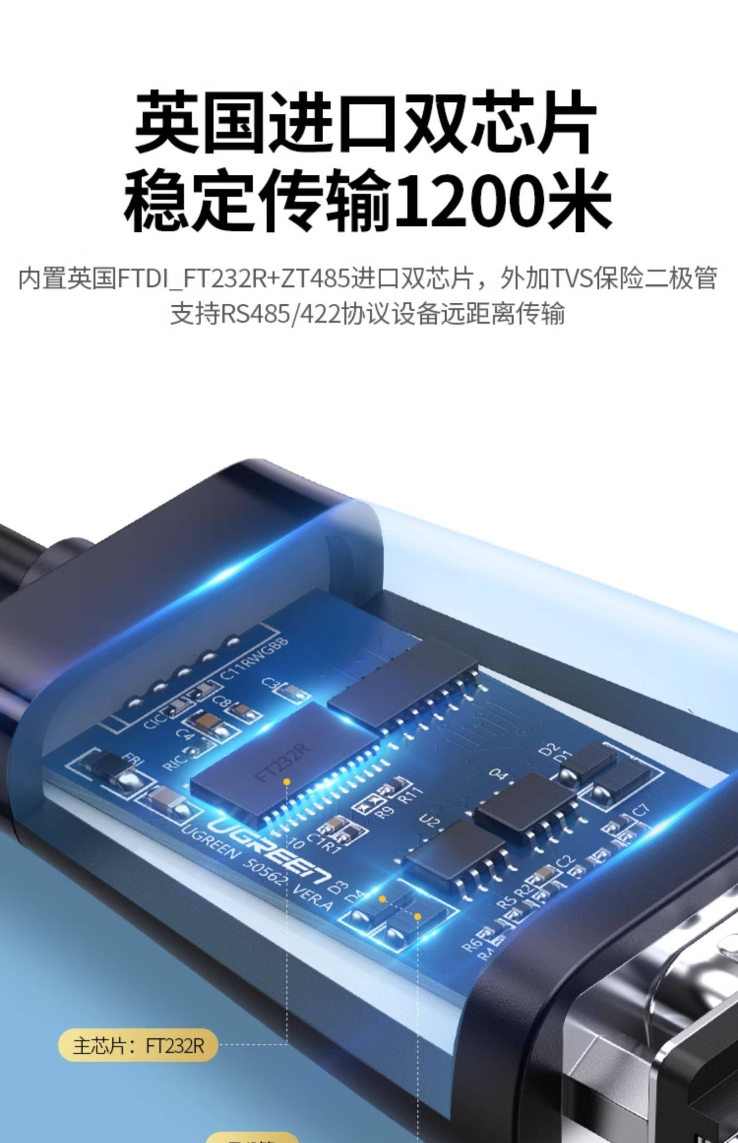绿联USB2.0转422/485串口线1.5米线 CM253/60562