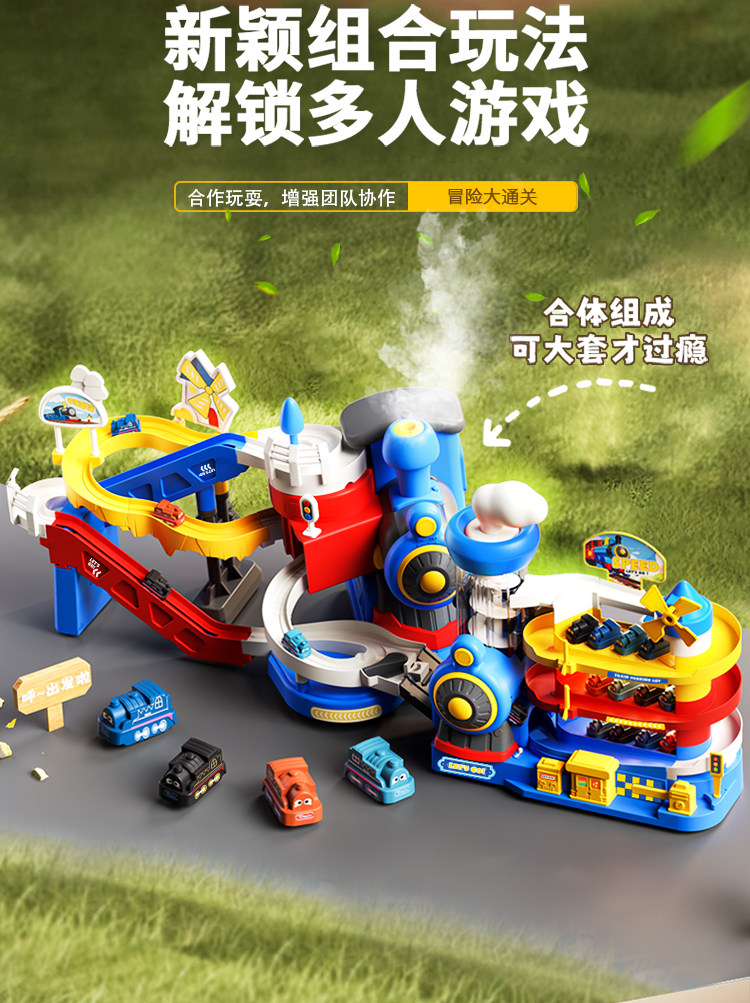 Train Track Car Adventure Car Building Parking Lot Small Train Children's Toy for Boys 3-4 Years Old Educational