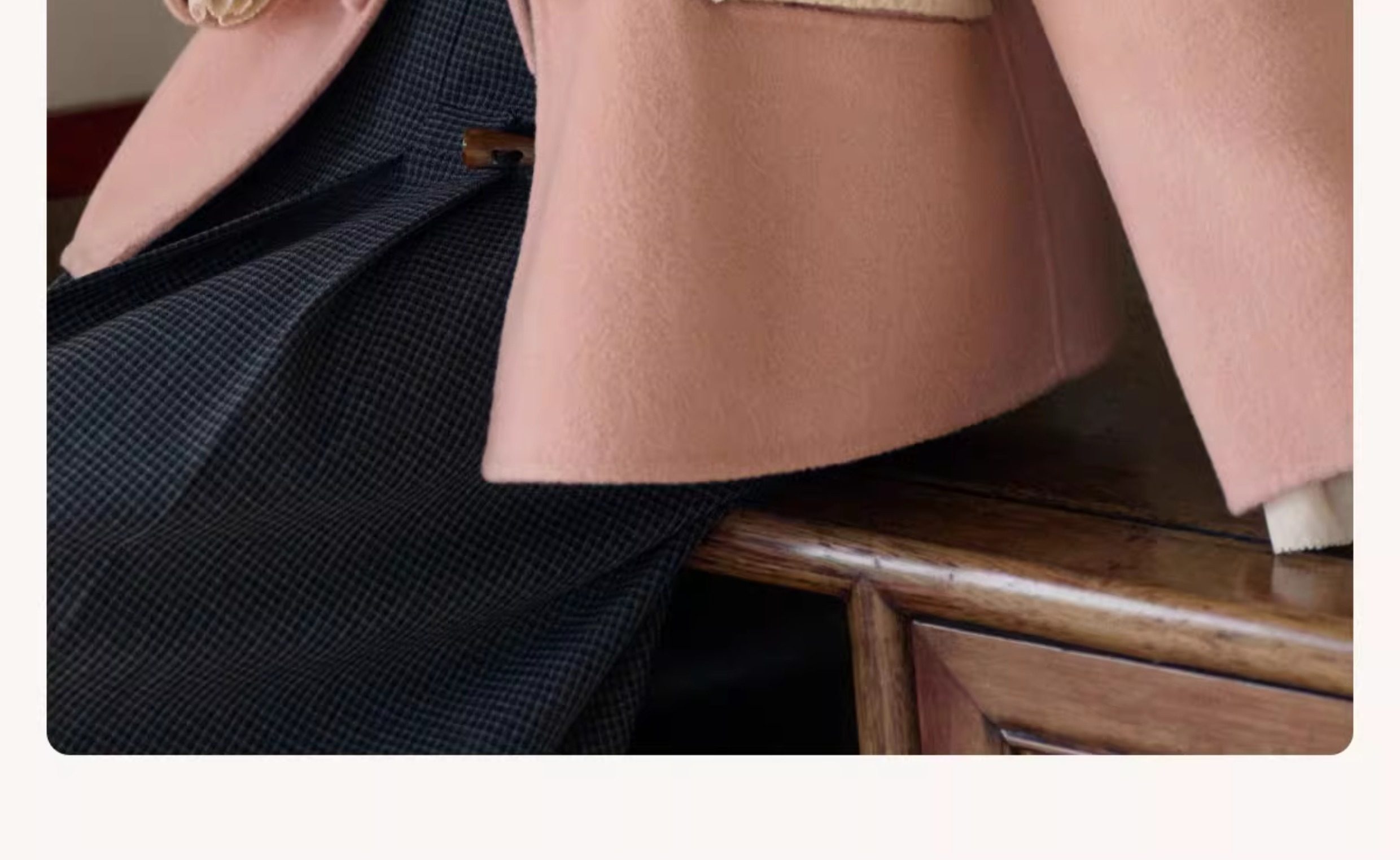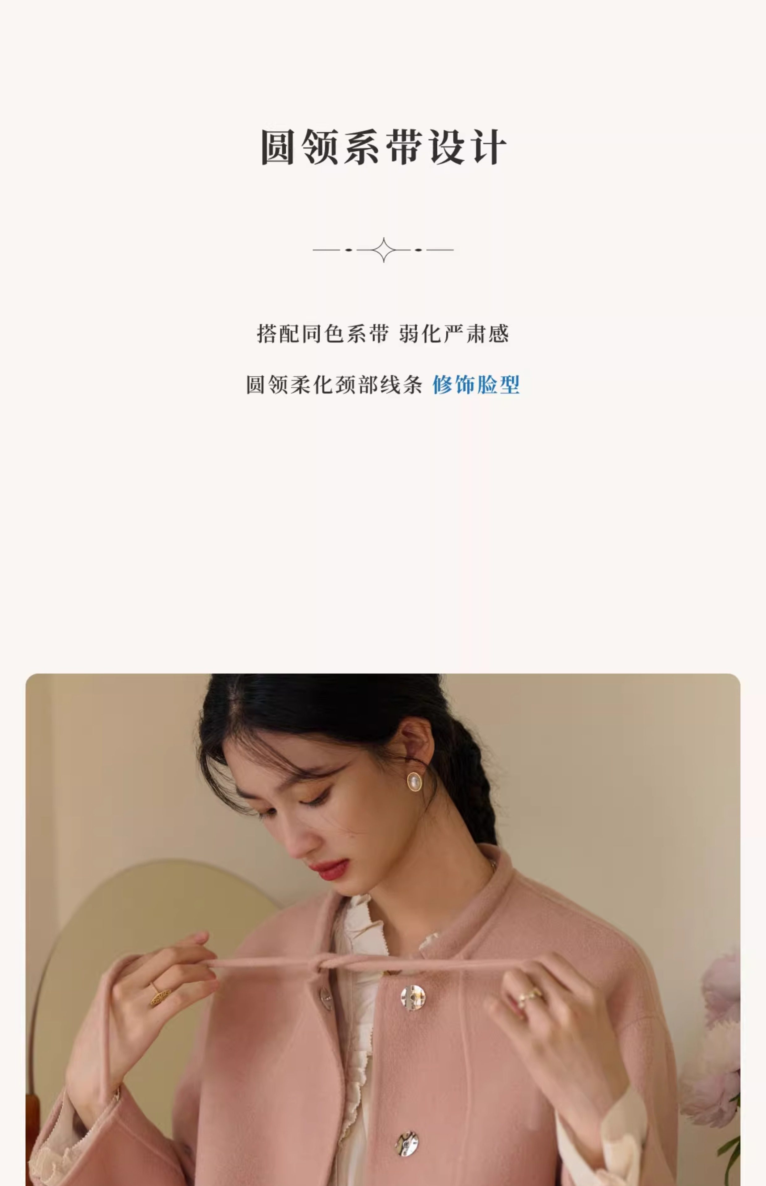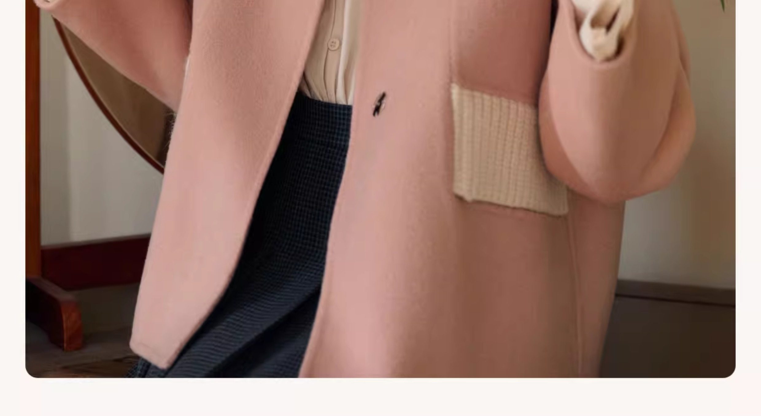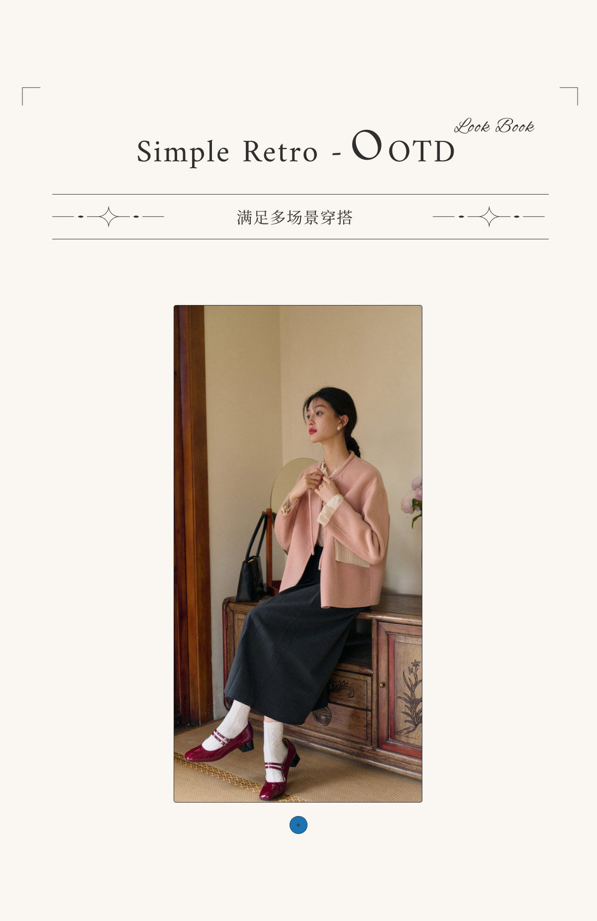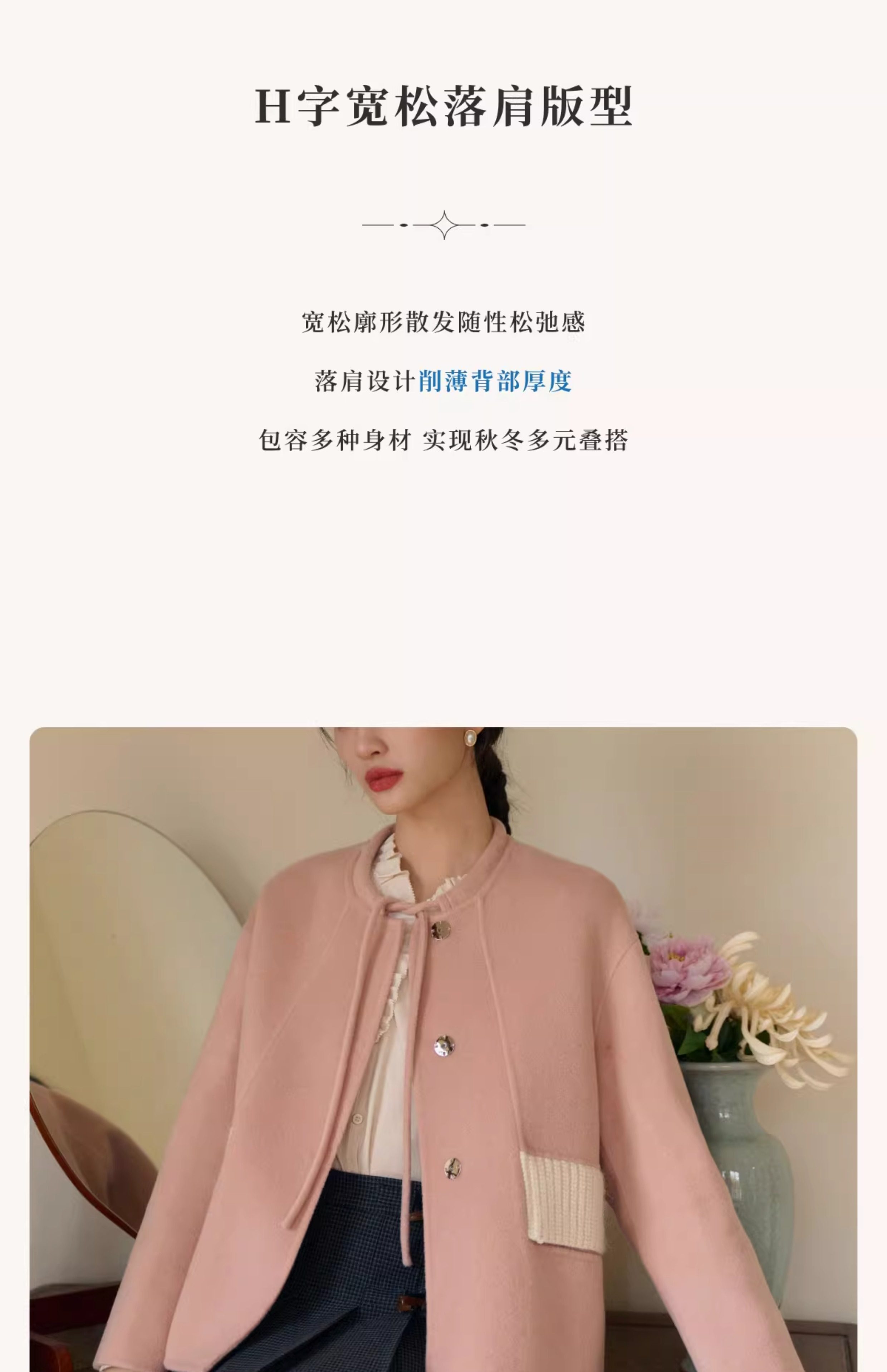 Simpleretro Pink Letter Paper Color-Blocked Wool Pocket Woolen Coat for Women, Autumn and Winter Short Wool Coat